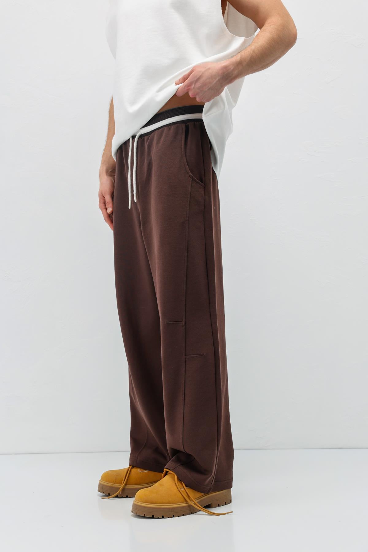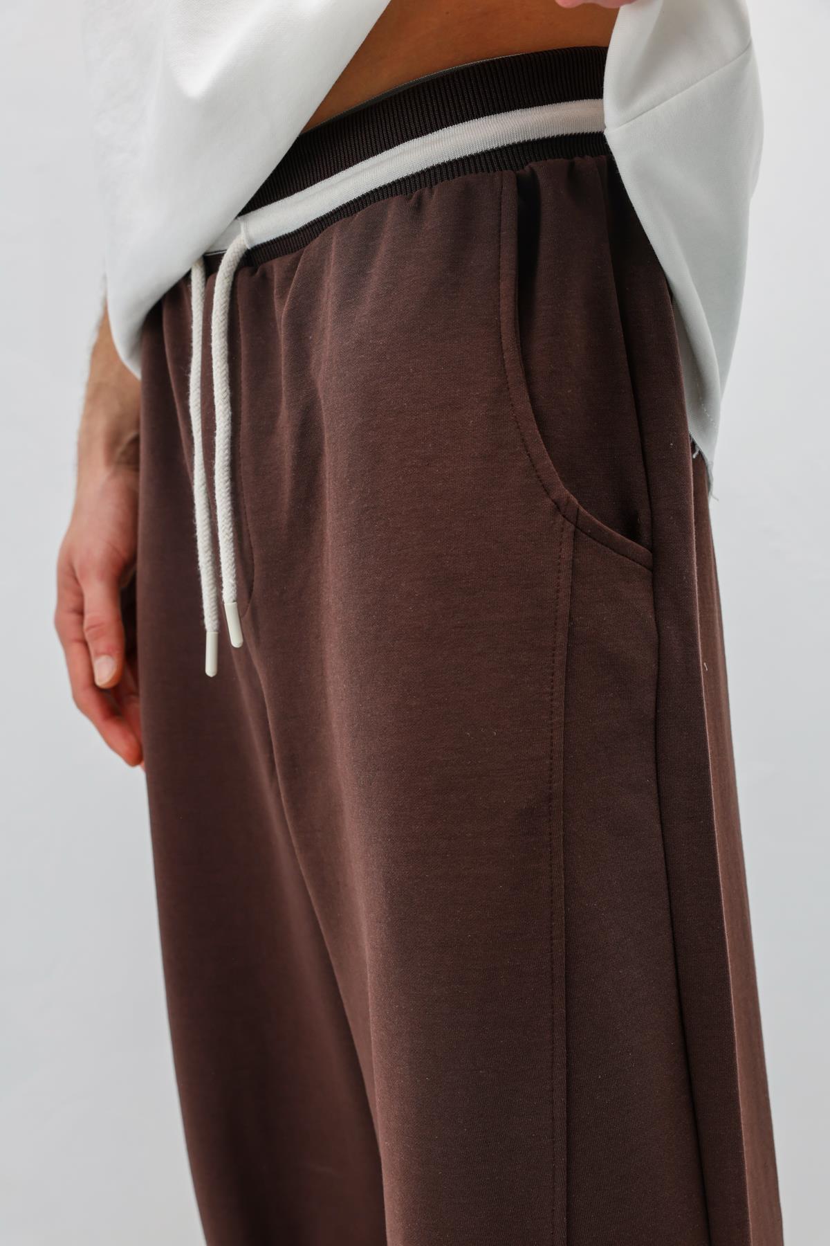 Bağcıklı Baggy Fit Eşofman Alt Kahve (V80-46)