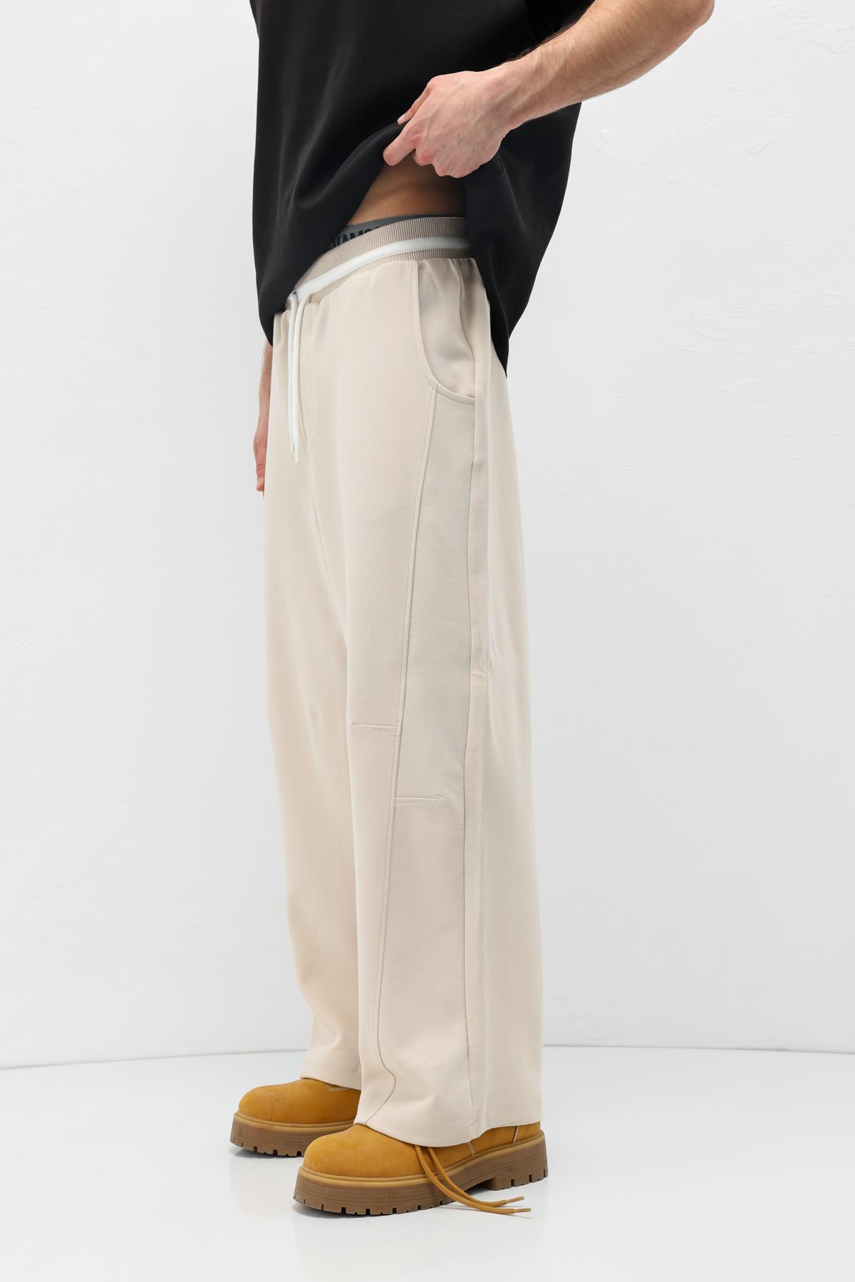 Bağcıklı Baggy Fit Eşofman Alt Taş (V80-46)
