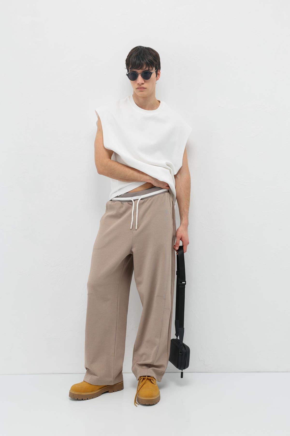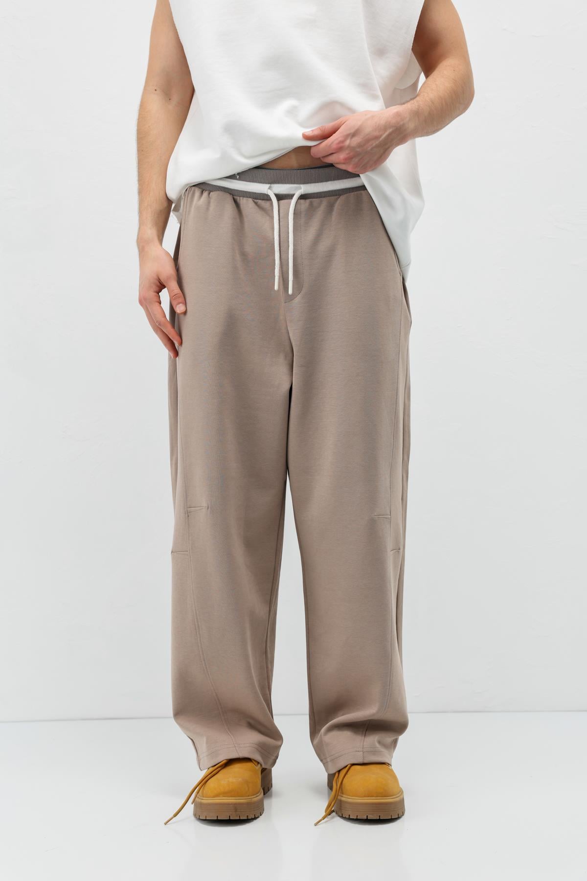 Bağcıklı Baggy Fit Eşofman Alt Vizon (V80-46)