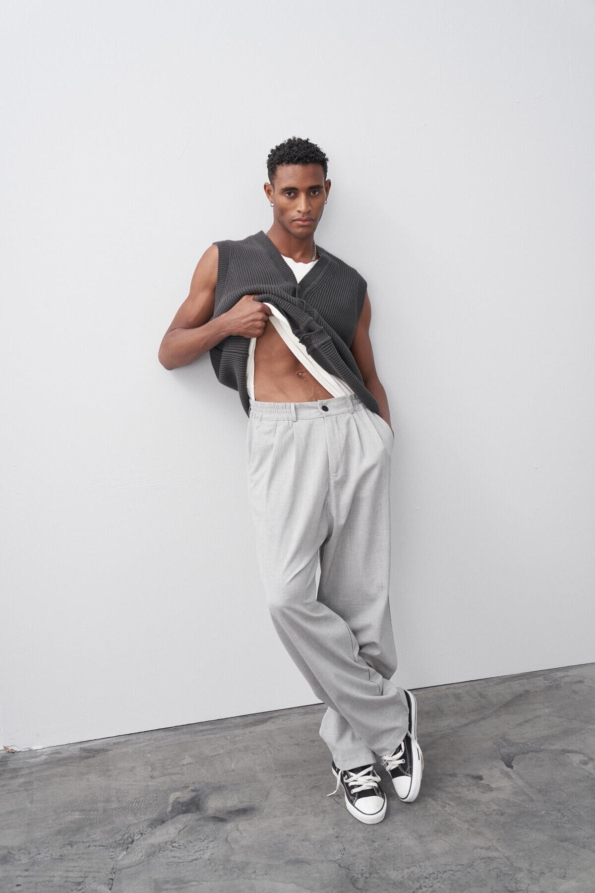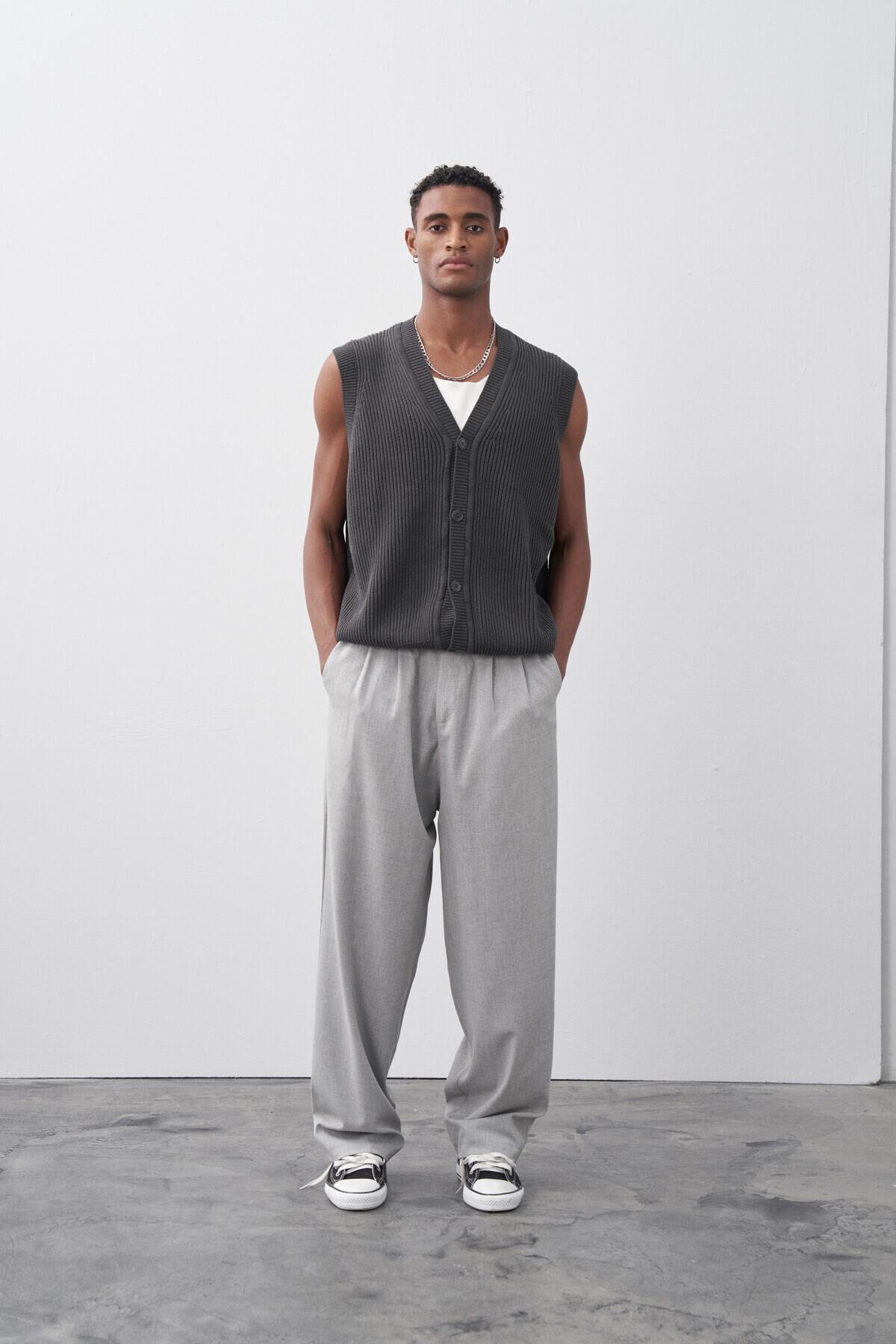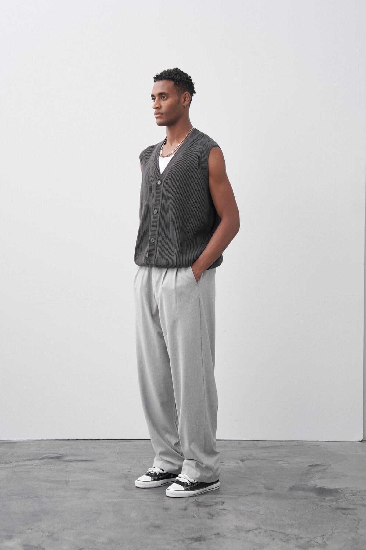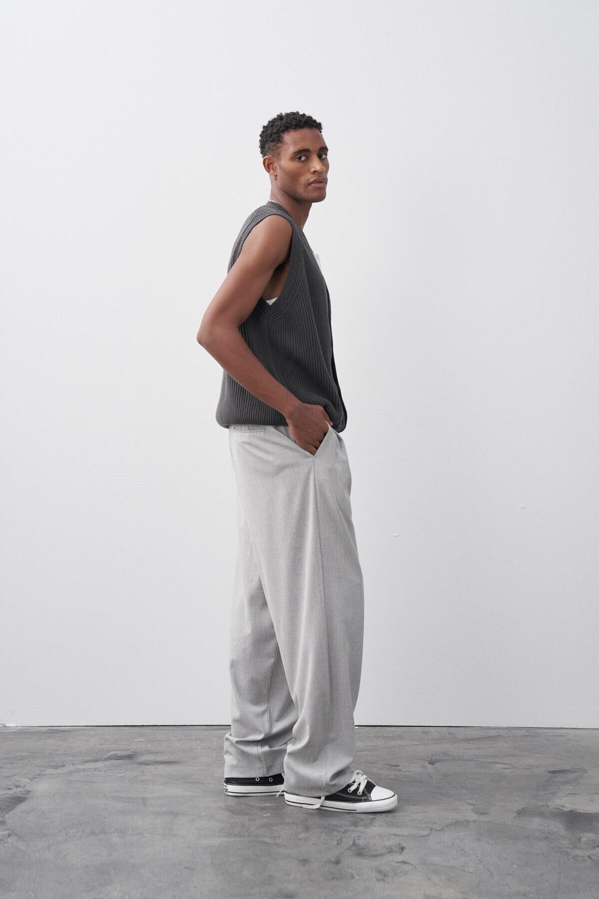 Baggy Fit Kumaş Pantolon Açık Gri (30-795-1)