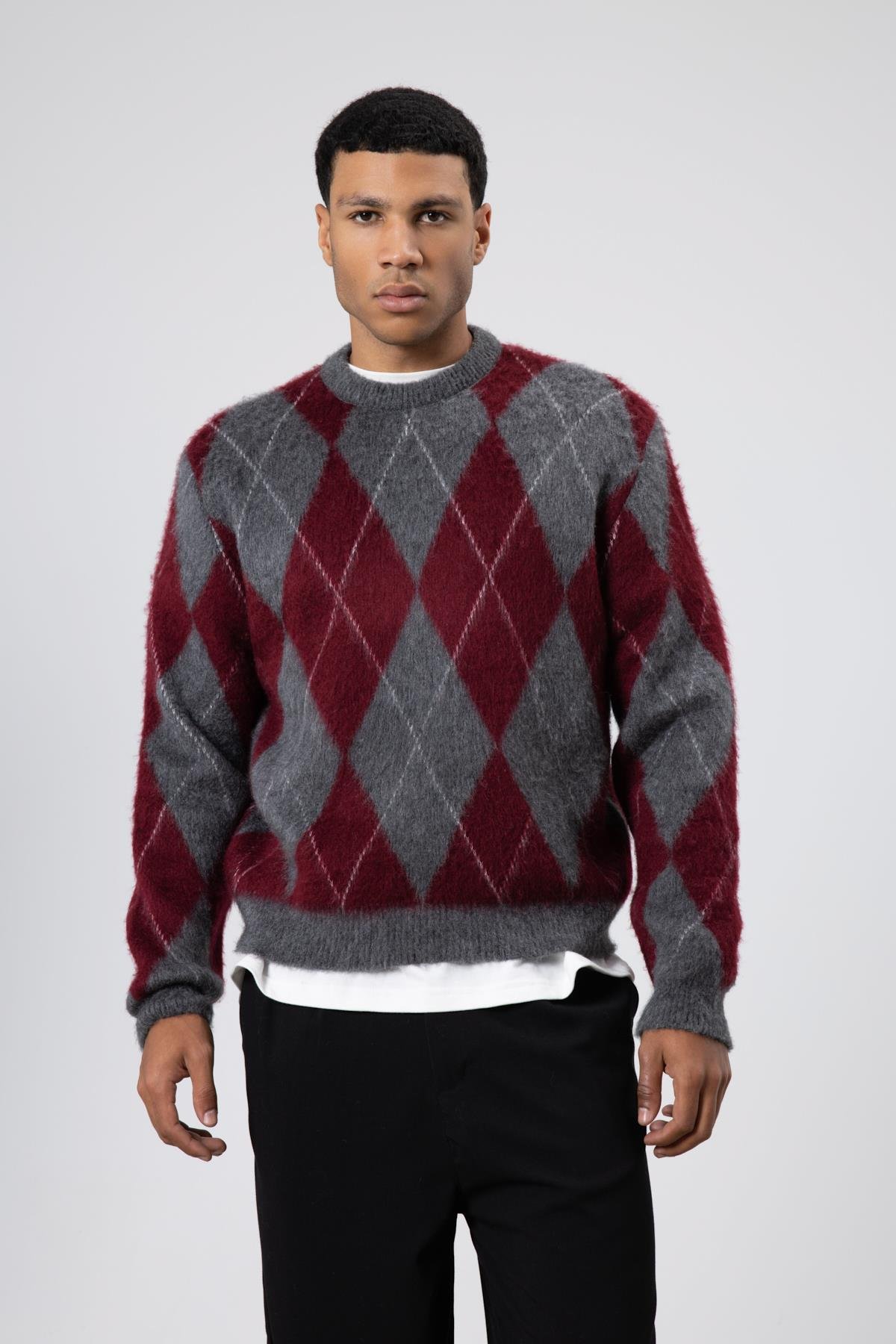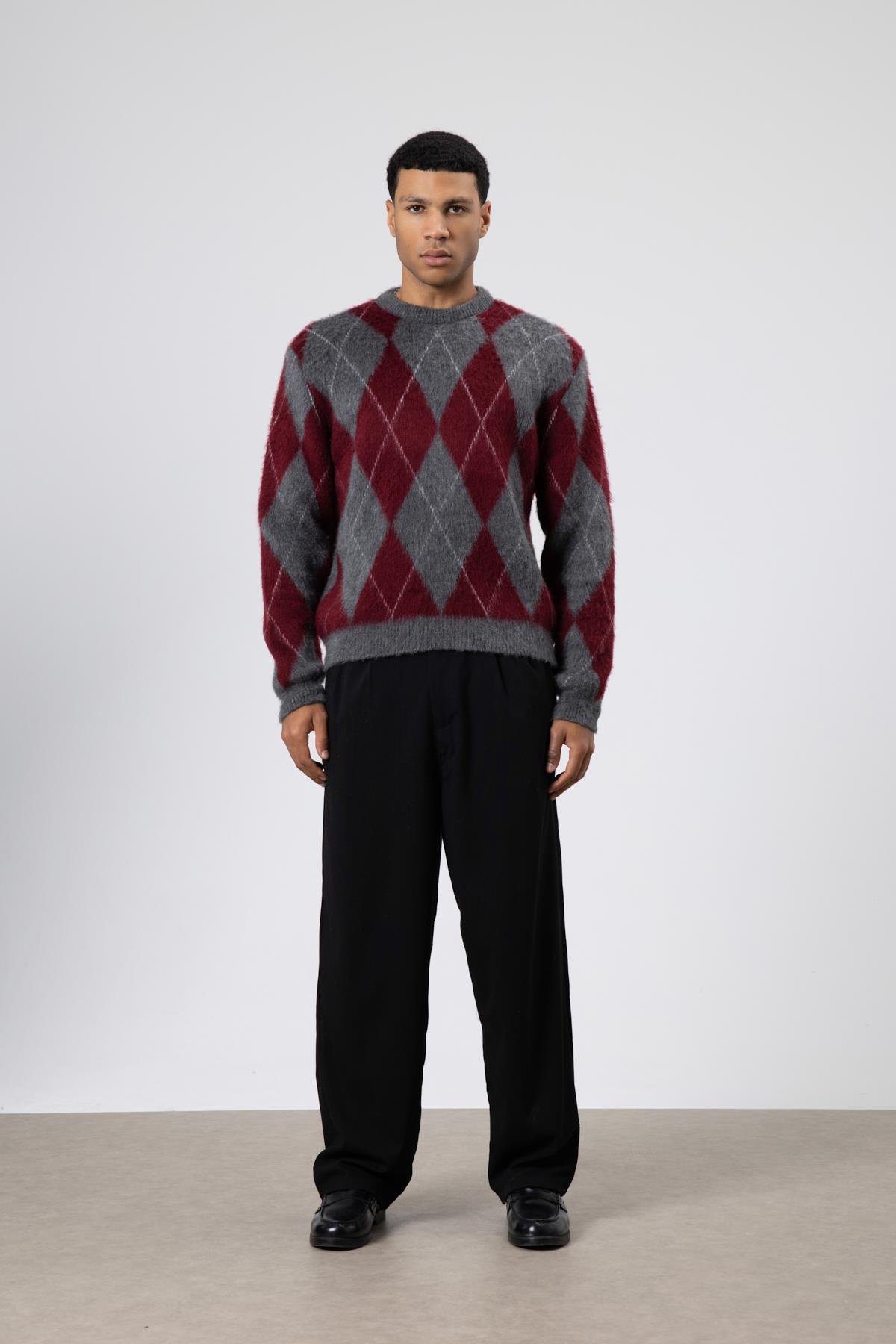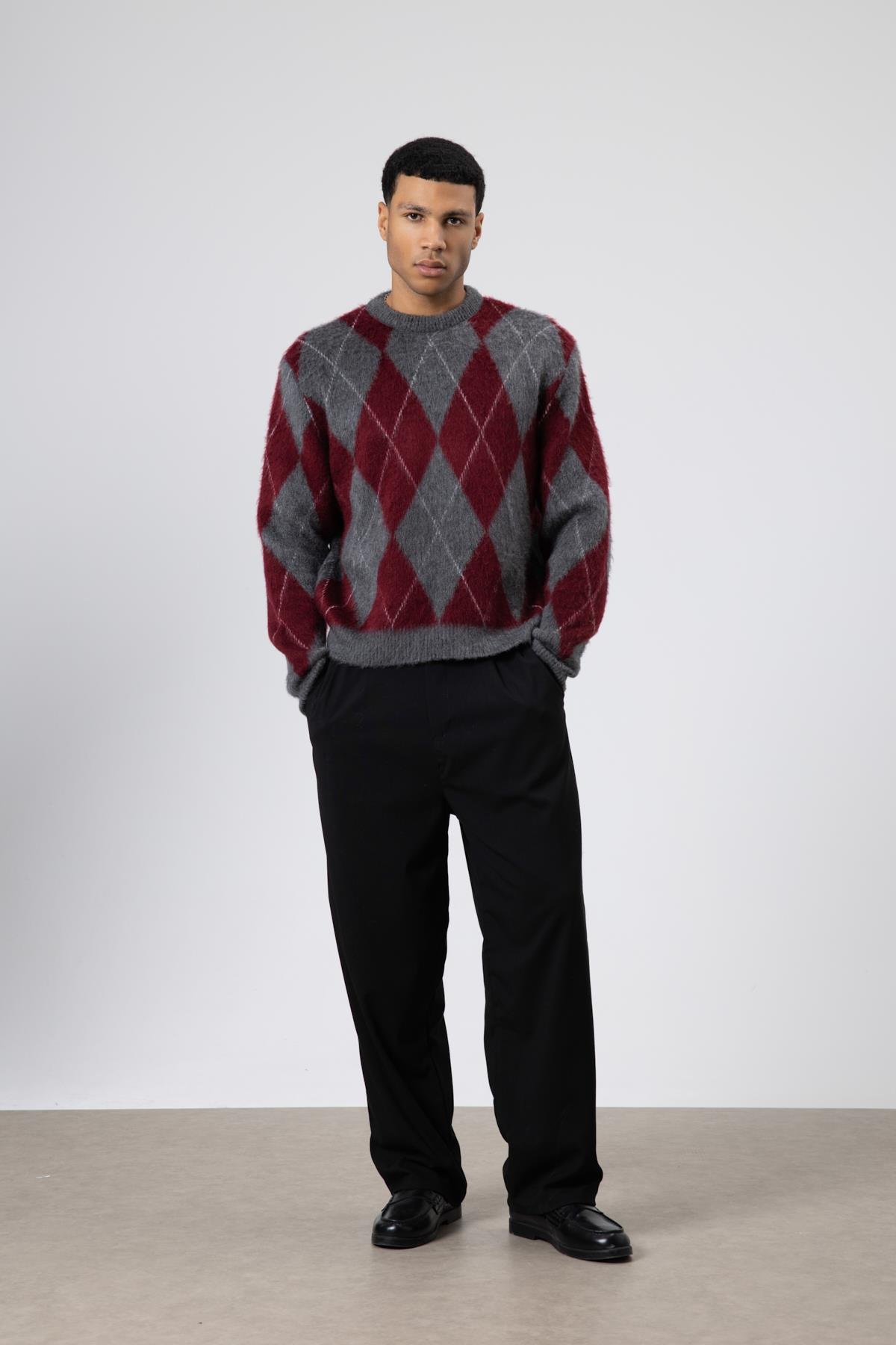 Baklava Desenli Oversize Kazak Bordo (V60-19)