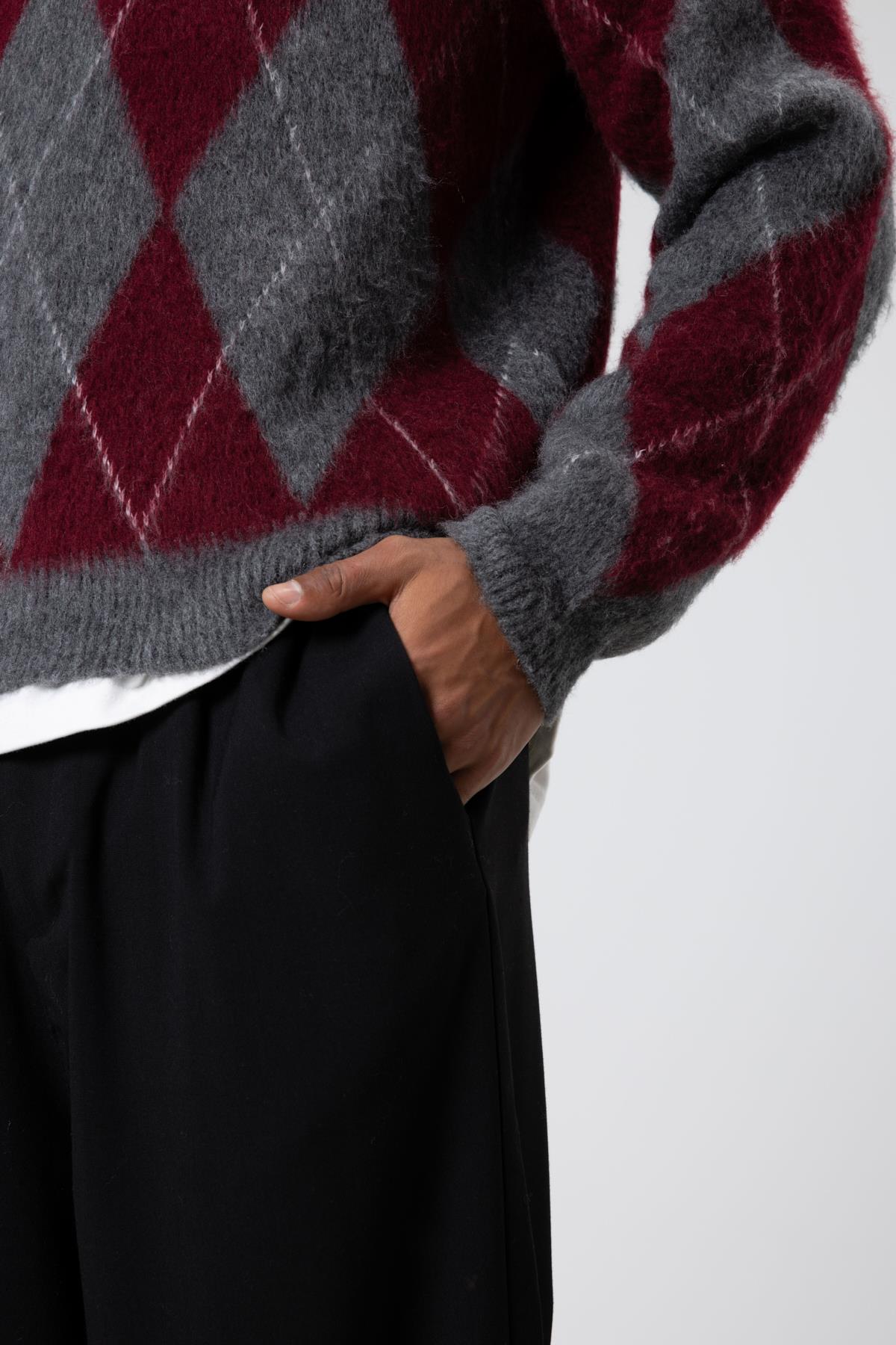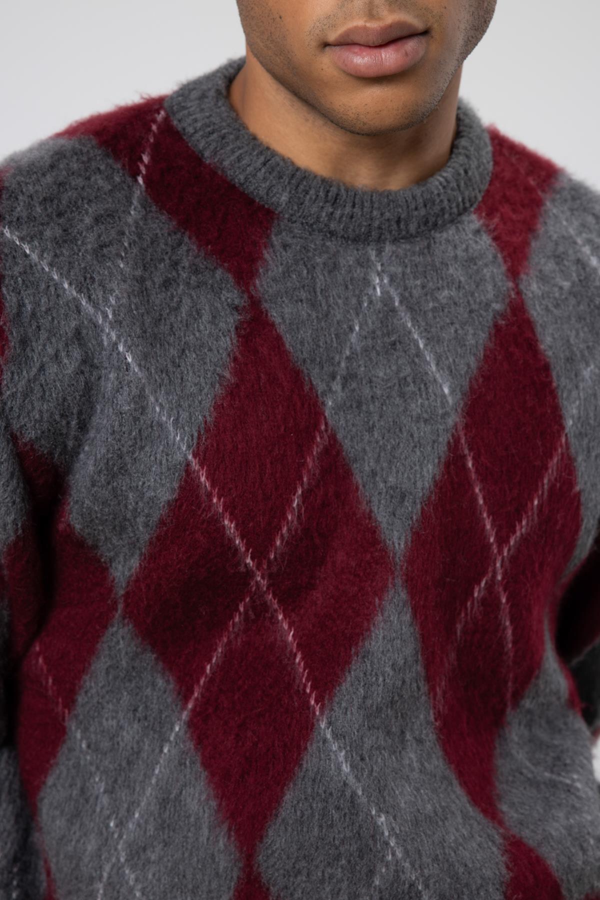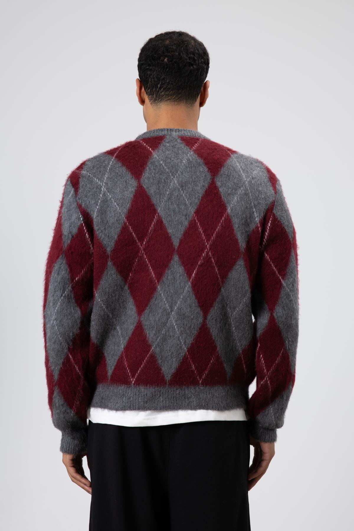 Baklava Desenli Oversize Kazak Bordo (V60-19)
