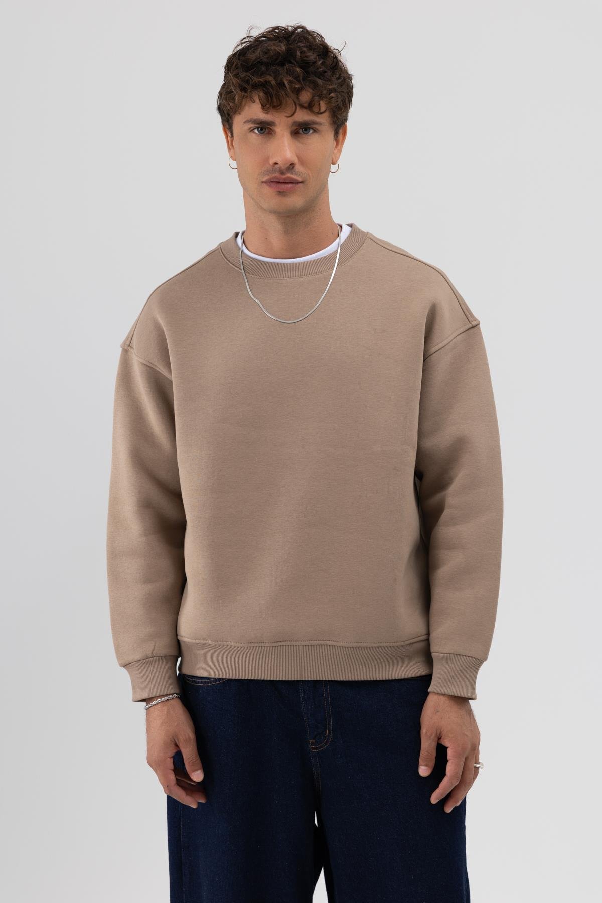 Basic Bisiklet Yaka Oversize Sweatshirt Açık Vızon (V70-79)