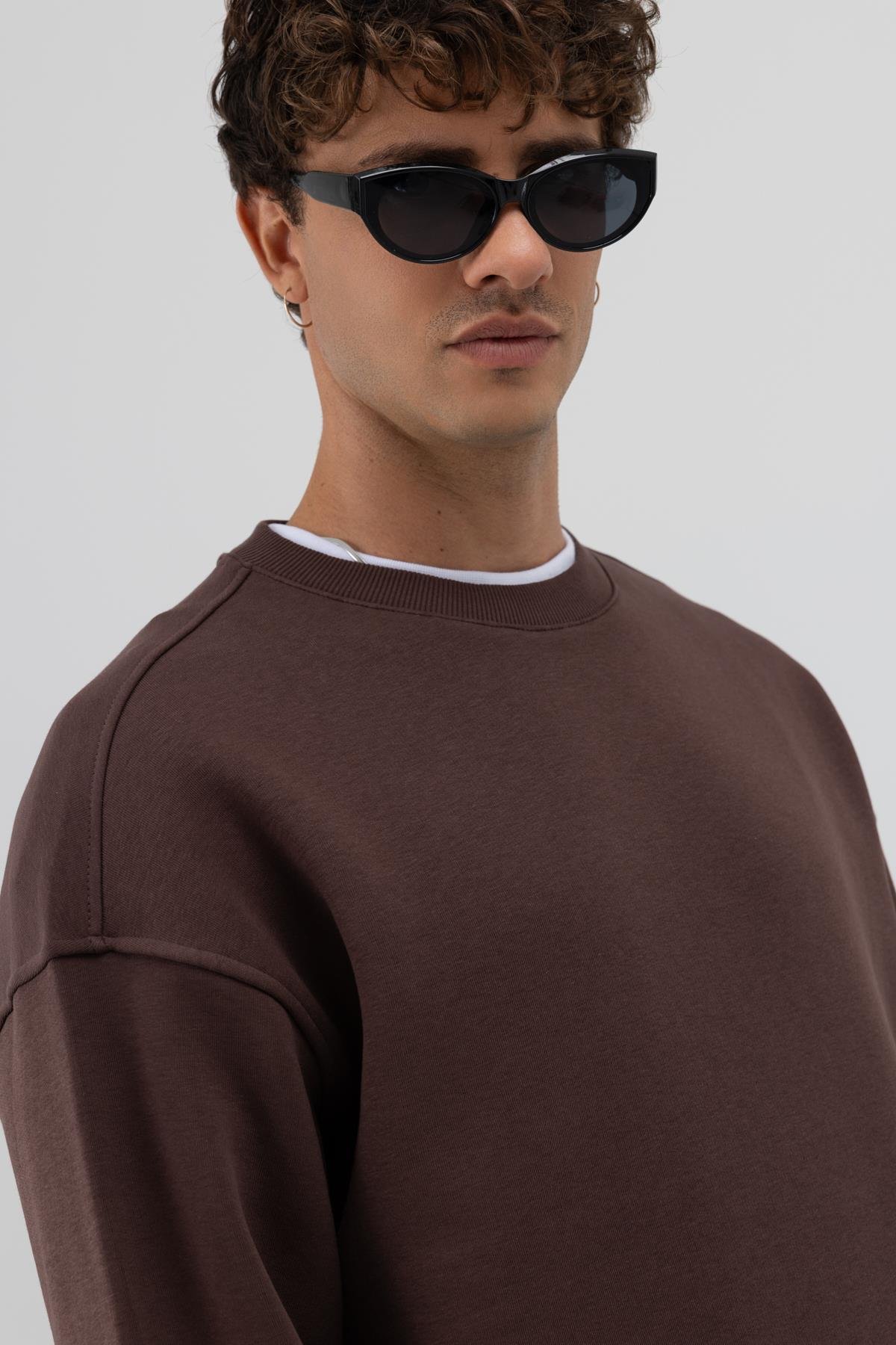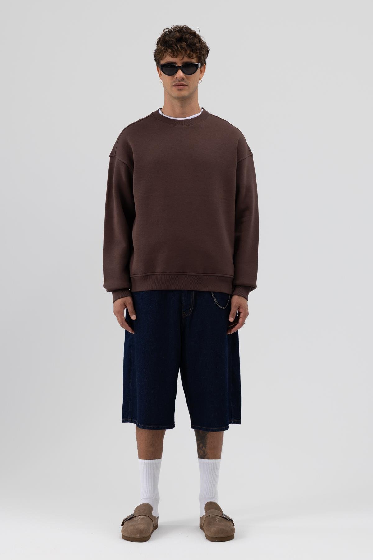Basic Bisiklet Yaka Oversize Sweatshirt Kahve (V70-79)