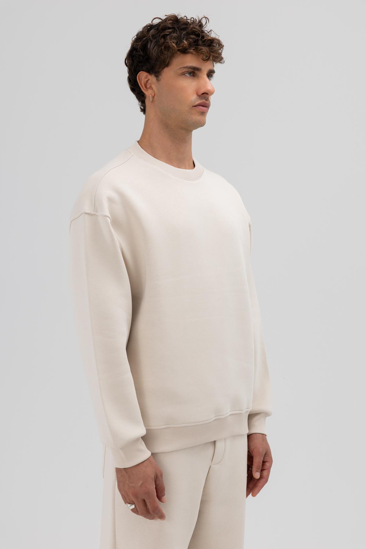 Basic Bisiklet Yaka Oversize Sweatshirt Taş (V70-79)