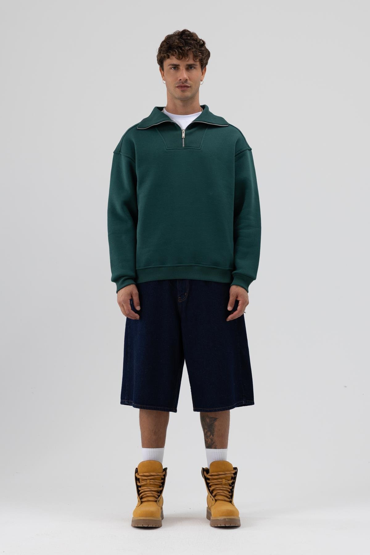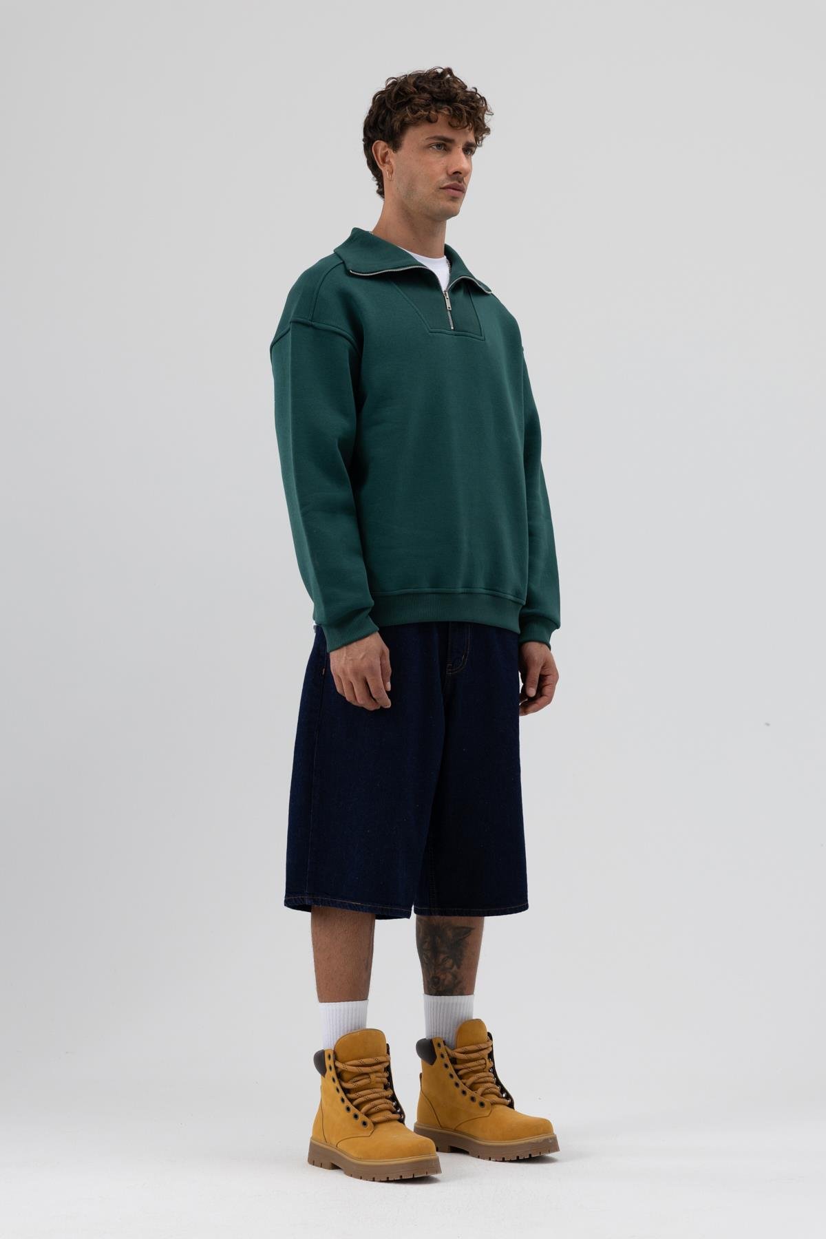 Basic Fermuarlı Dik Yaka Sweatshirt Nefti (V70-81)
