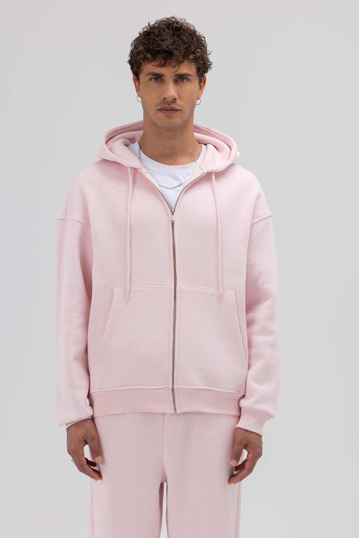 Basic Fermuarlı Oversize Kapüşonlu Sweatshirt Pembe (V70-78)