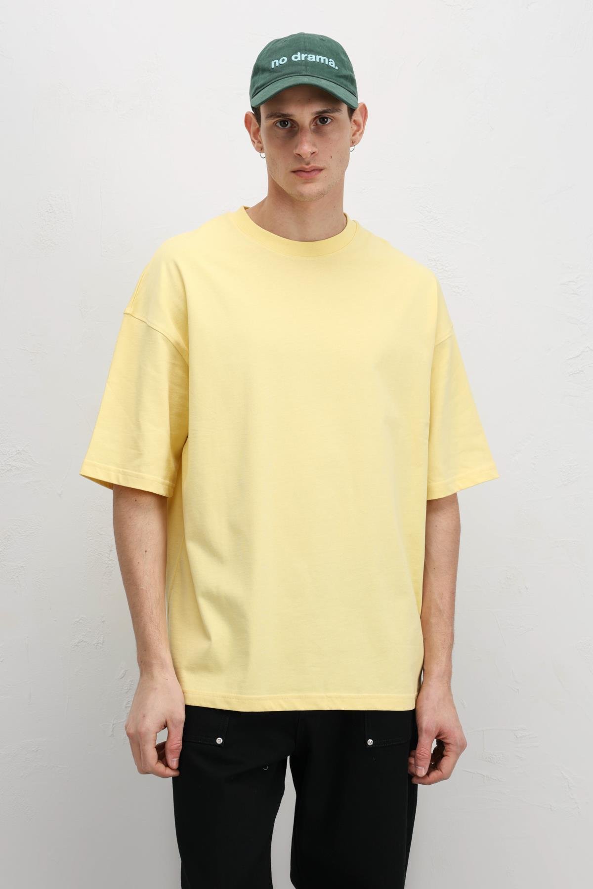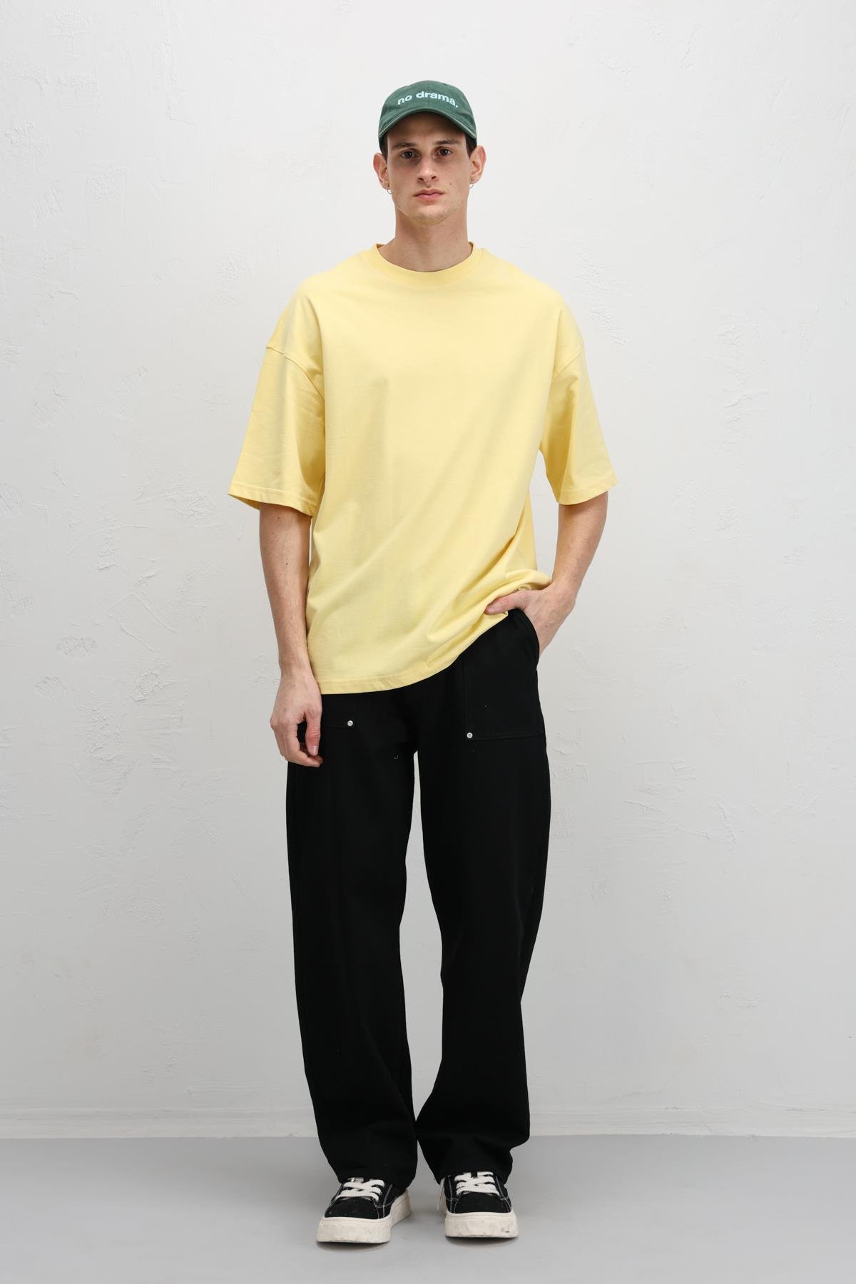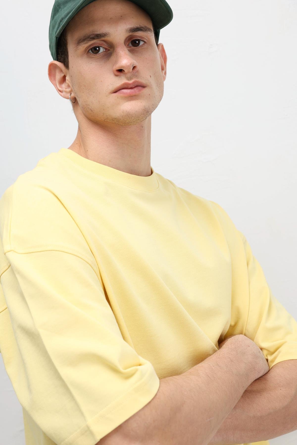 Basic Oversize Bisiklet Yaka Tişört Açık Sarı (V70-75)