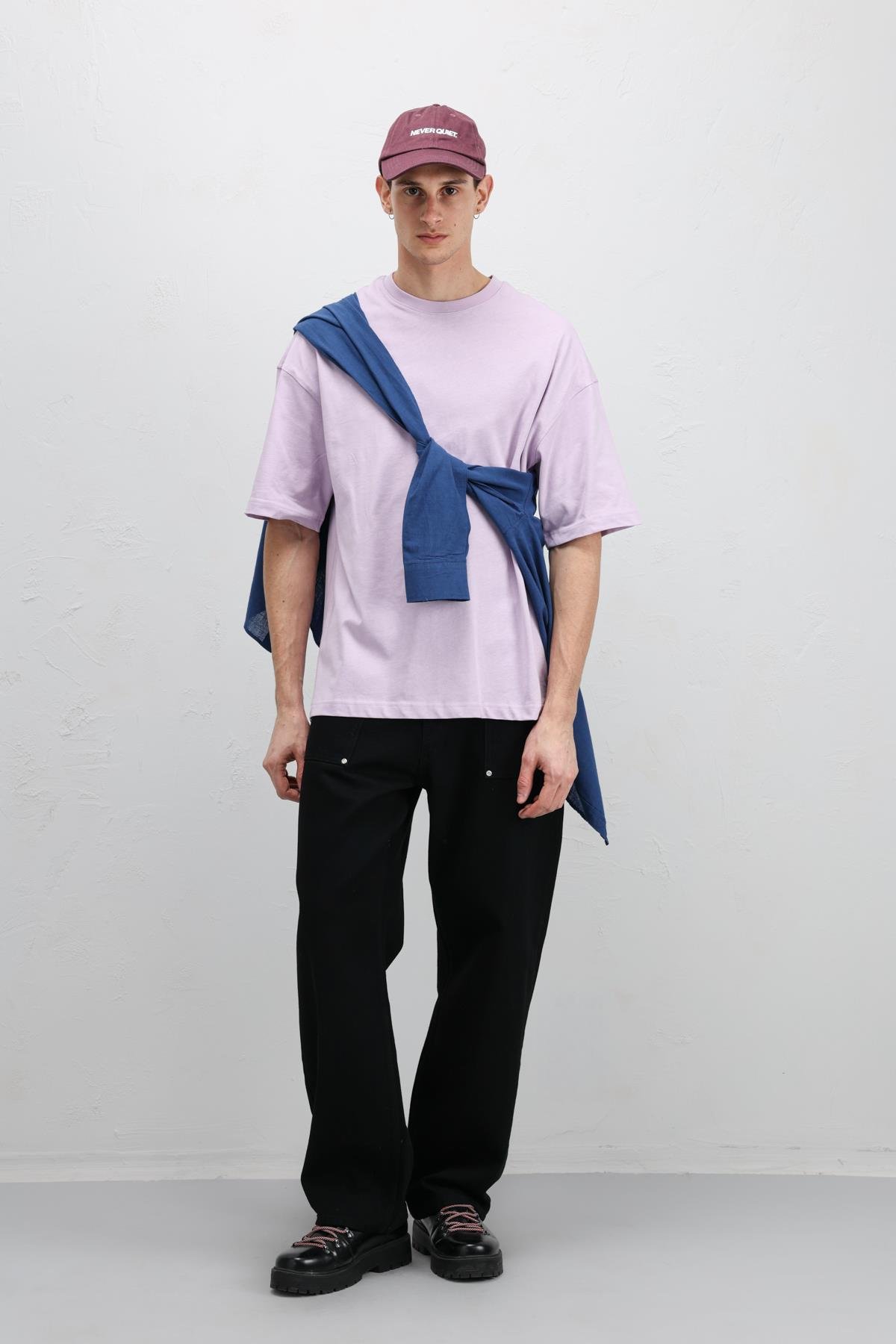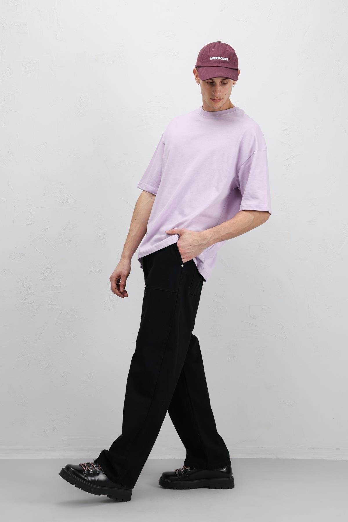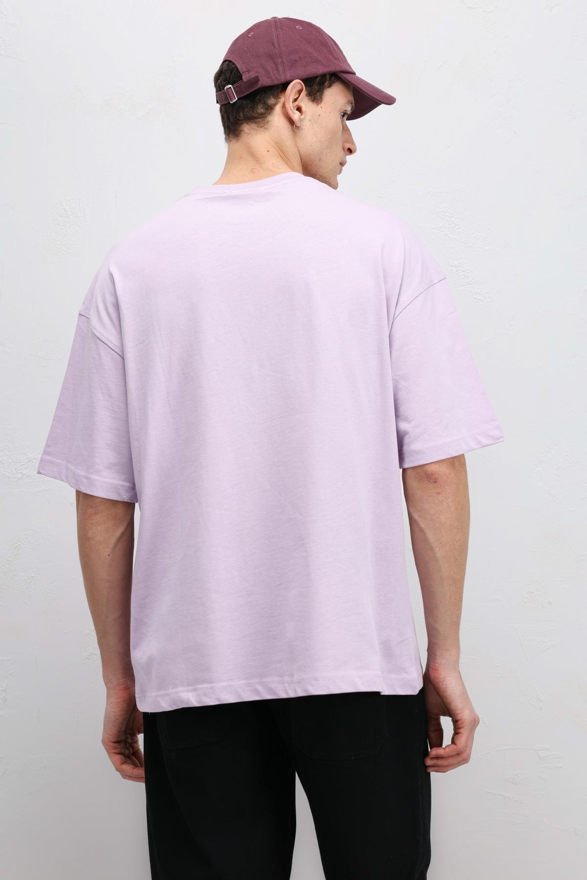 Basic Oversize Bisiklet Yaka Tişört Lila (V70-75)