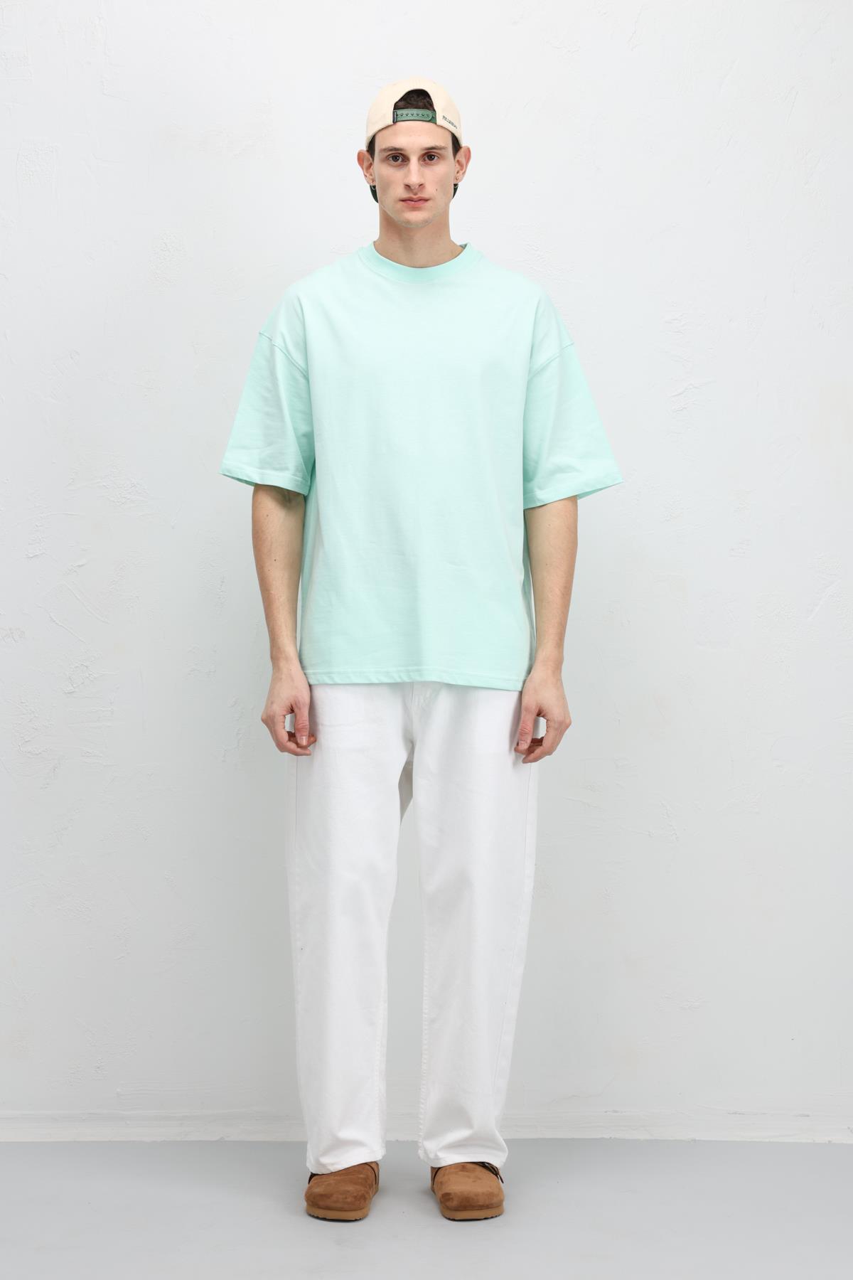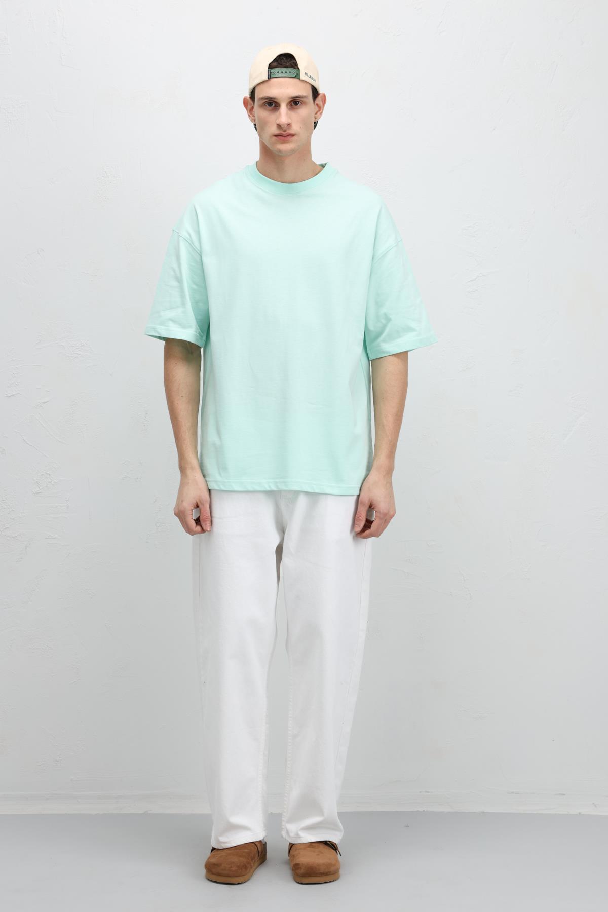 Basic Oversize Bisiklet Yaka Tişört Mint (V70-75)