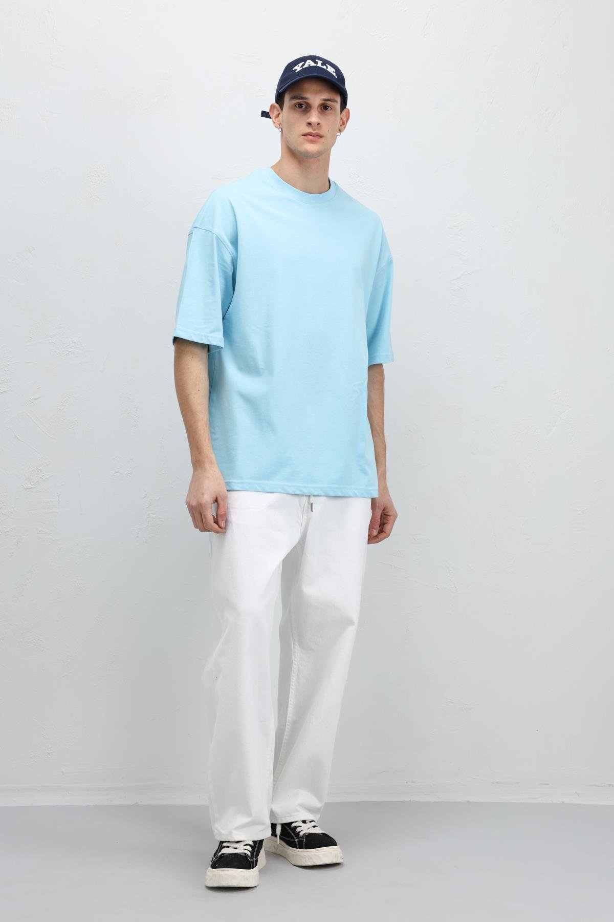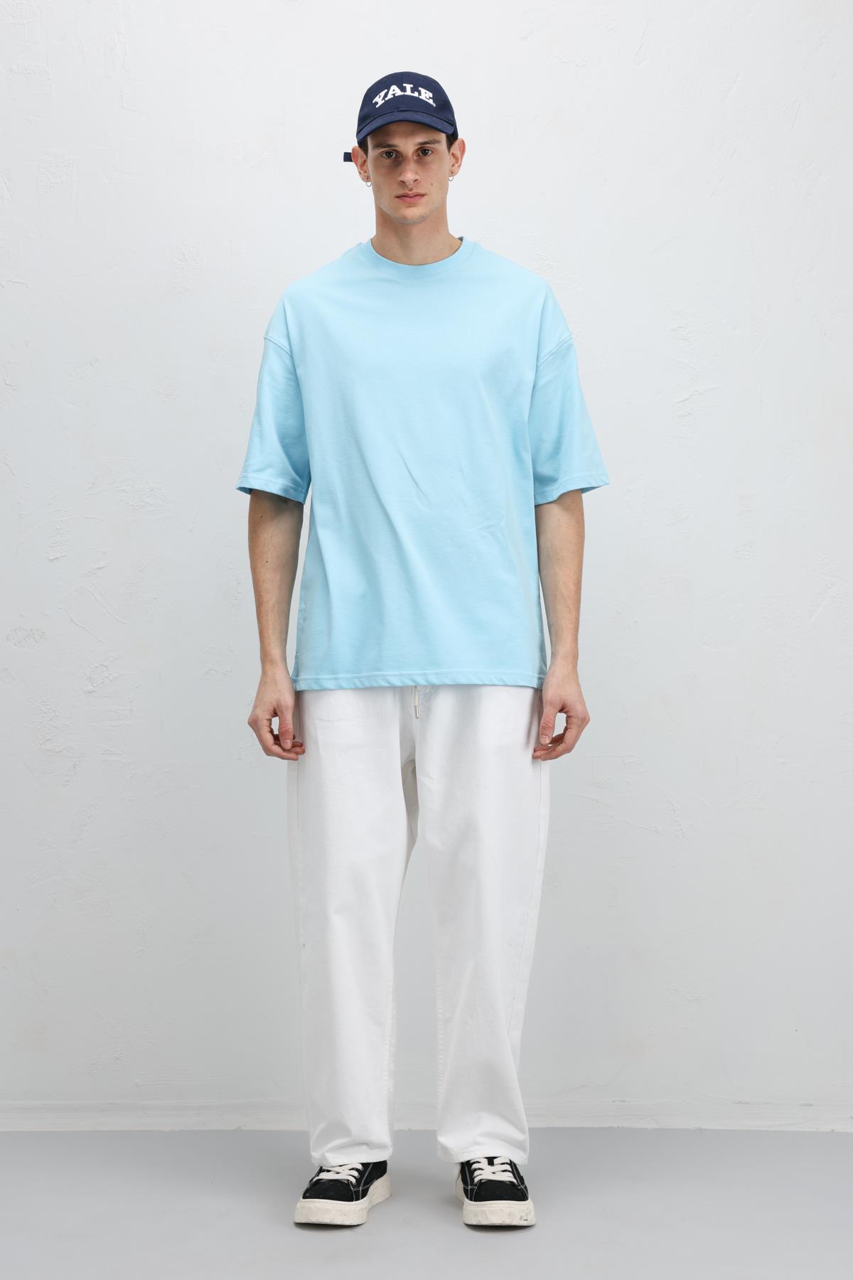 Basic Oversize Bisiklet Yaka Tişört Turkuaz (V70-75)