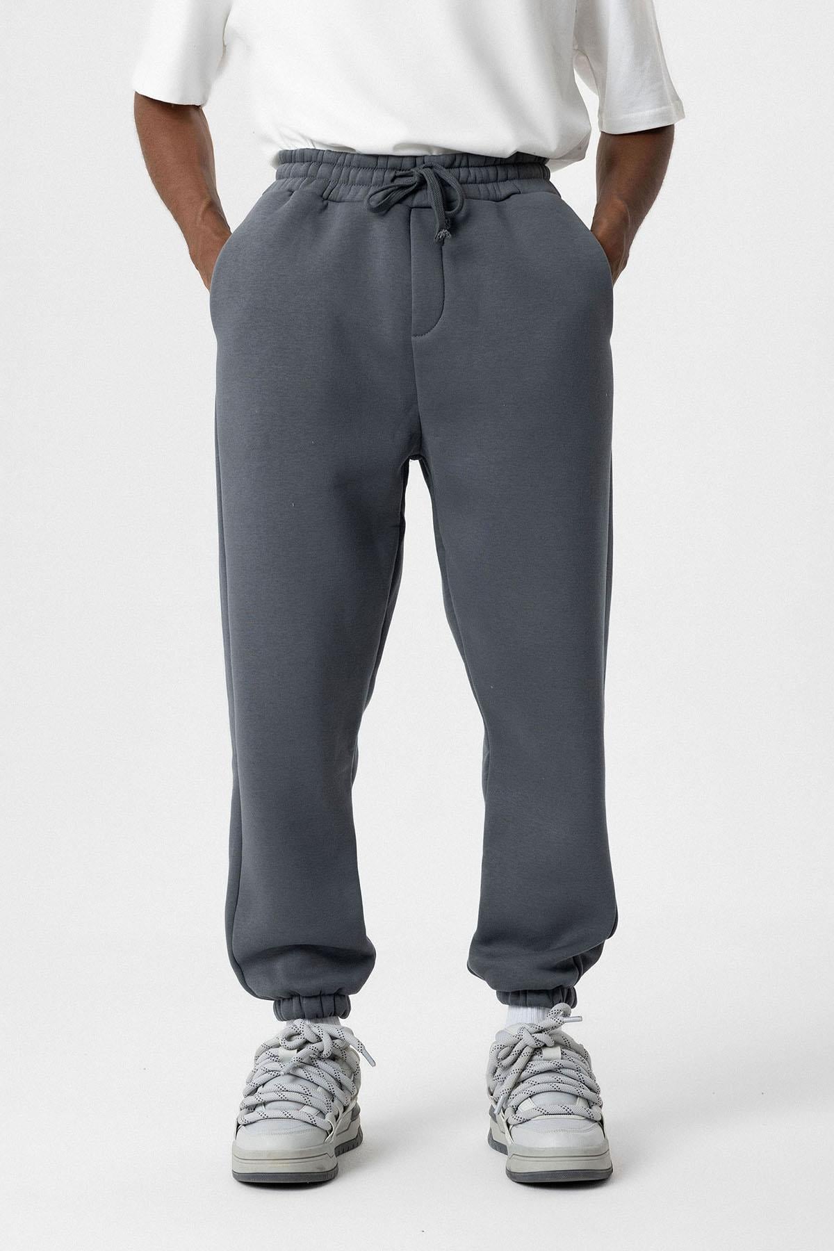 Basıc Oversize Jogger Eşofman Altı Açık Füme (V20-02)