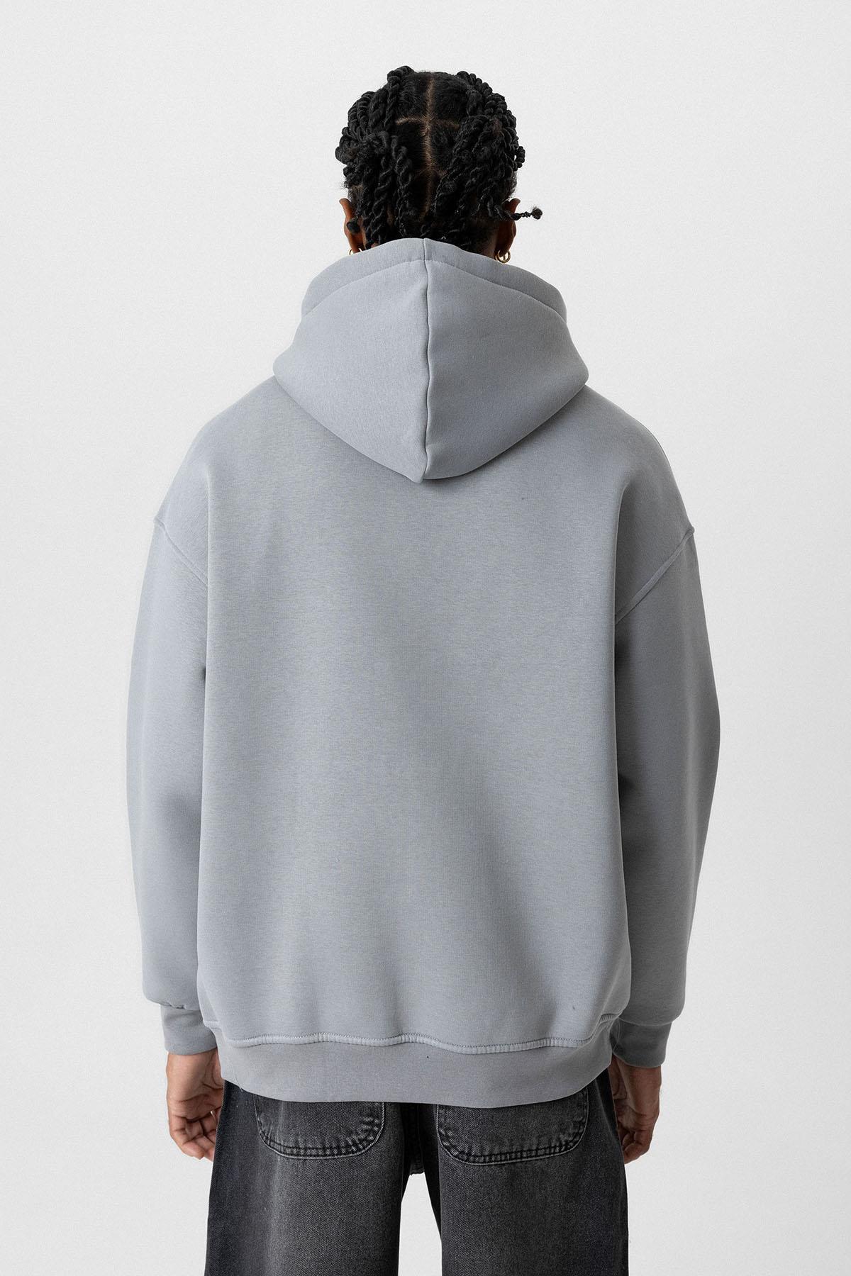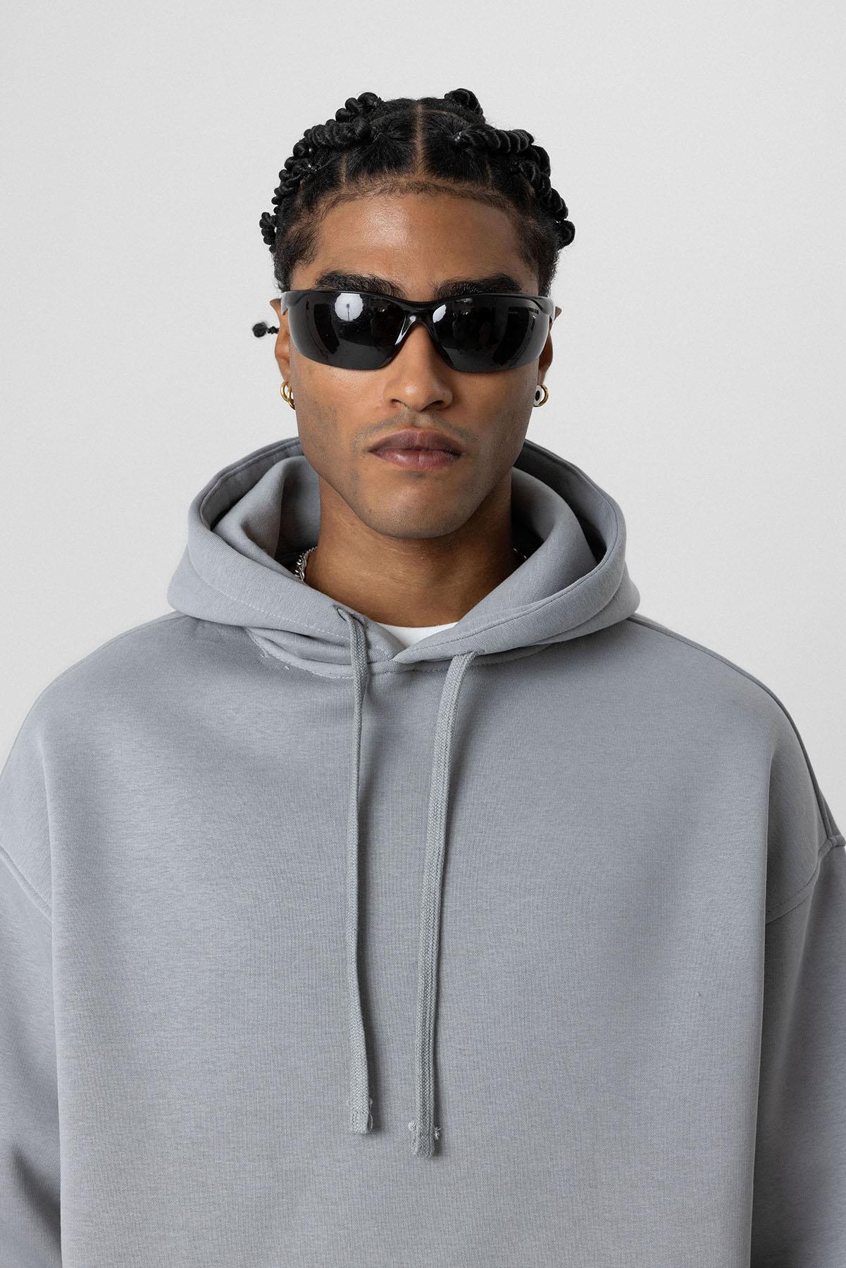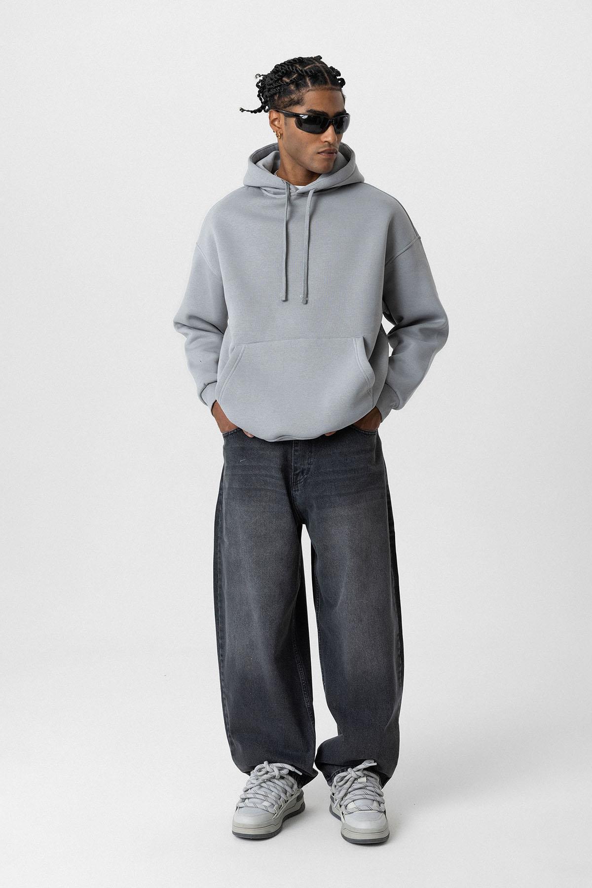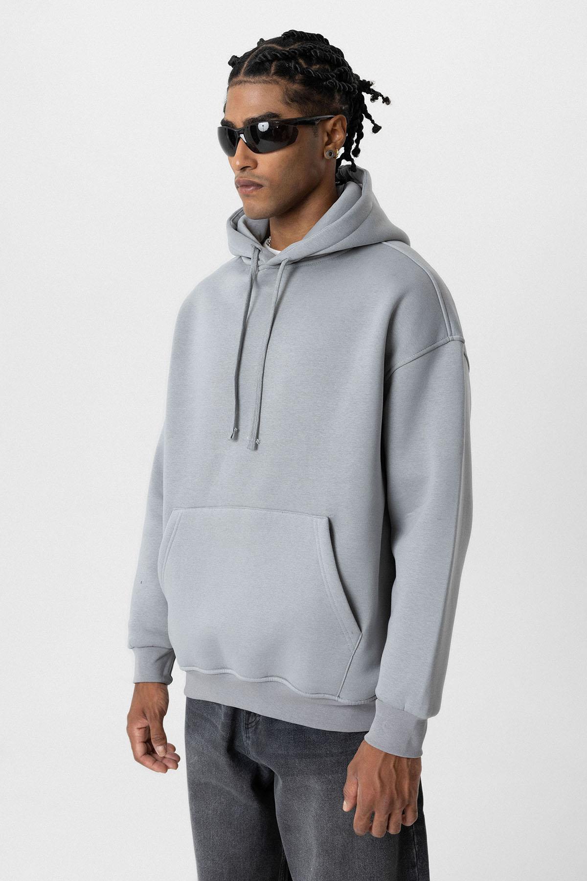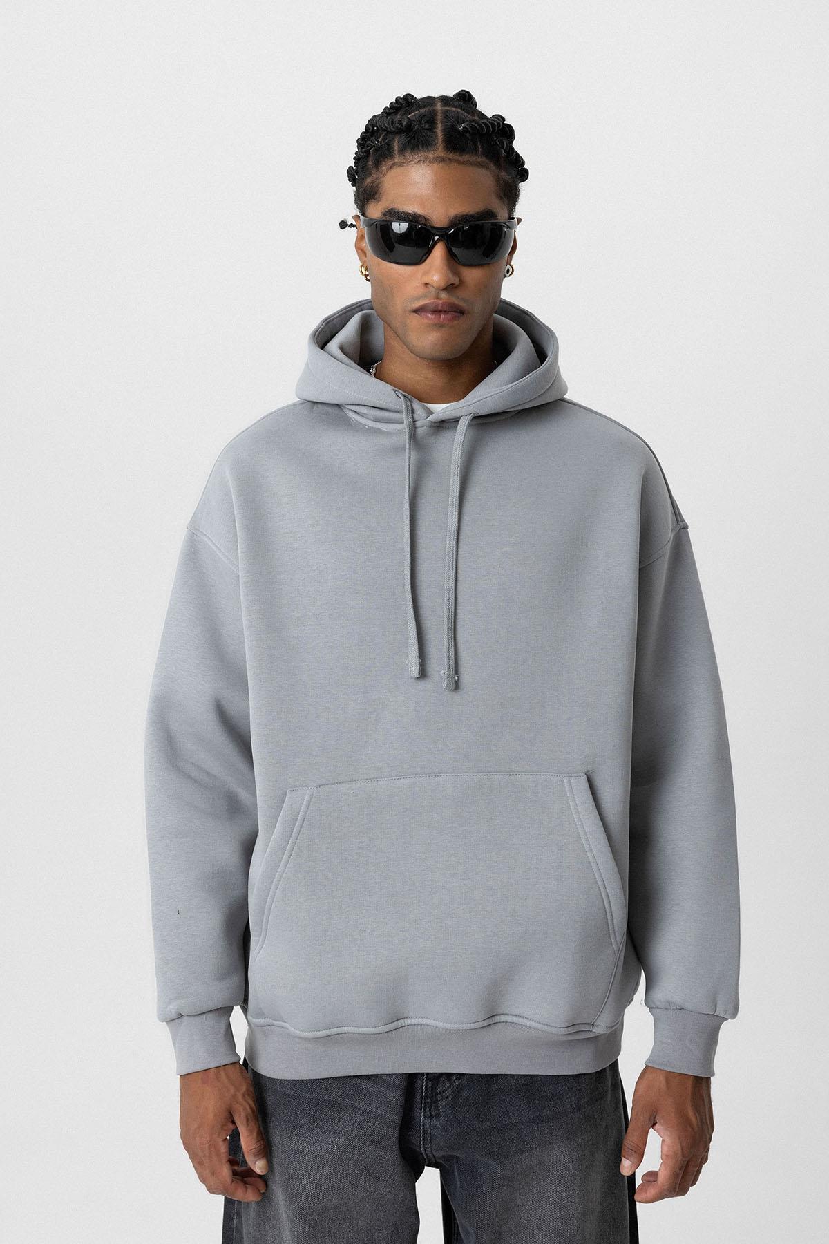 Basıc Oversize Kapüşonlu Cep Detaylı Sweatshirt Buz Gri (V10-02)
