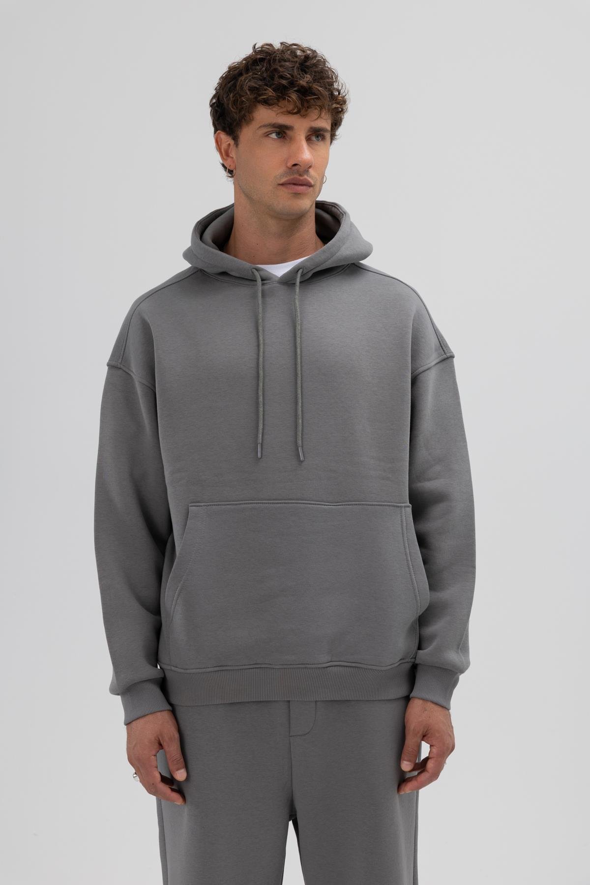 Basic Oversize Kapüşonlu Sweatshirt Füme (V70-80)