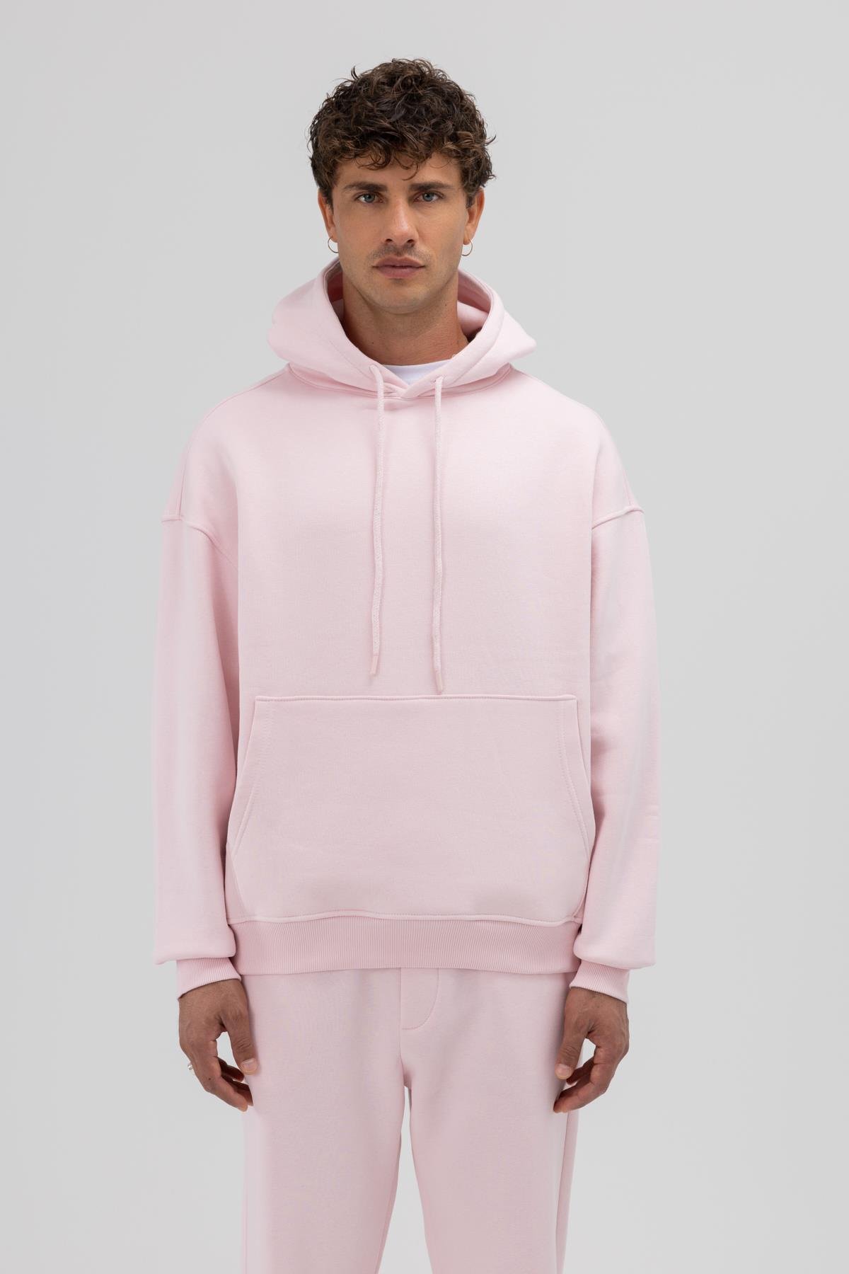Basic Oversize Kapüşonlu Sweatshirt Pembe (V70-80)