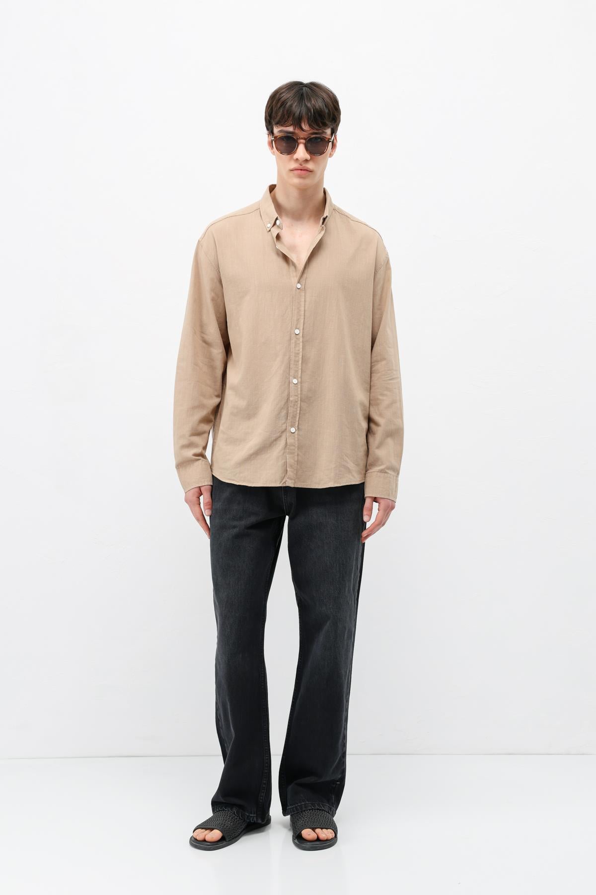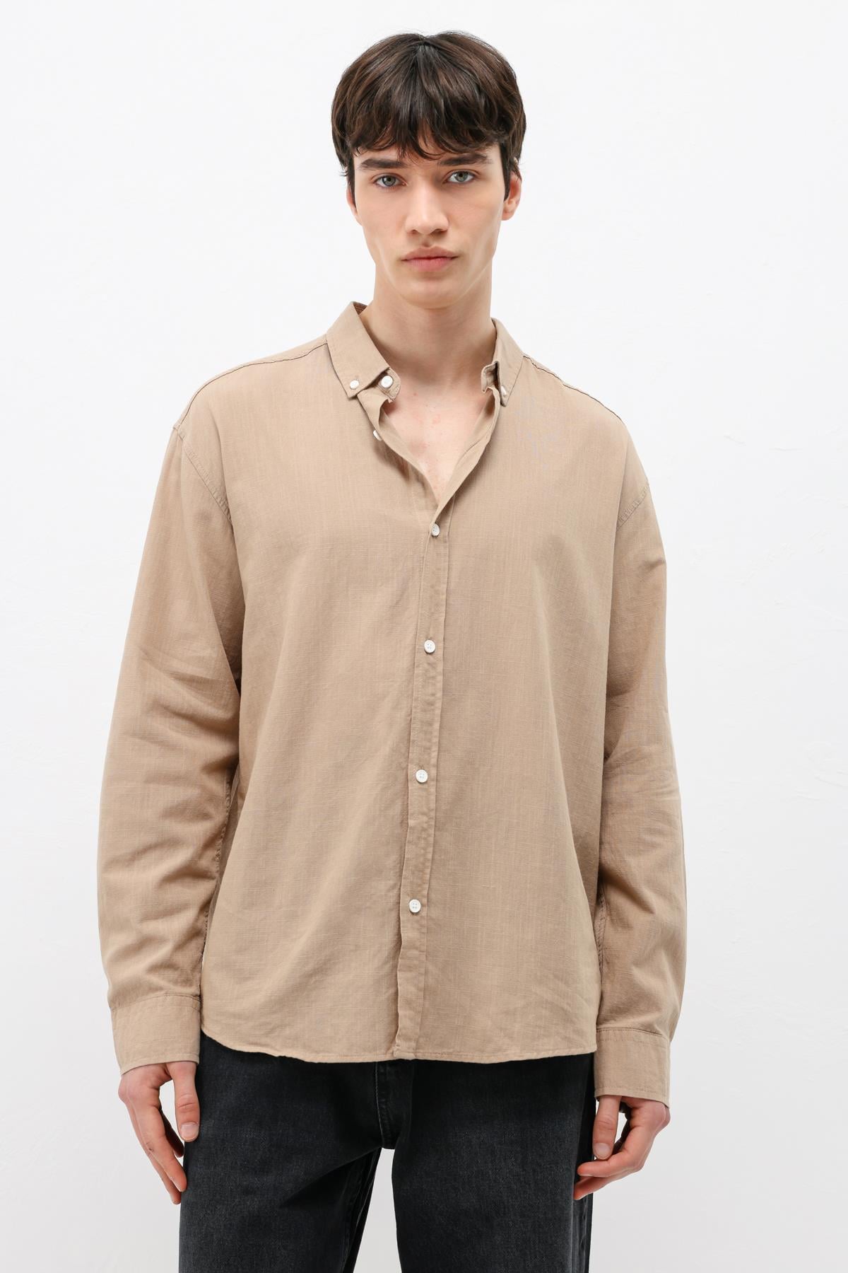 Basic Oversize Pamuk Keten Gömlek Vizon (V40-54)
