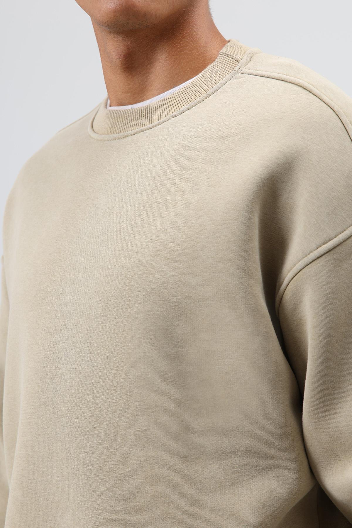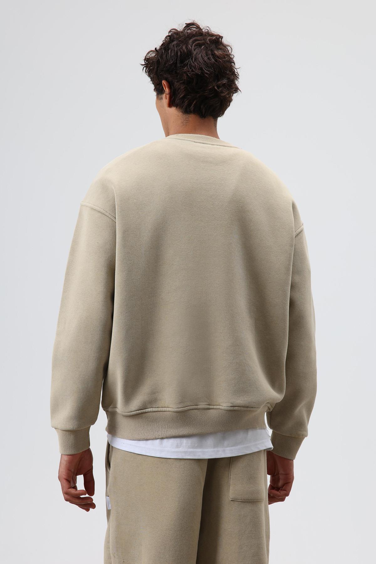 Basic Oversize Yıkamalı Sweatshirt Haki (V70-107)