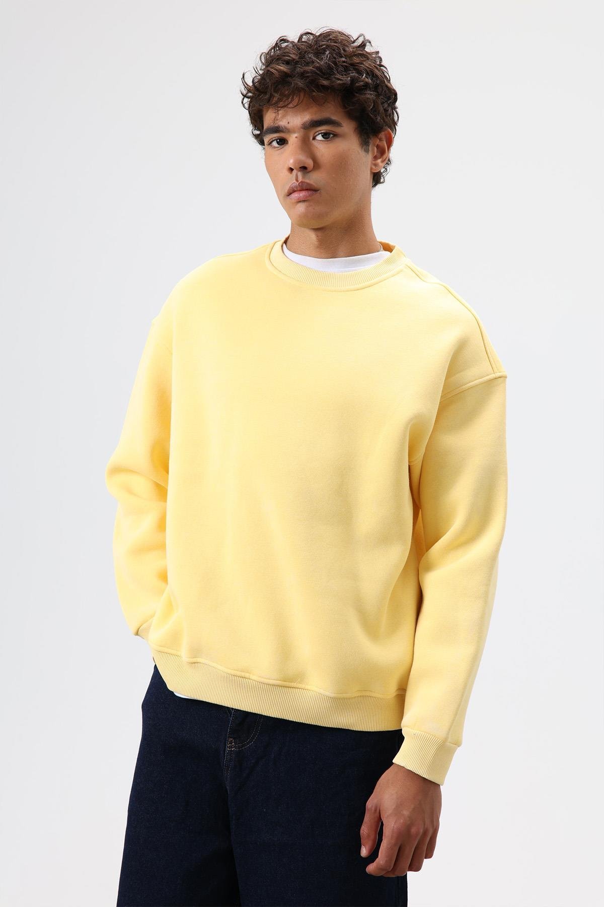 Basic Oversize Yıkamalı Sweatshirt Sarı (V70-107)