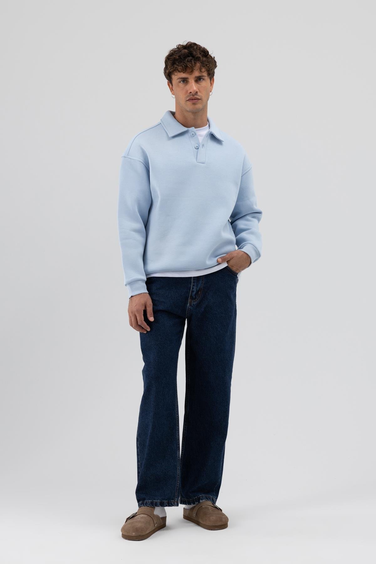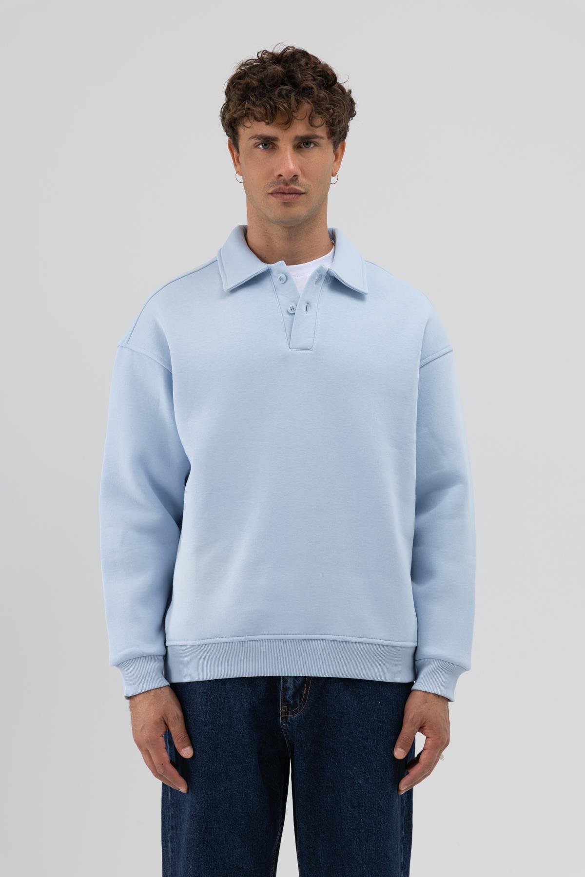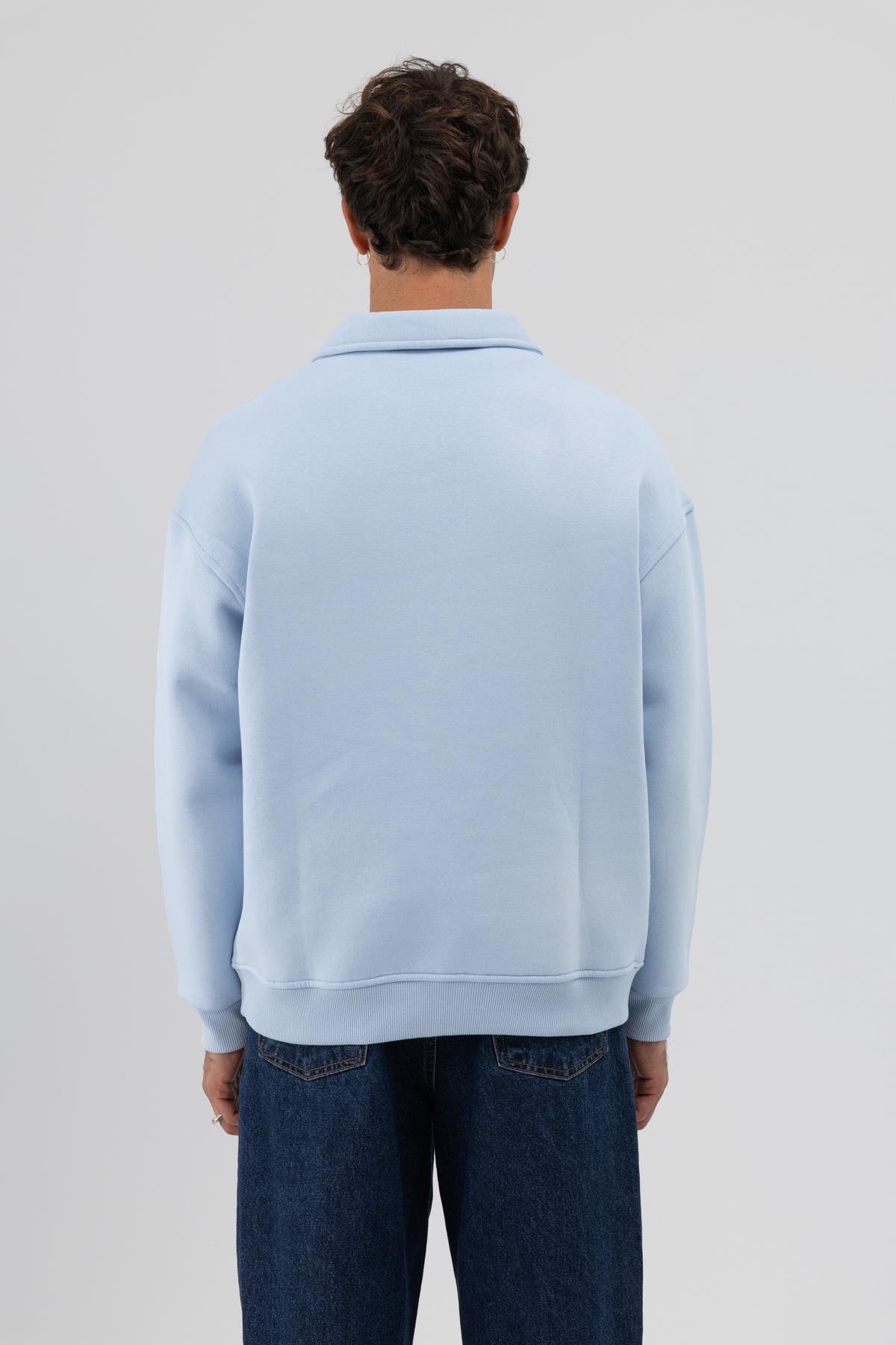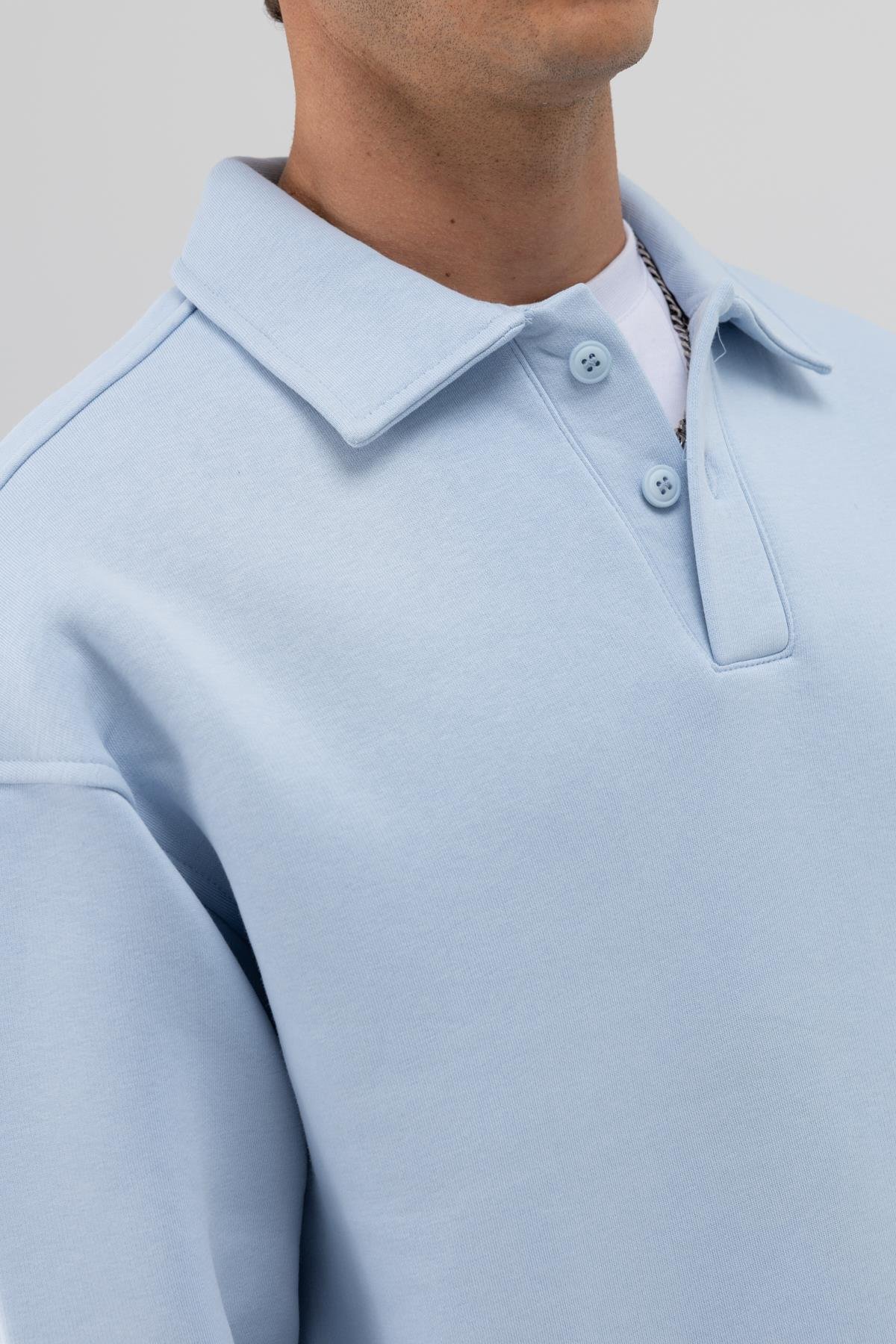 Basic Polo Yaka Sweatshirt Bebe Mavi (V70-83)