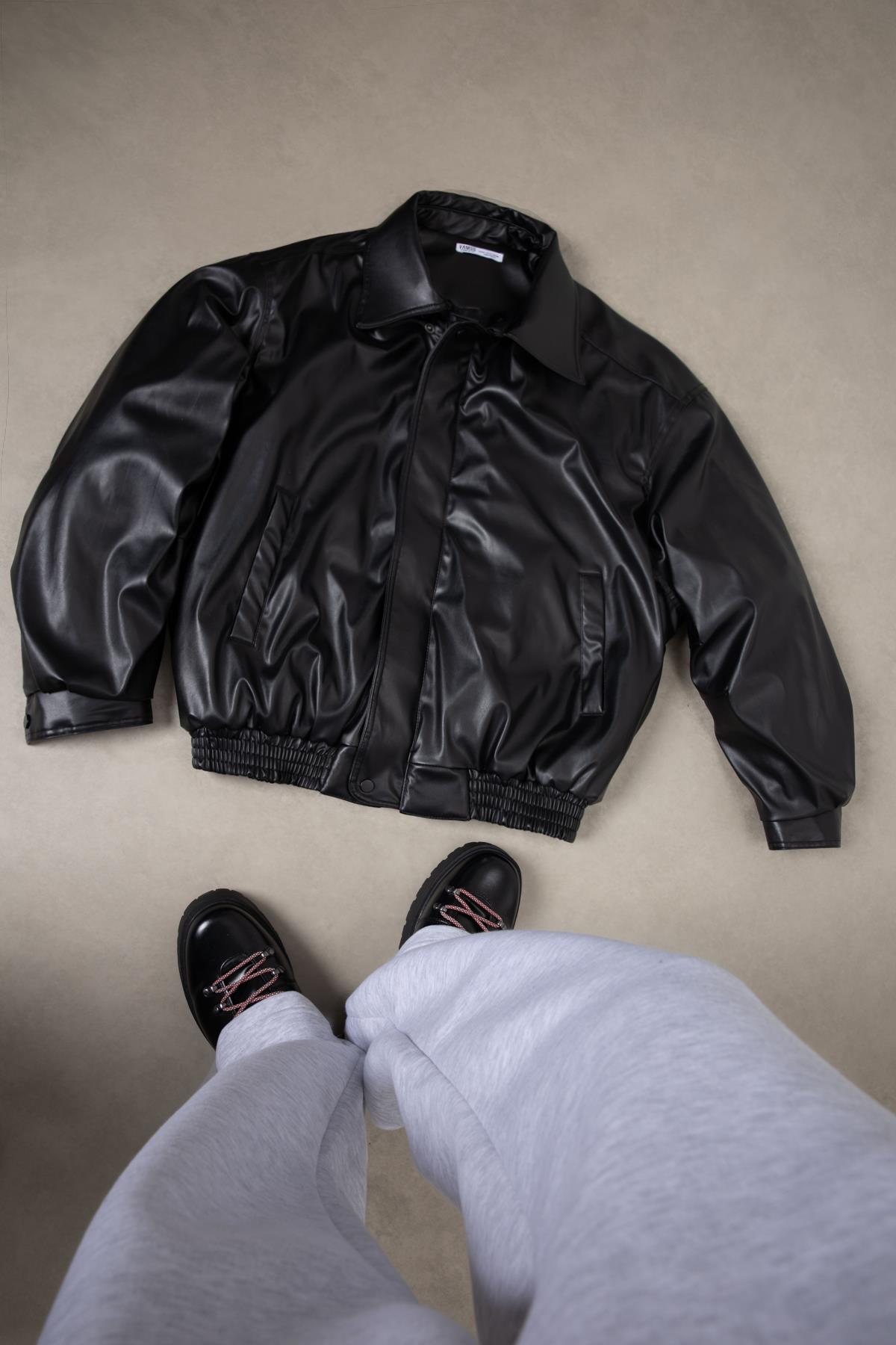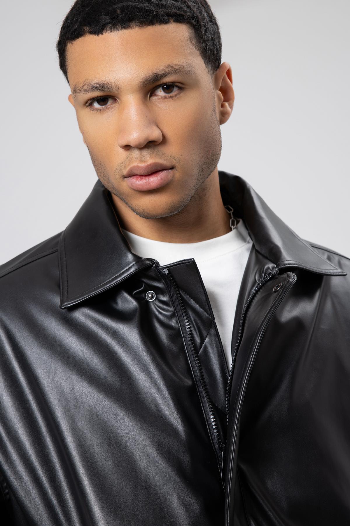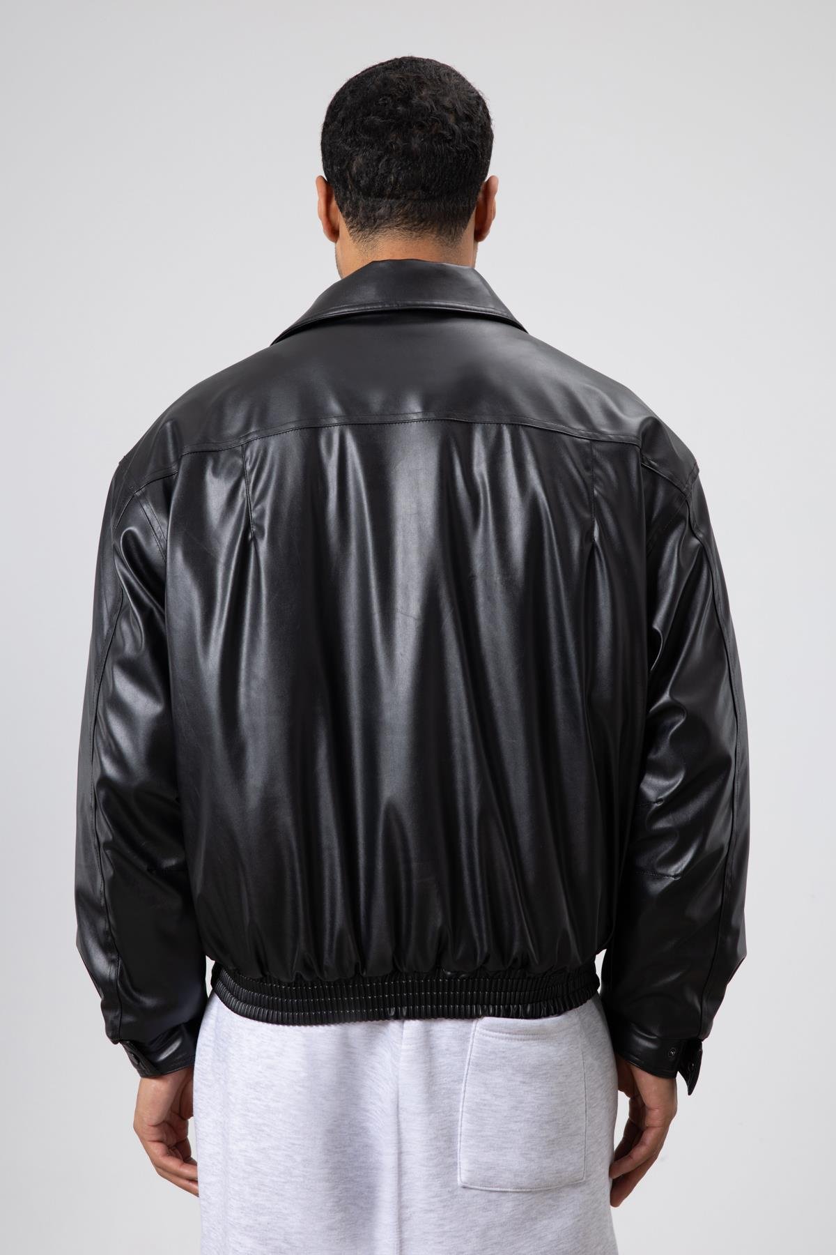 Basıc Suni Deri Oversize Ceket Siyah (V50-02)