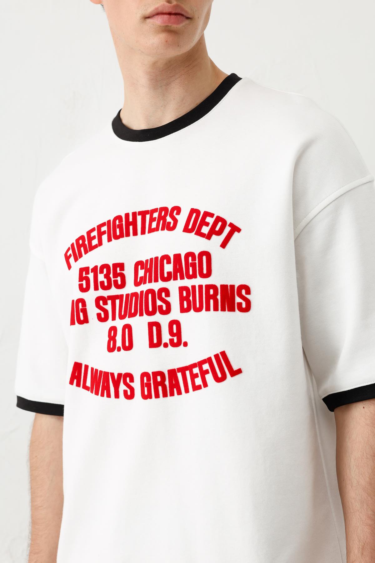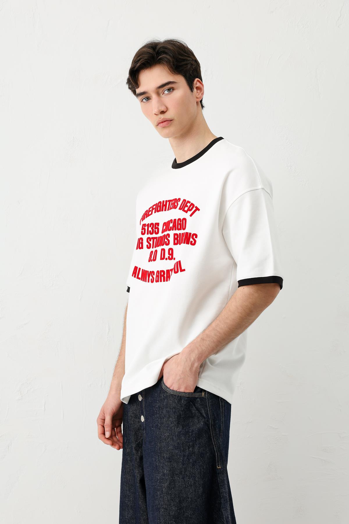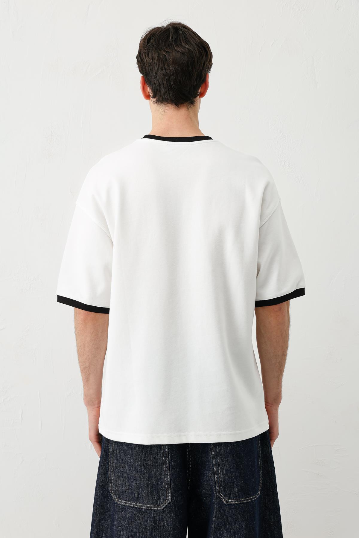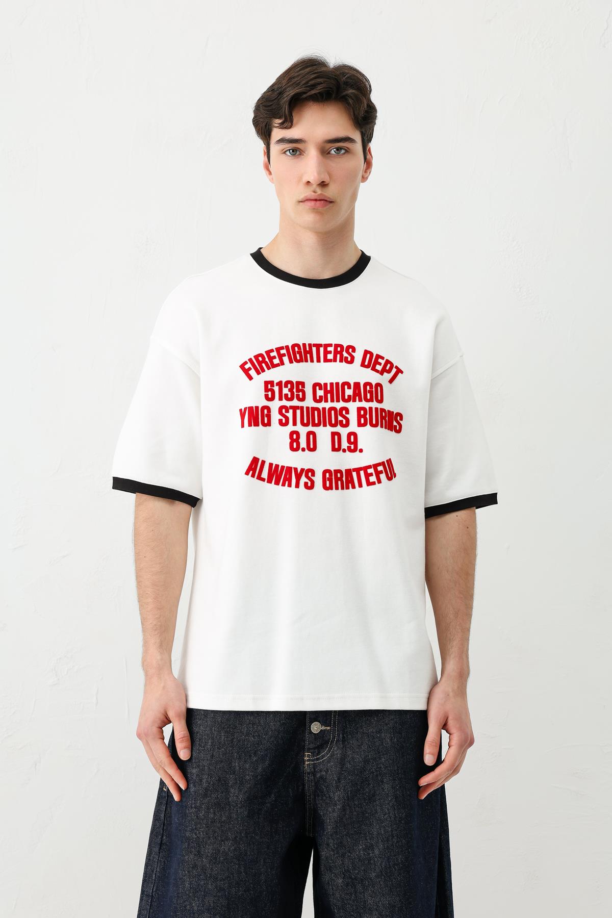 Baskılı Bisiklet Yaka Oversize Tişört Ekru (V70-157)