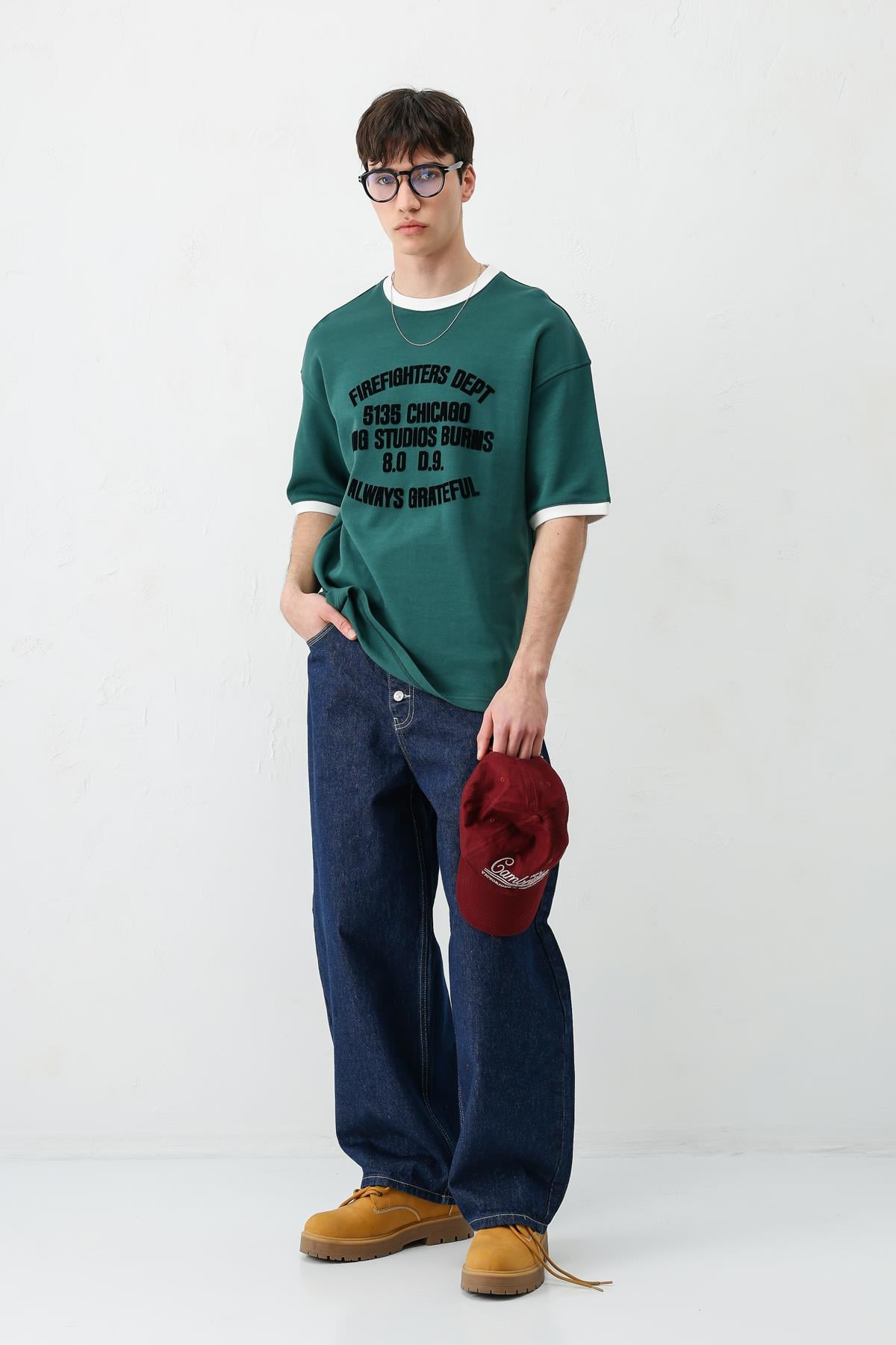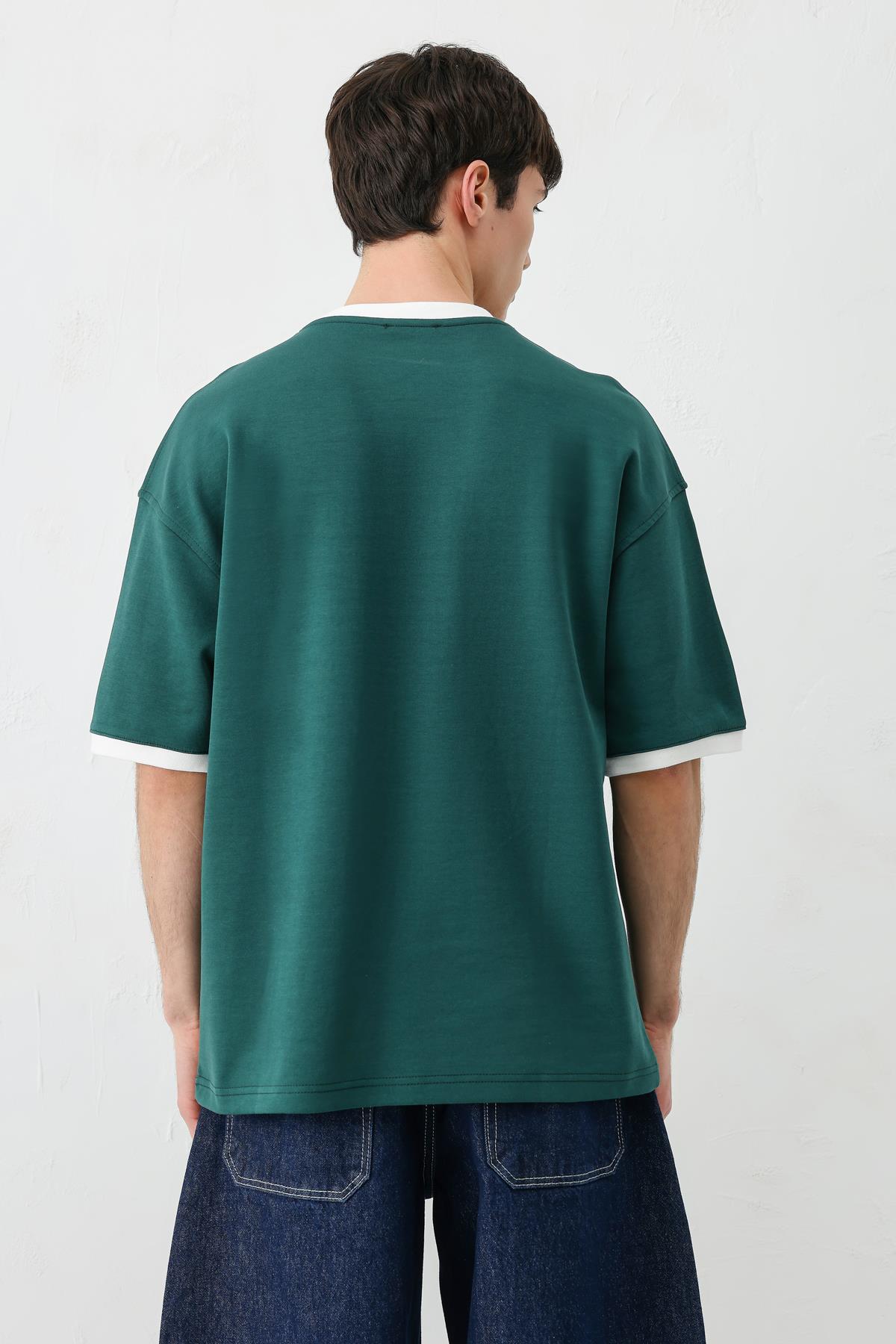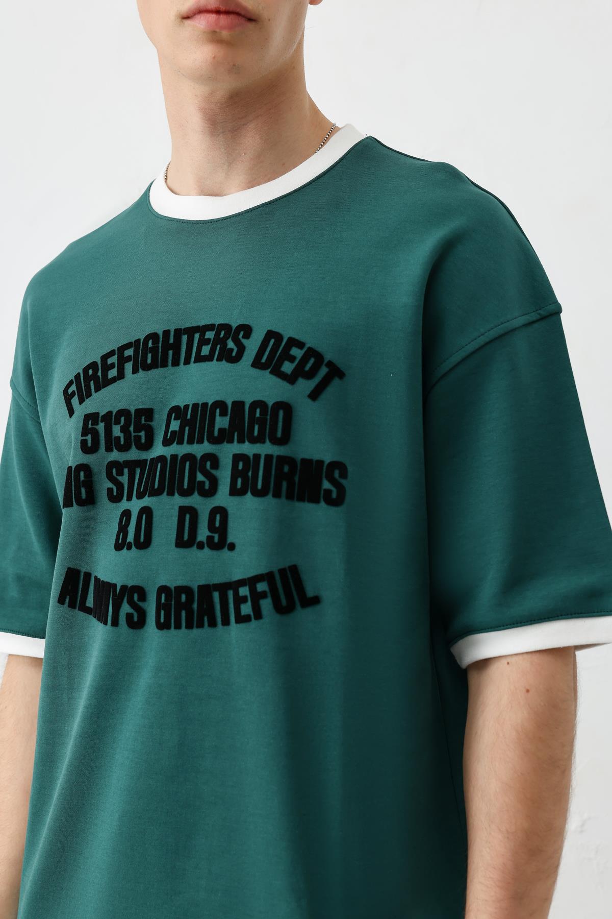 Baskılı Bisiklet Yaka Oversize Tişört Nefti (V70-157)