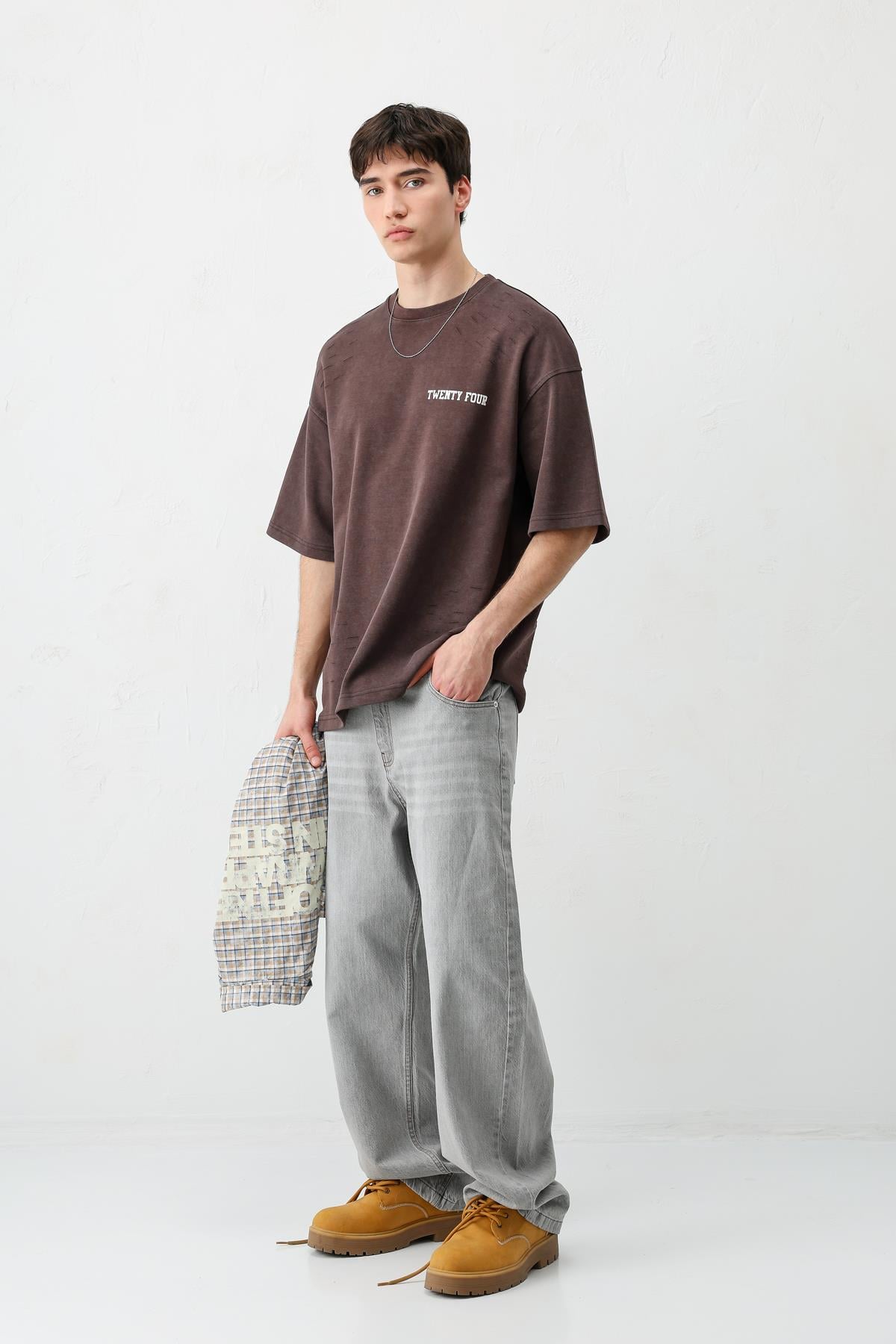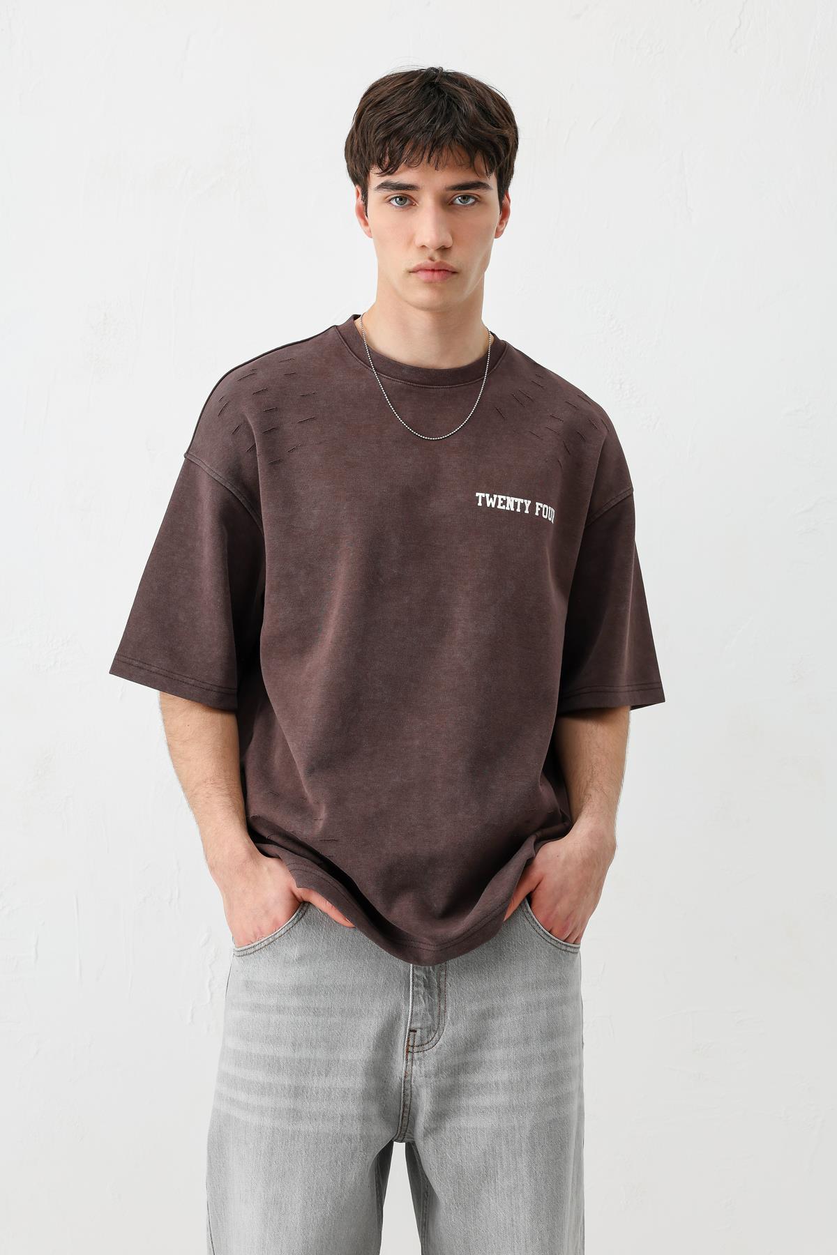 Baskılı Oversize Tişört Kahve (V70-168)