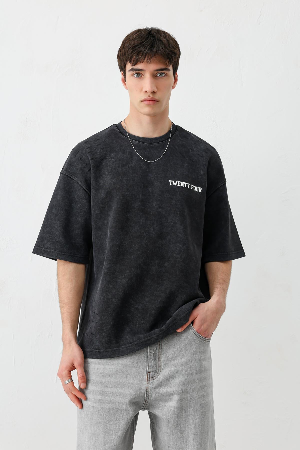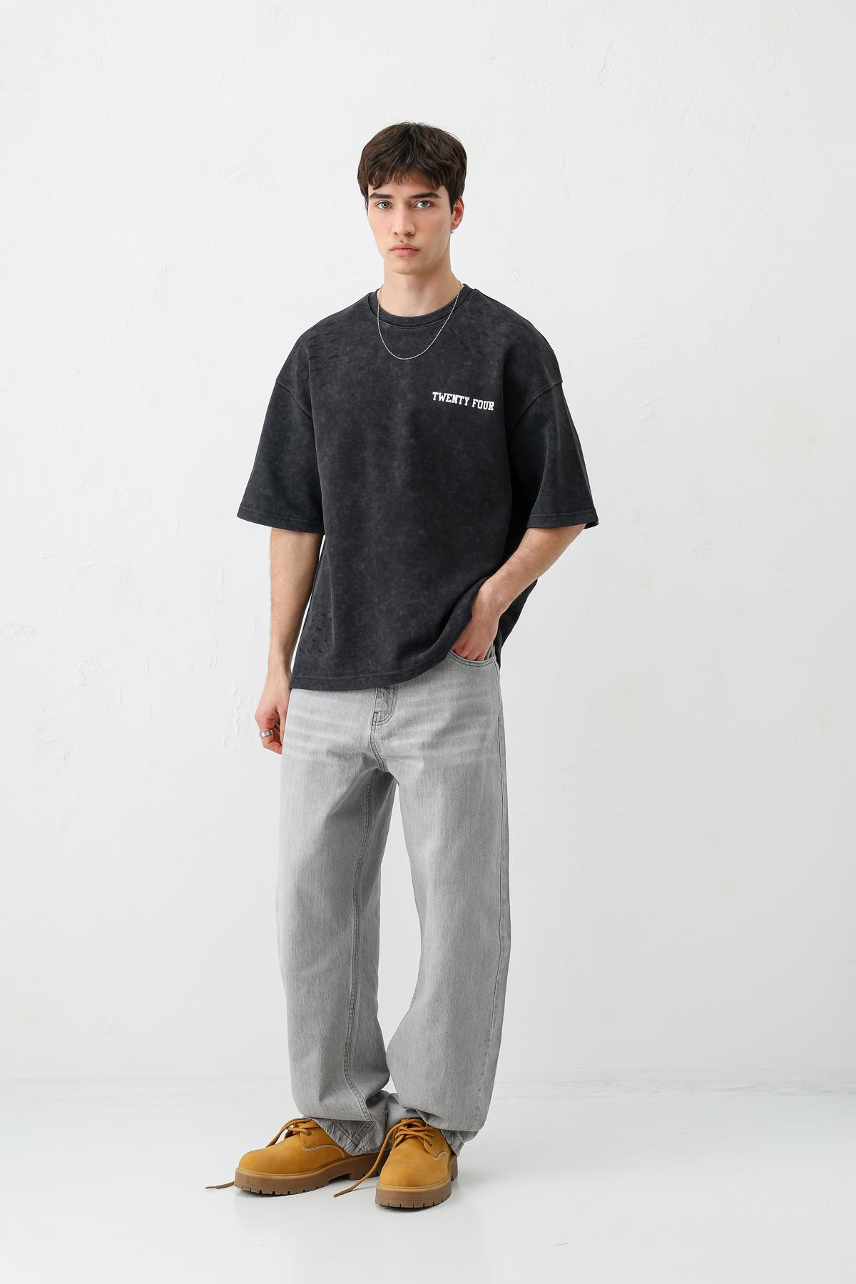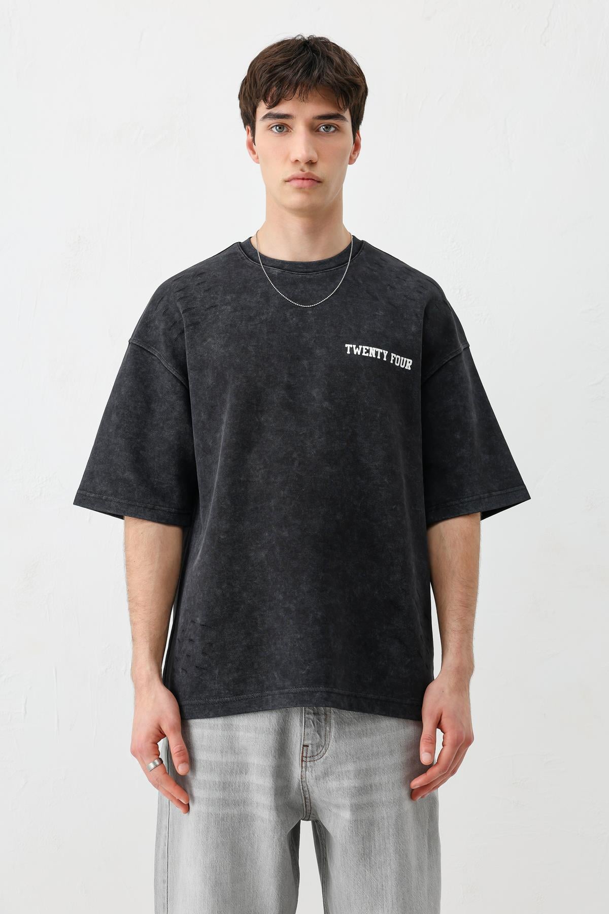 Baskılı Oversize Tişört Siyah (V70-168)
