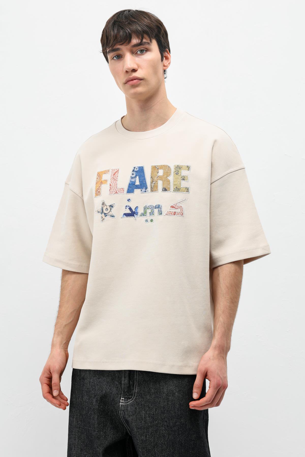 Baskılı Oversize Tişört Taş (V70-173)