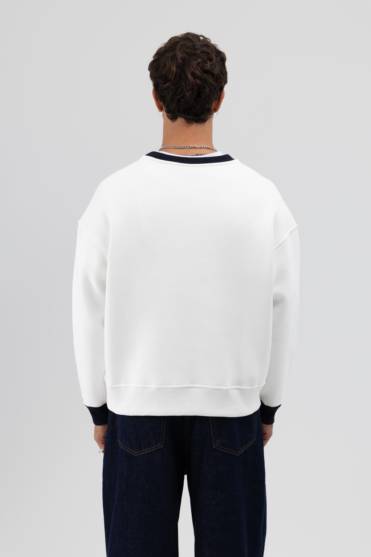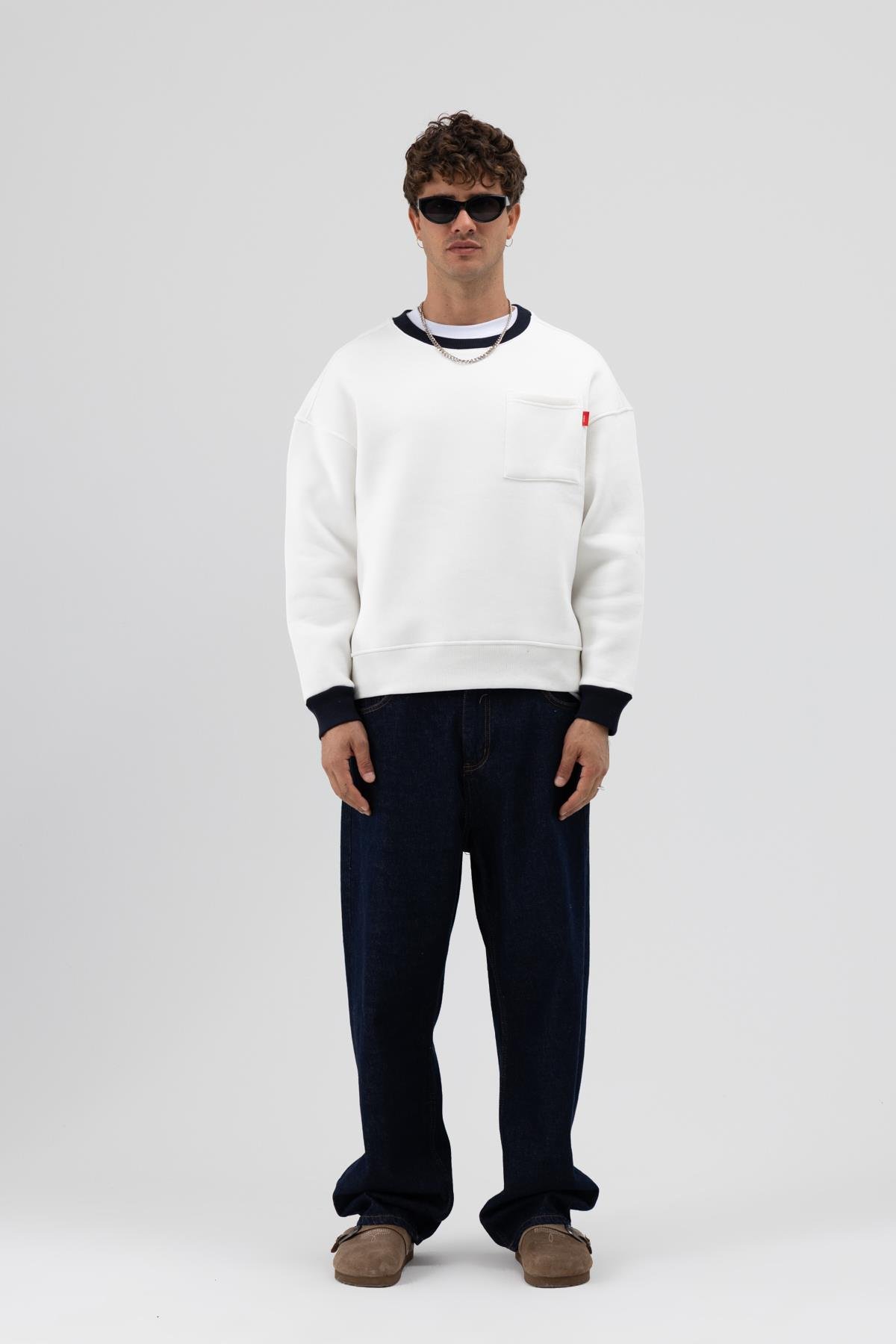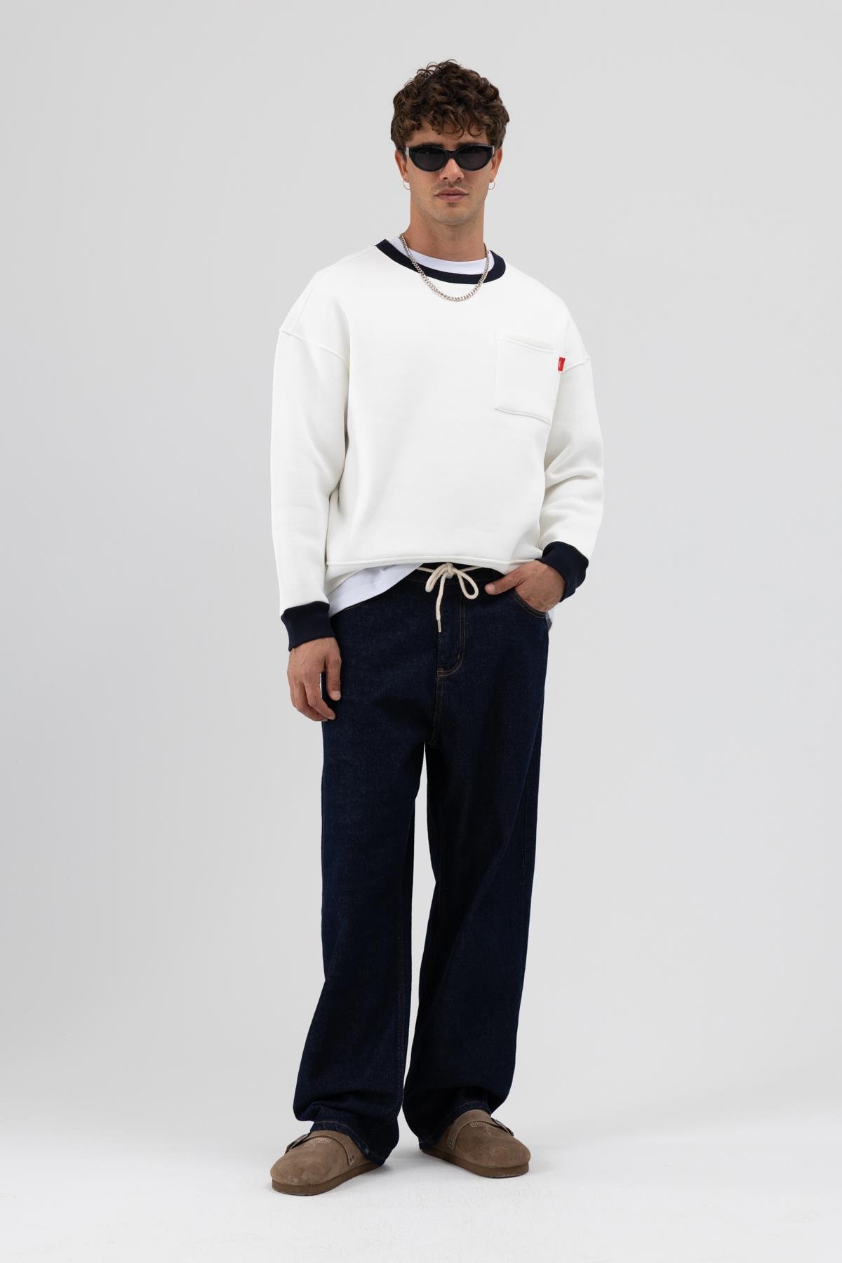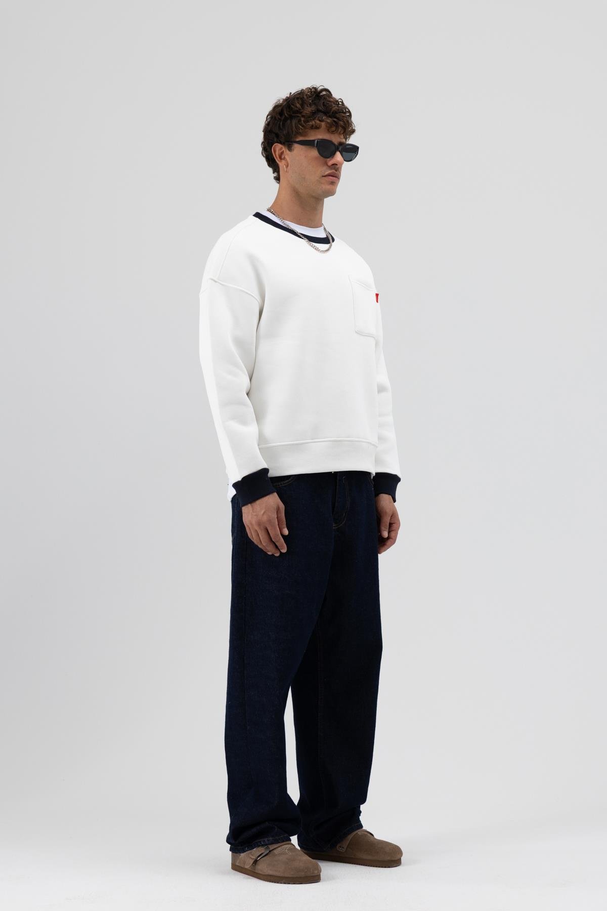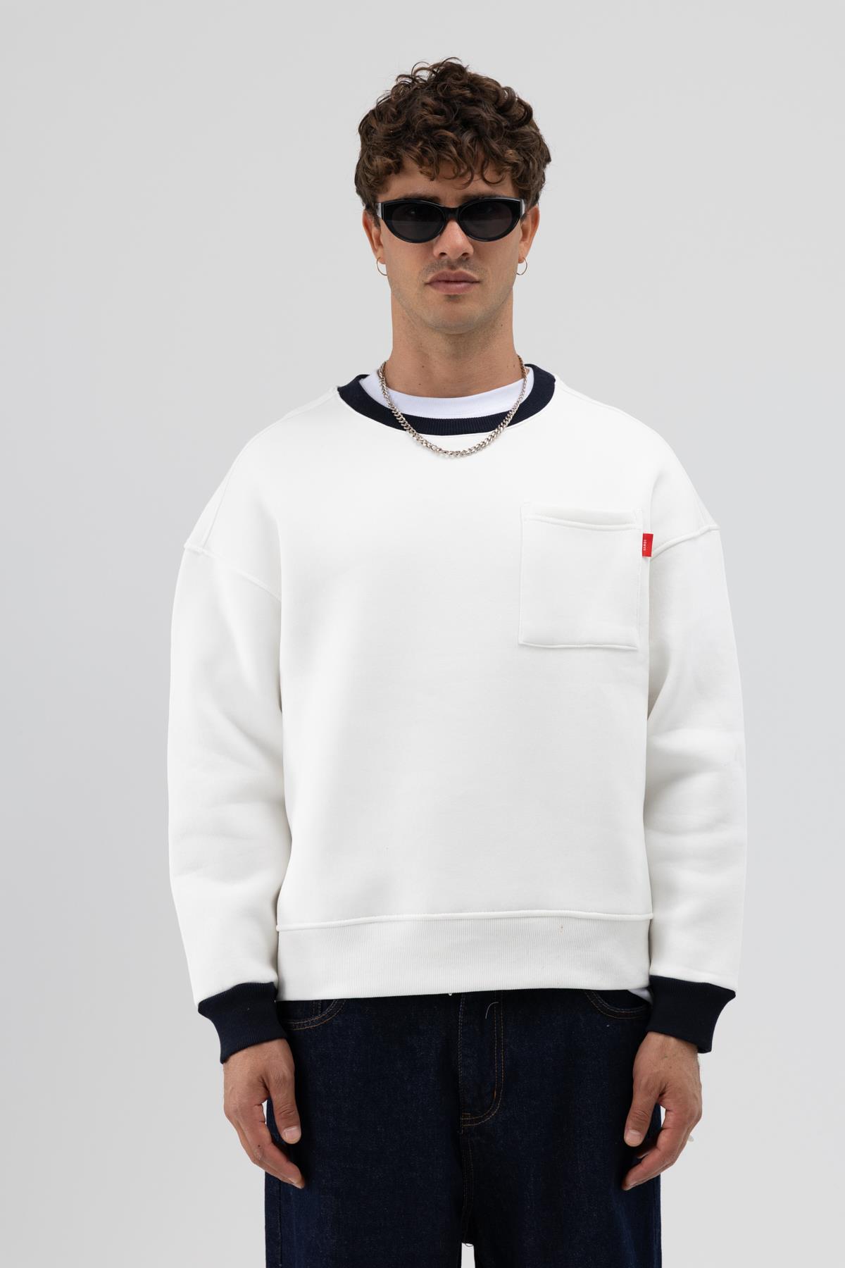 Bisiklet Yaka Cep Detaylı Oversize Sweatshirt Ekru (V70-104)