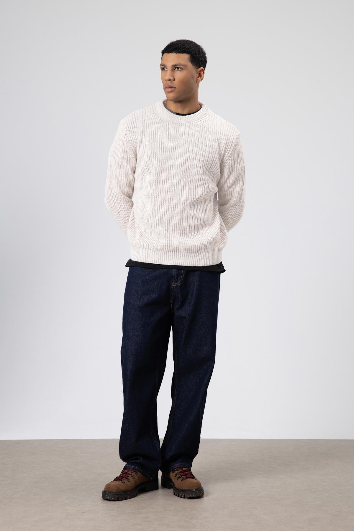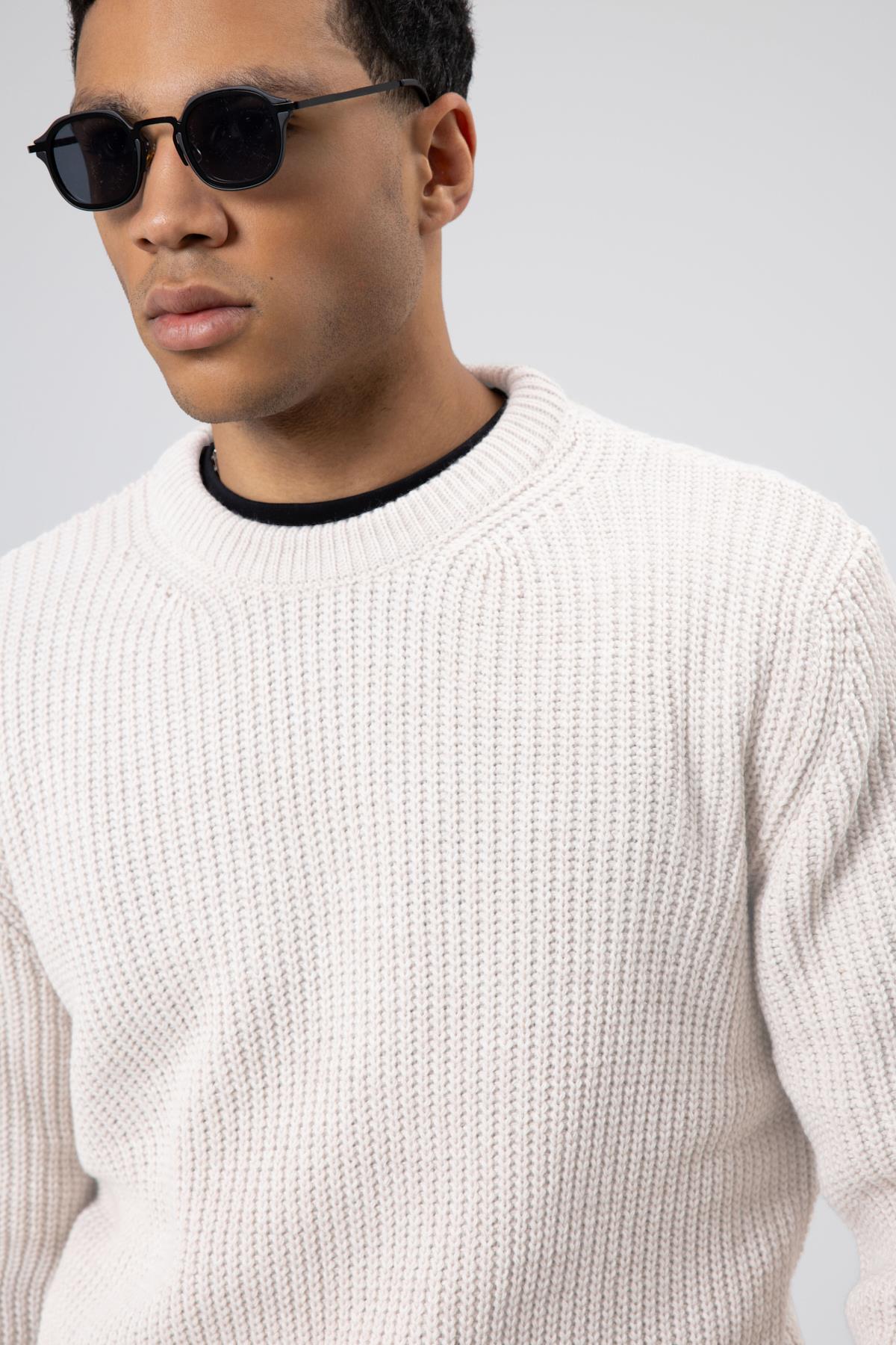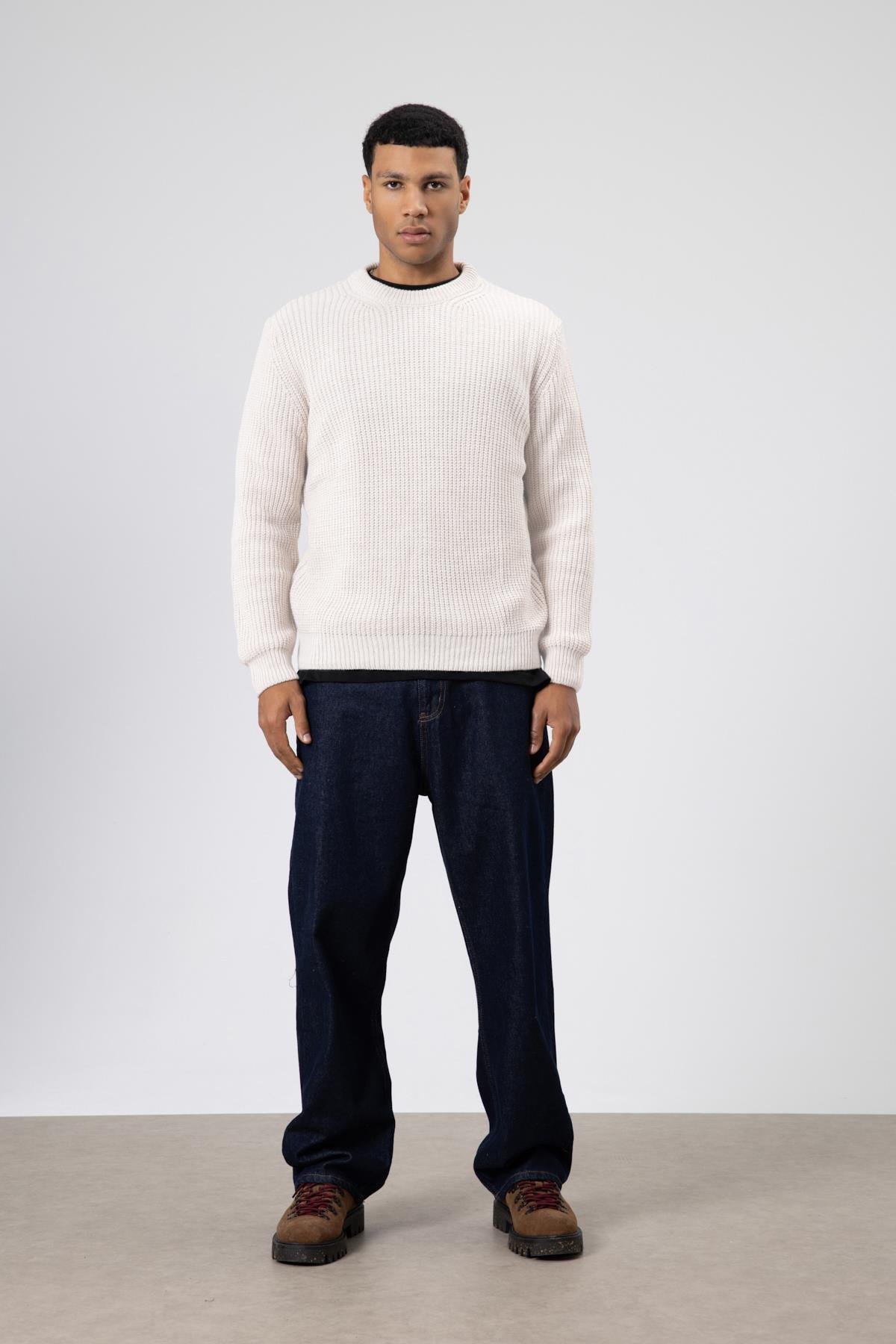 Bisiklet Yaka Oversize Triko Kazak Ekru (V60-10)