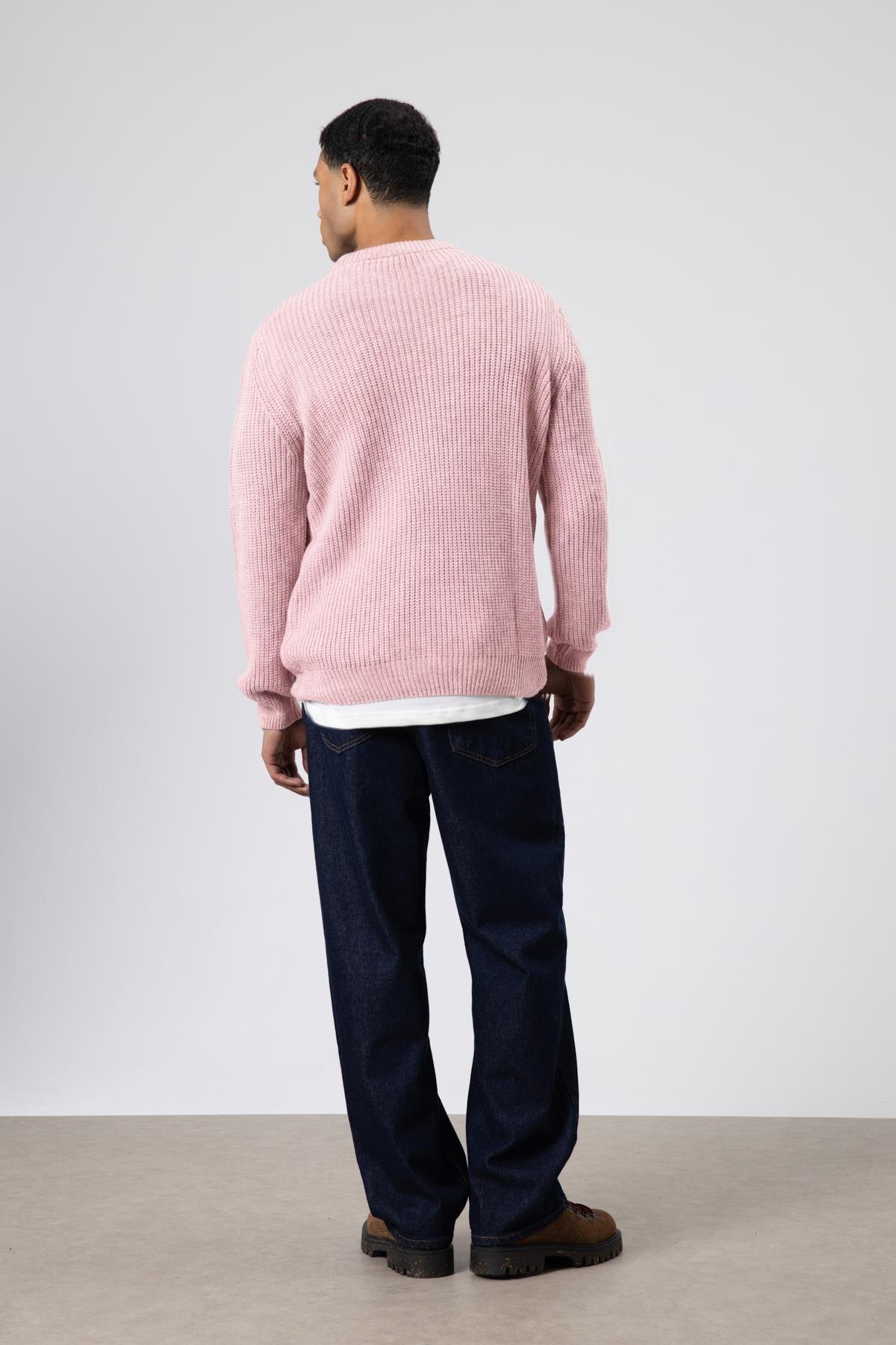 Bisiklet Yaka Oversize Triko Kazak Pembe (V60-10)