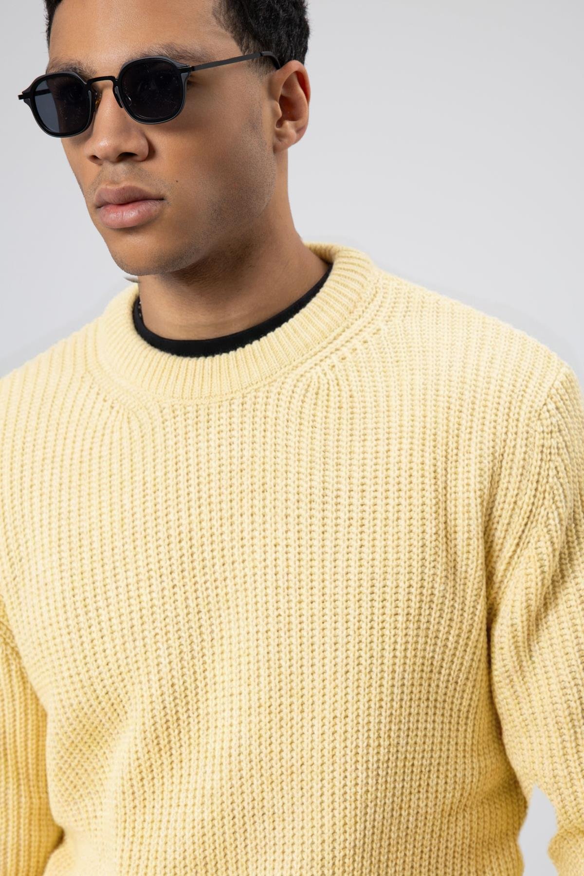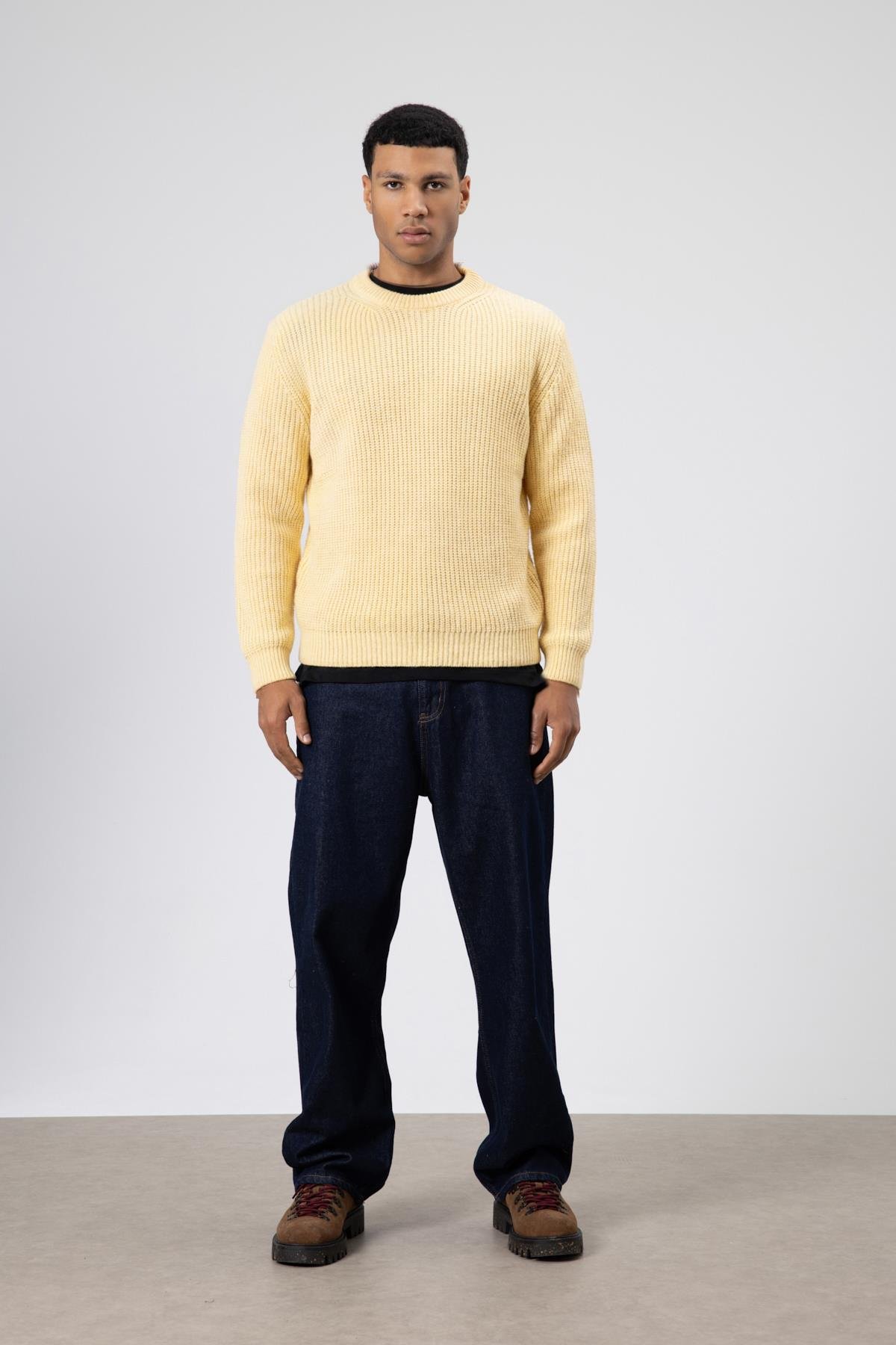 Bisiklet Yaka Oversize Triko Kazak Sarı (V60-10)