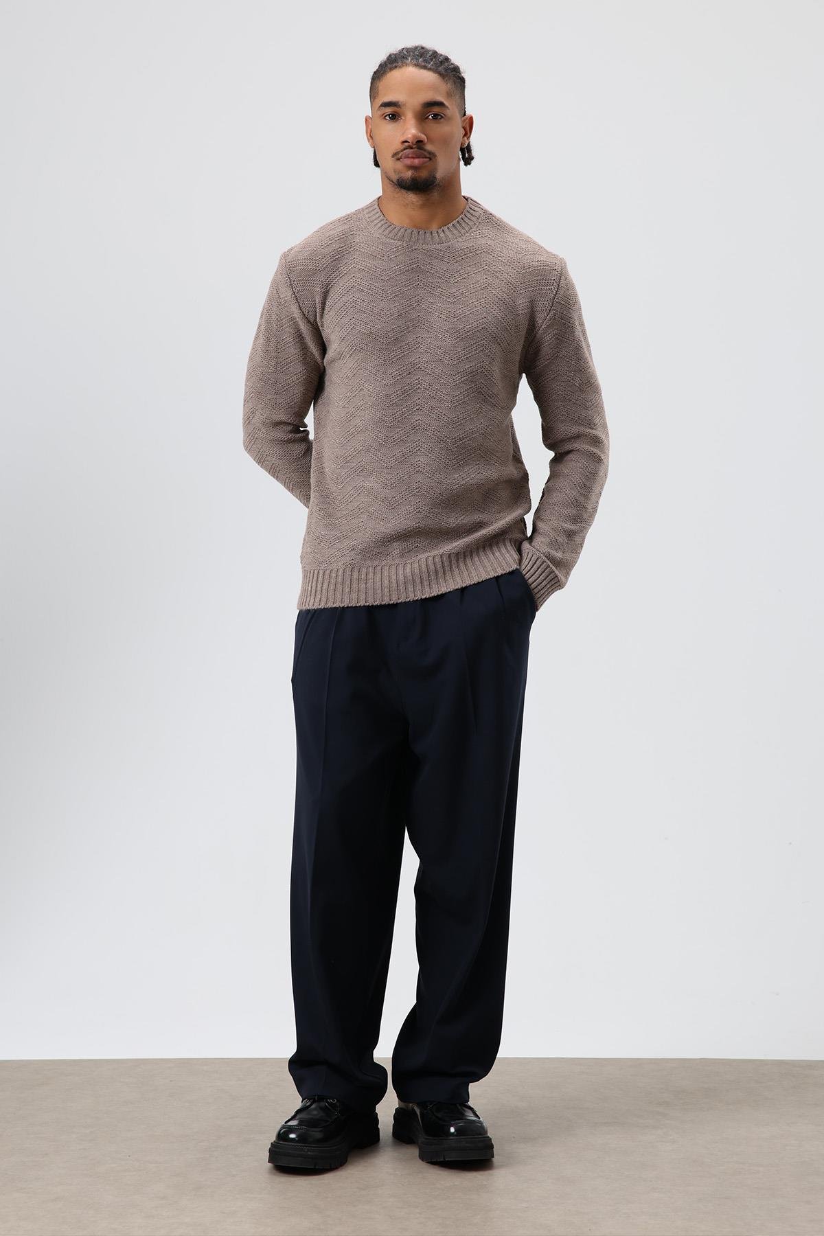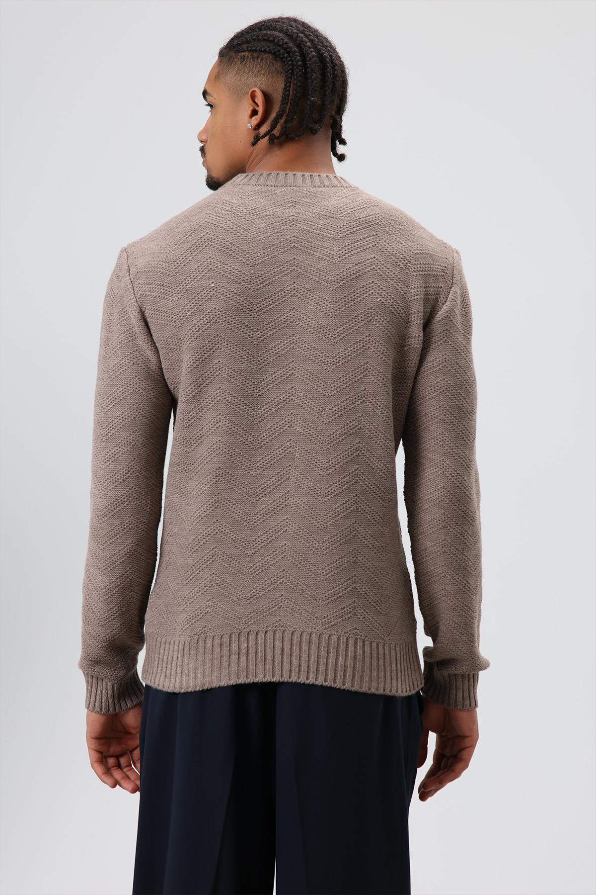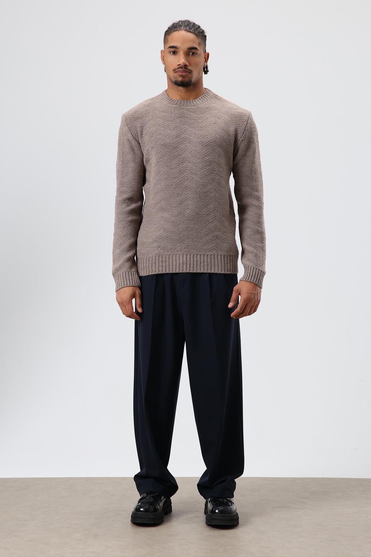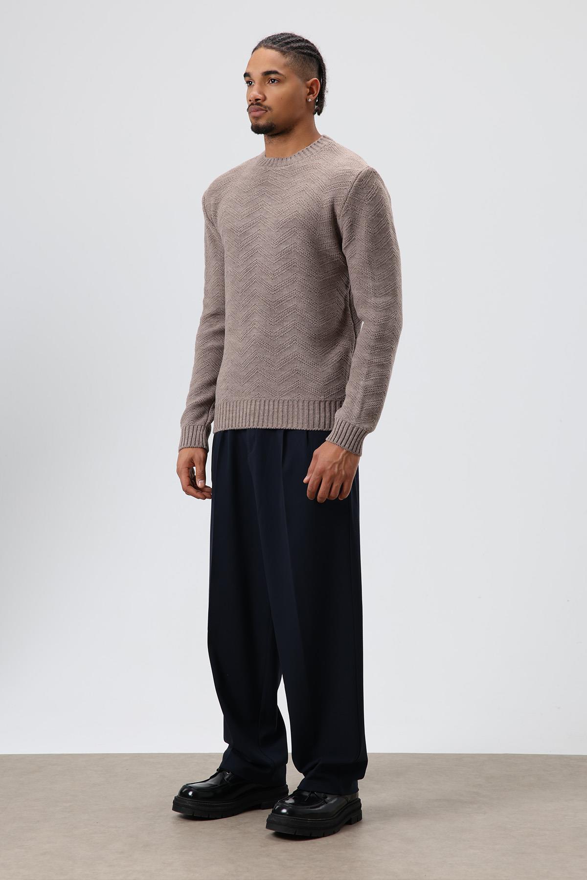 Bisiklet Yaka Oversize Triko Kazak Vizon (V60-22)
