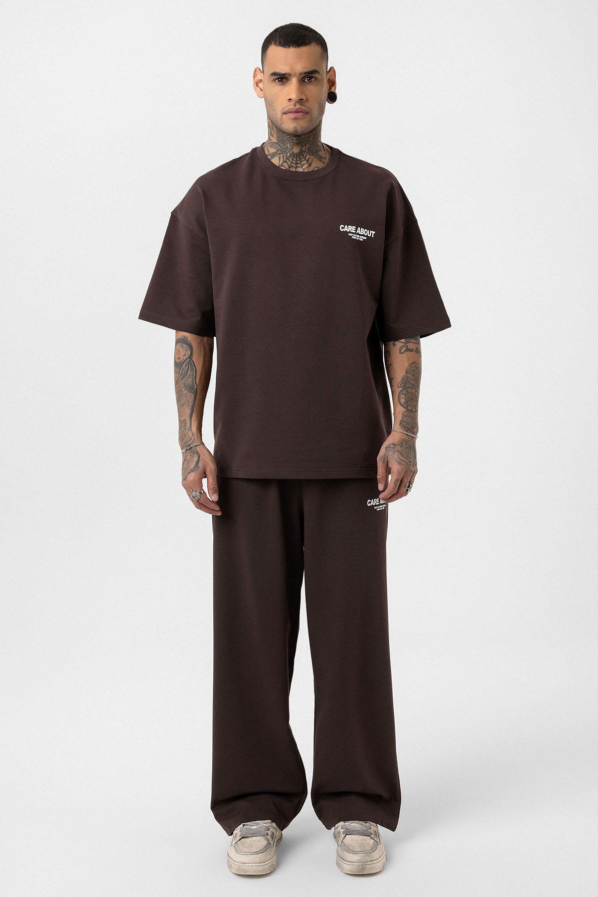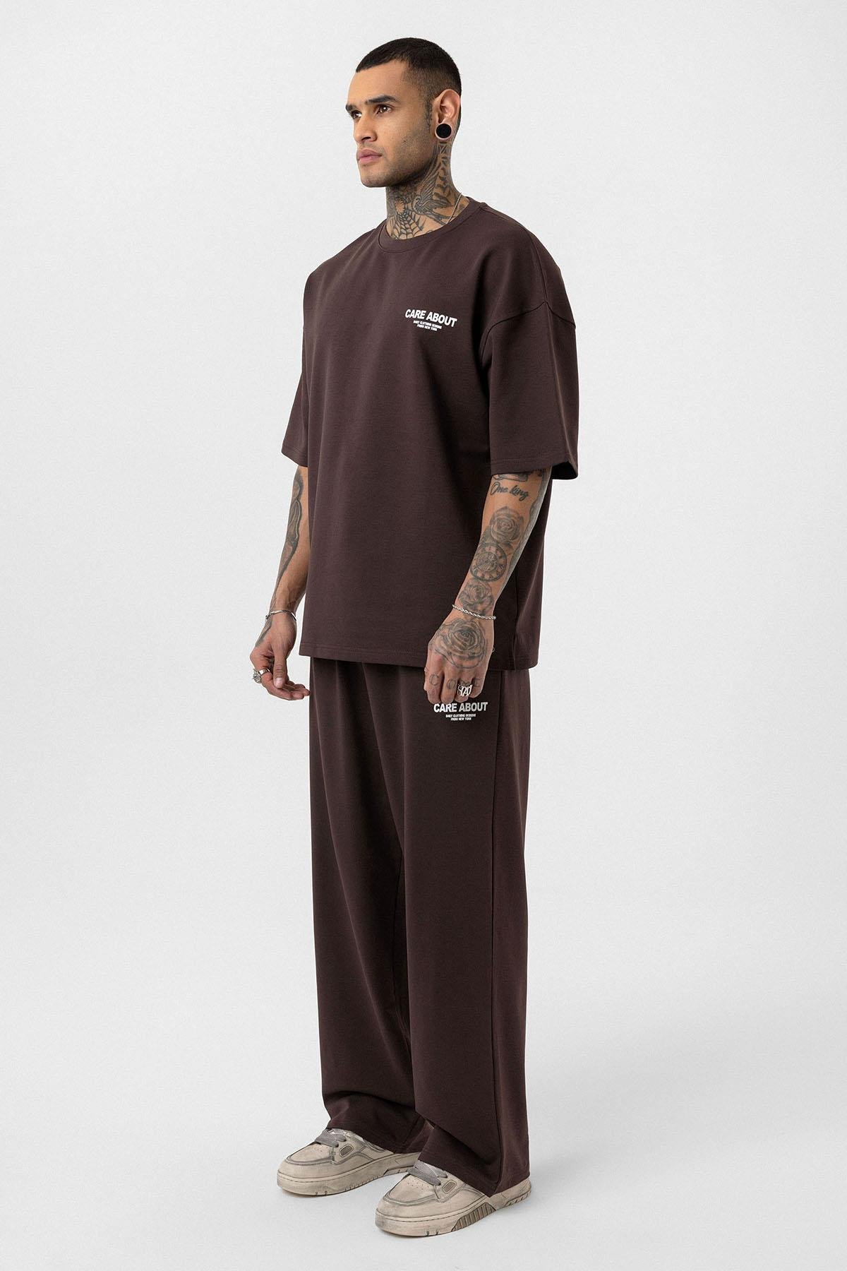 Care About Baskılı Oversize Eşofman Takım-Siyah Kahve (40-573)