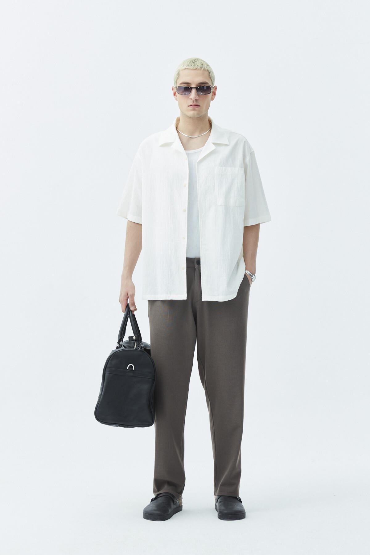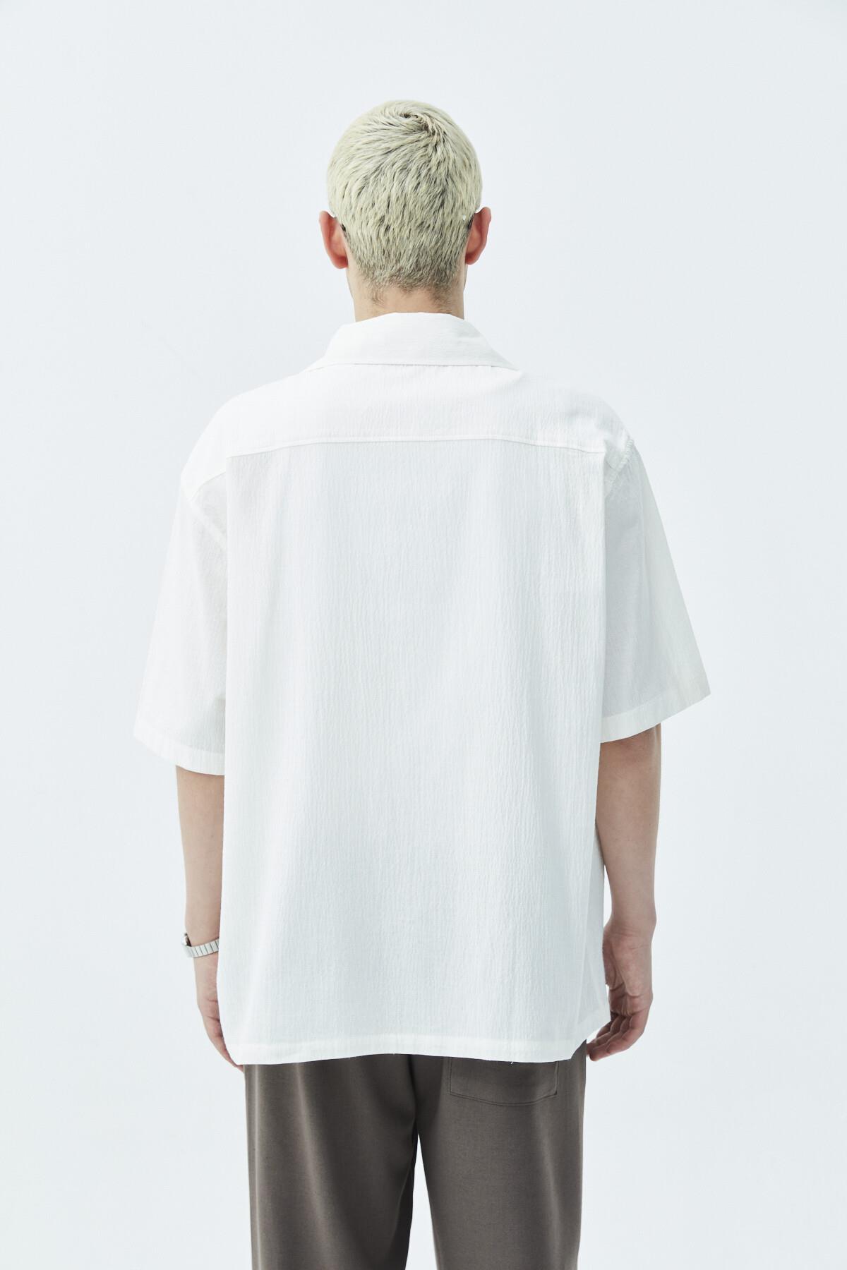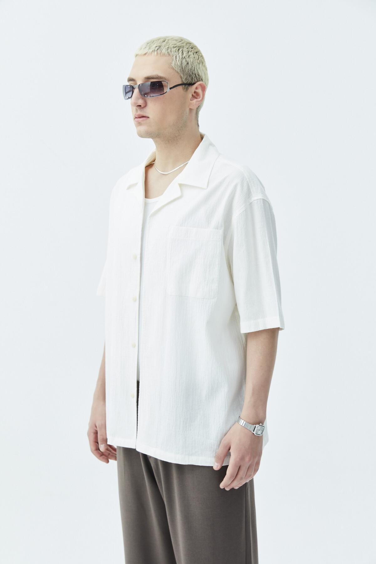 Cep Detaylı Kısa Kol Oversize Keten Gömlek Ekru (40-651)