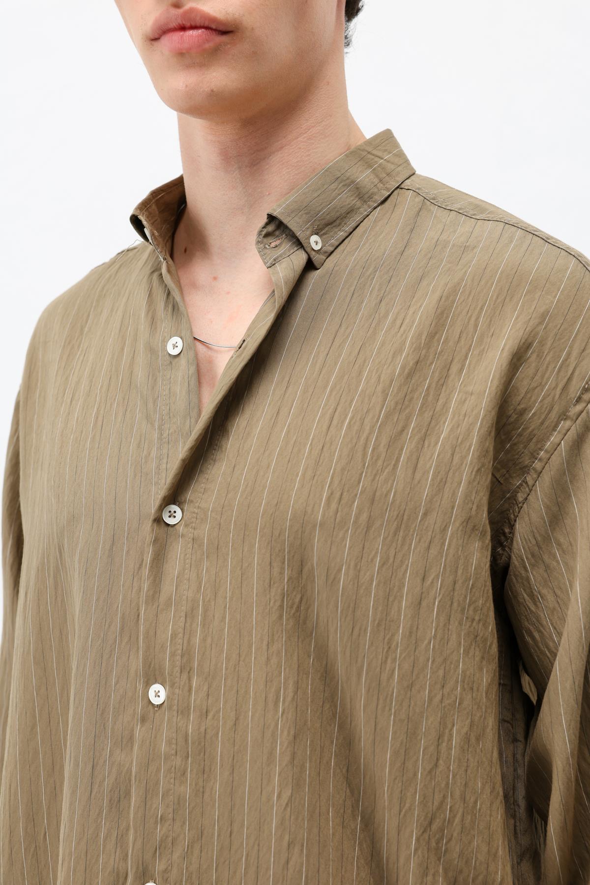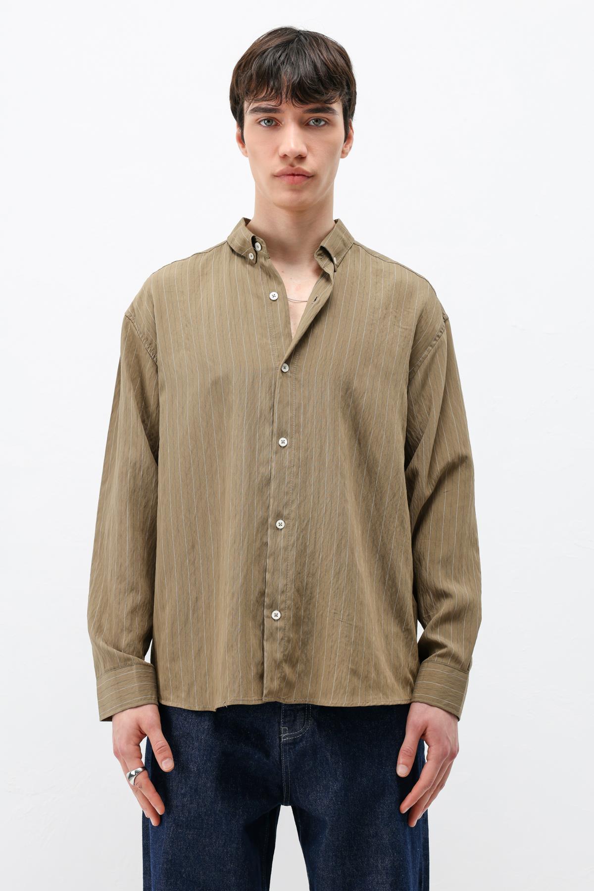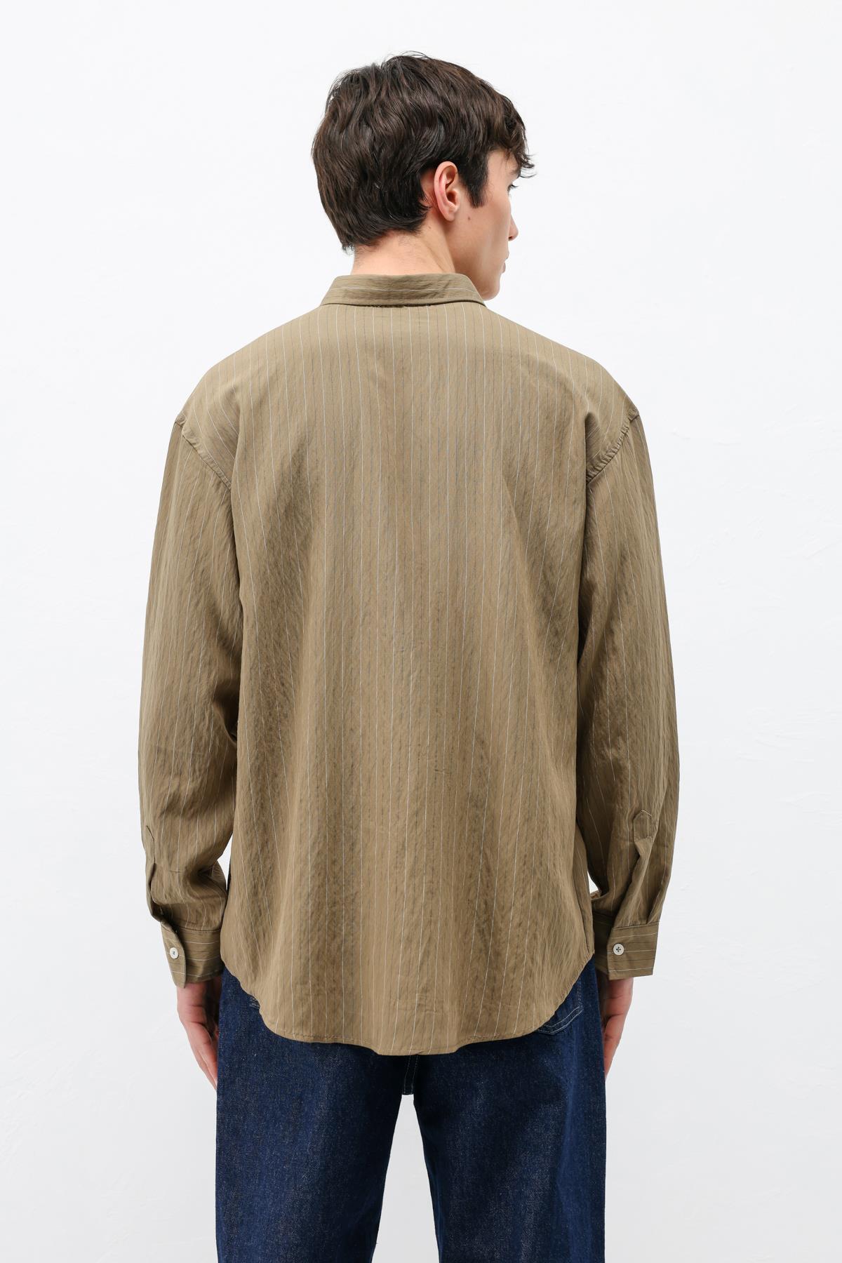 Çizgili Müslin Kumaş Oversize Gömlek Haki (V40-105)