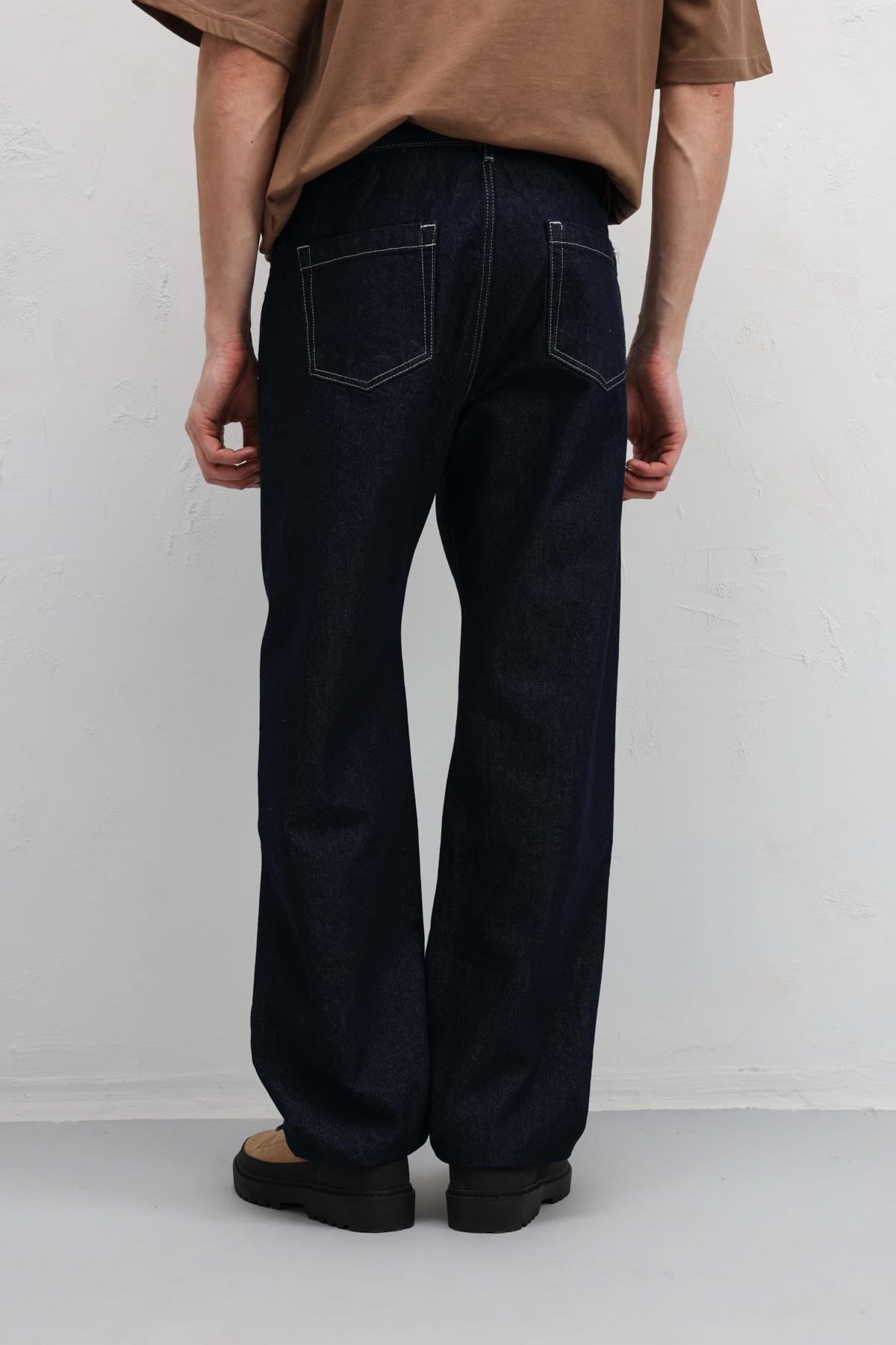 Dikiş Detaylı Relaxed Fit Jean Koyu Mavi (V100-07)