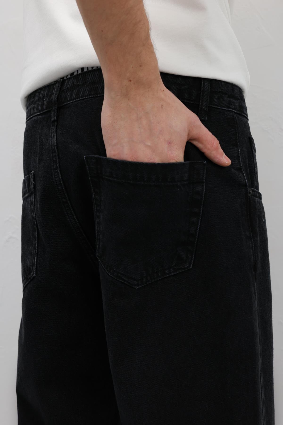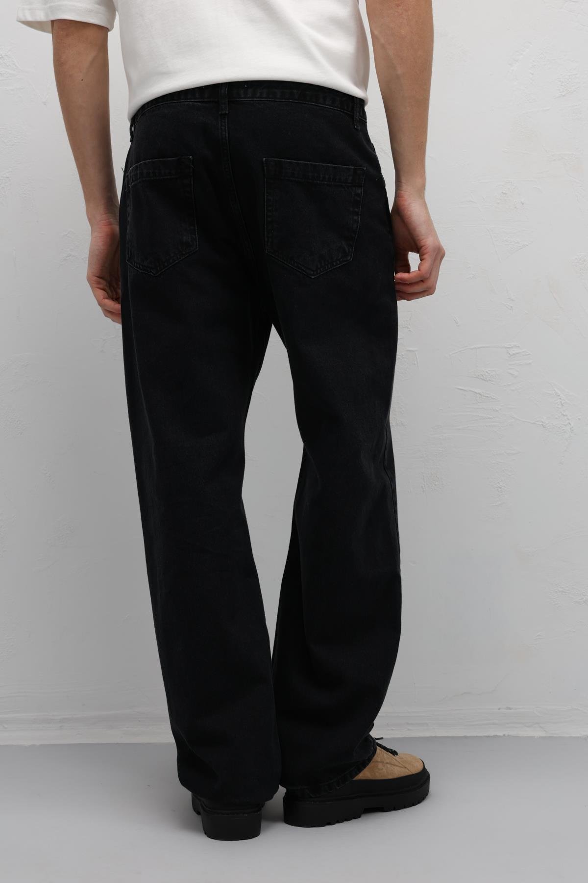 Dikiş Detaylı Relaxed Fit Jean Siyah (V100-07)