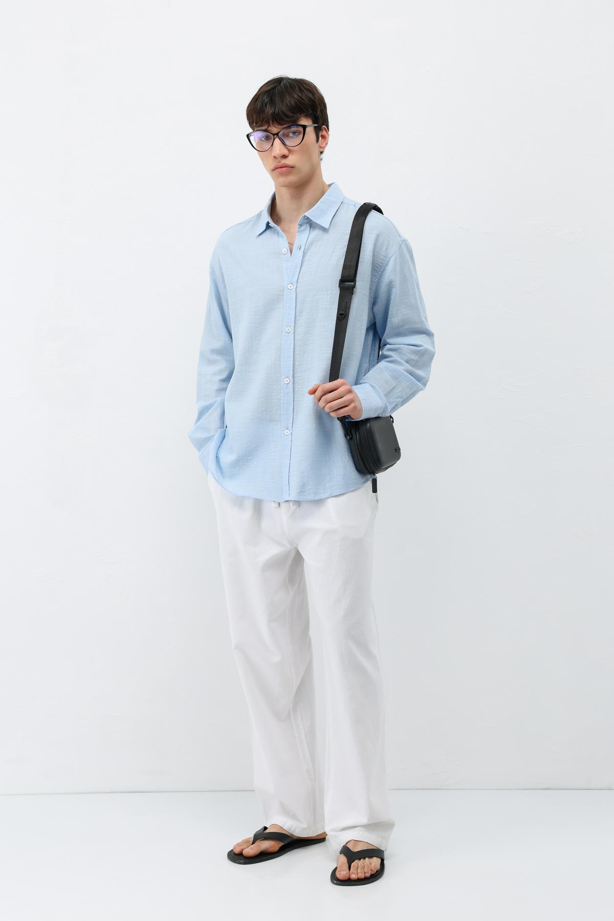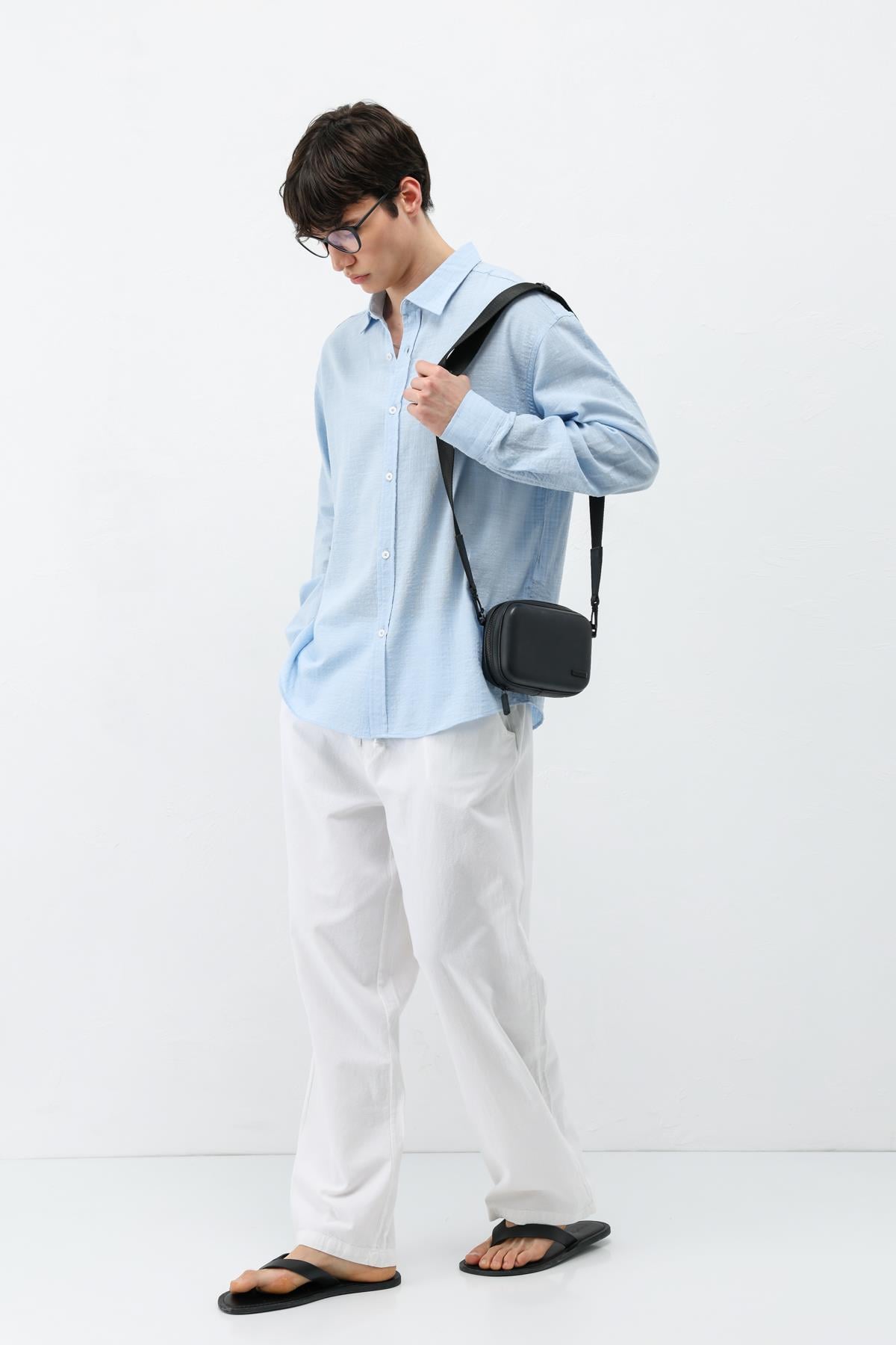 Dokulu Keten Görünümlü Oversize Gömlek Mavi (V40-85)