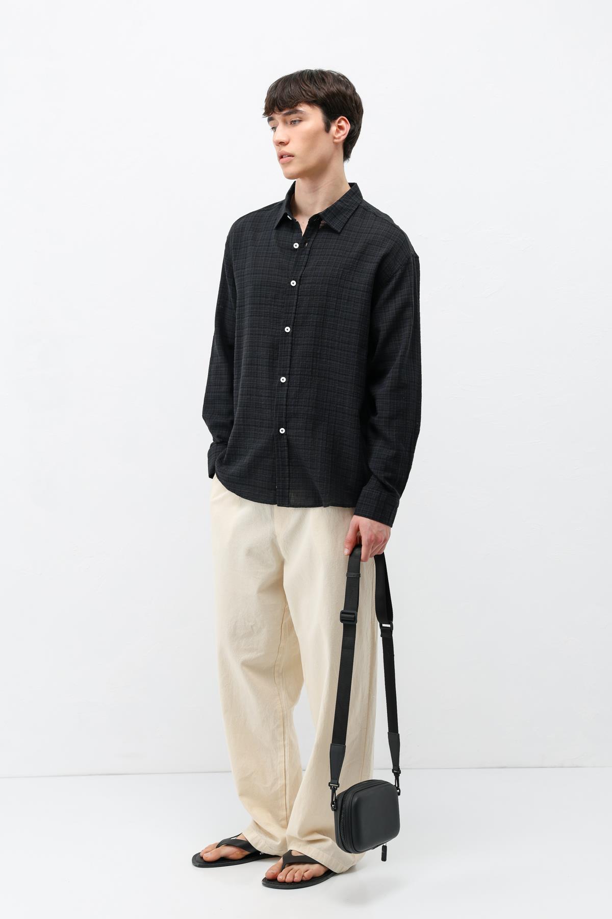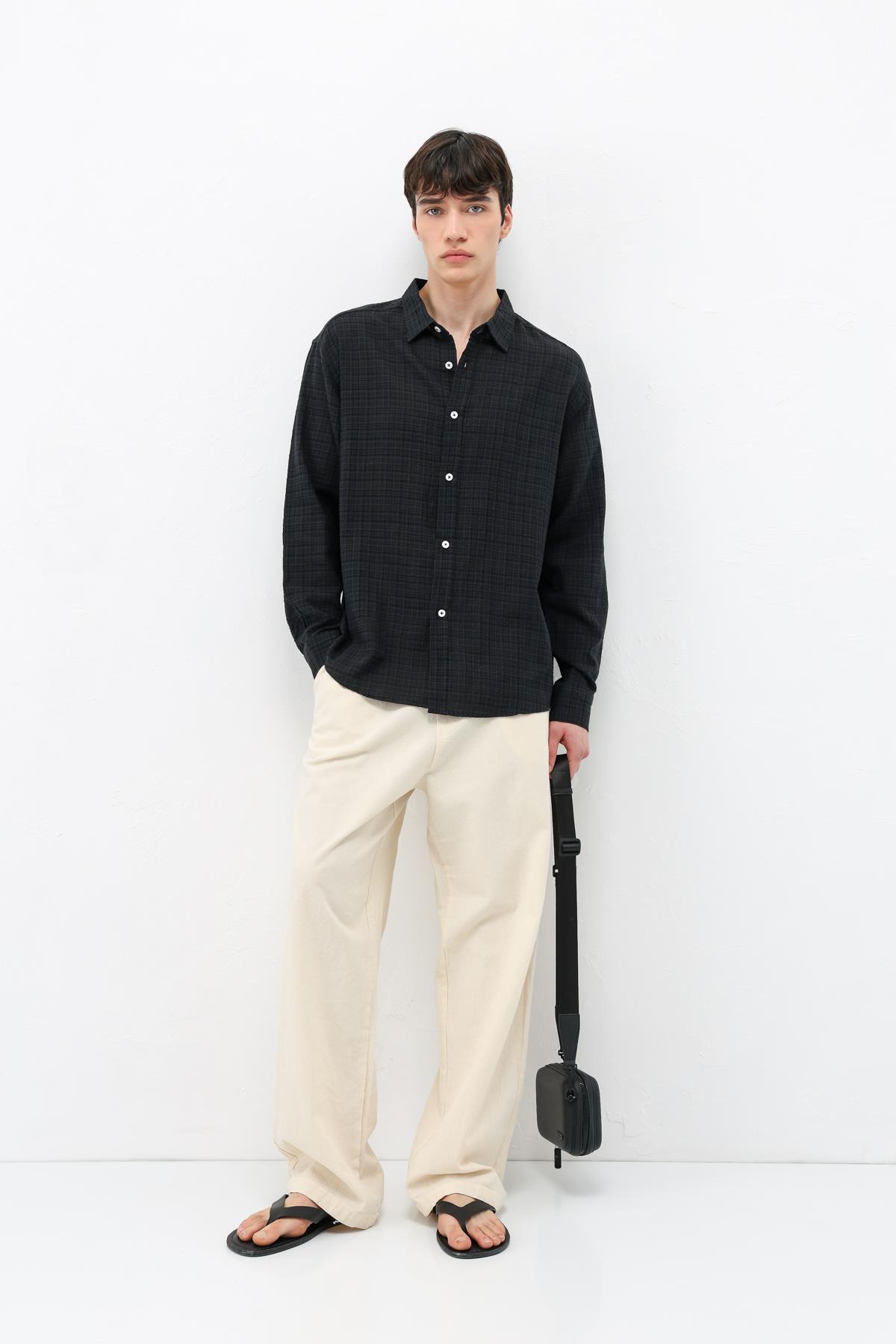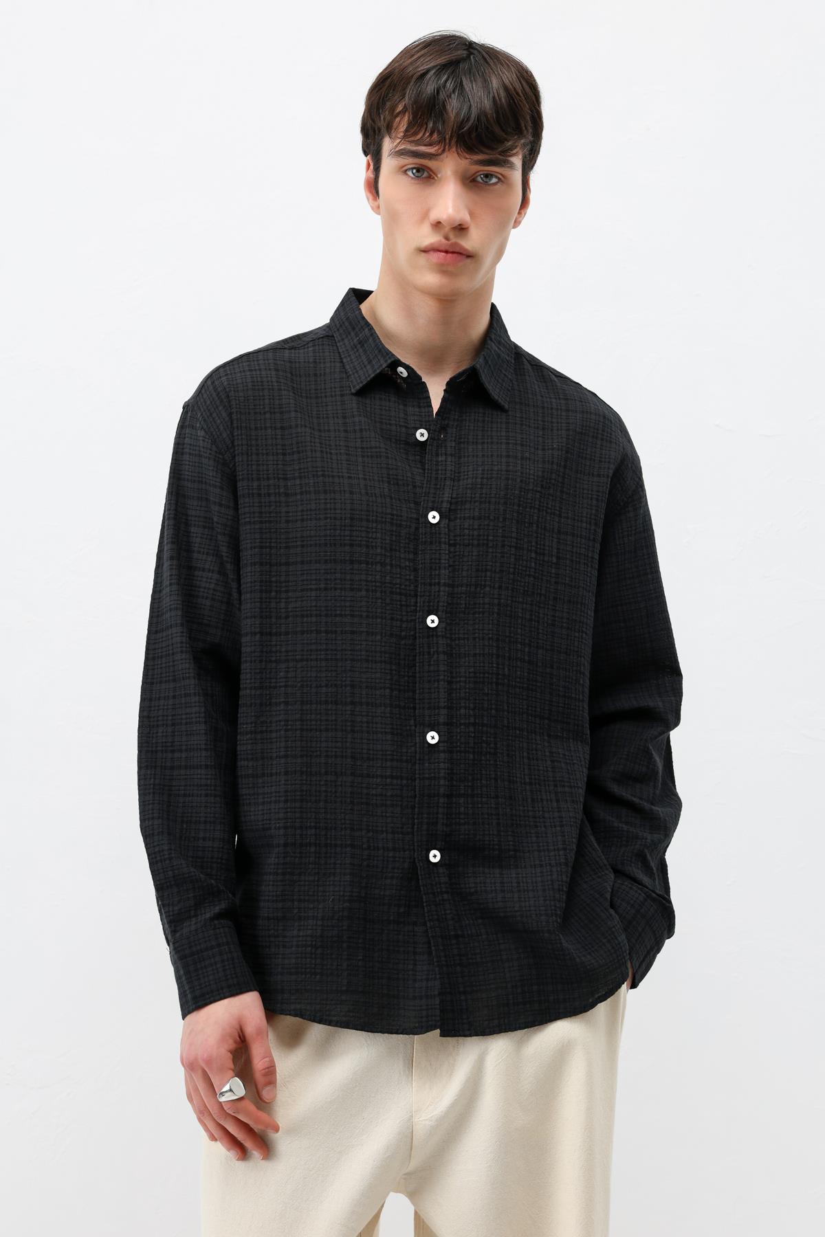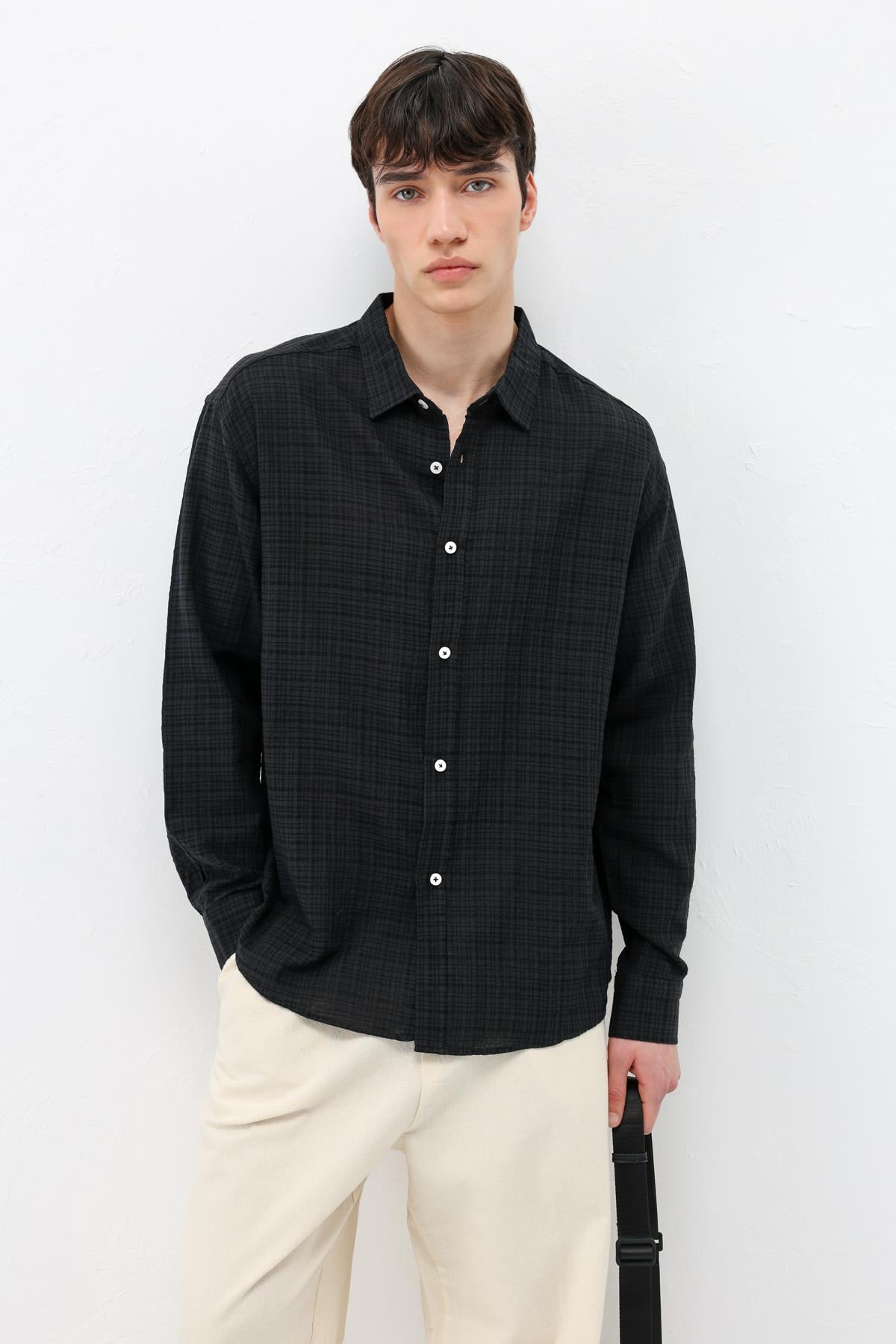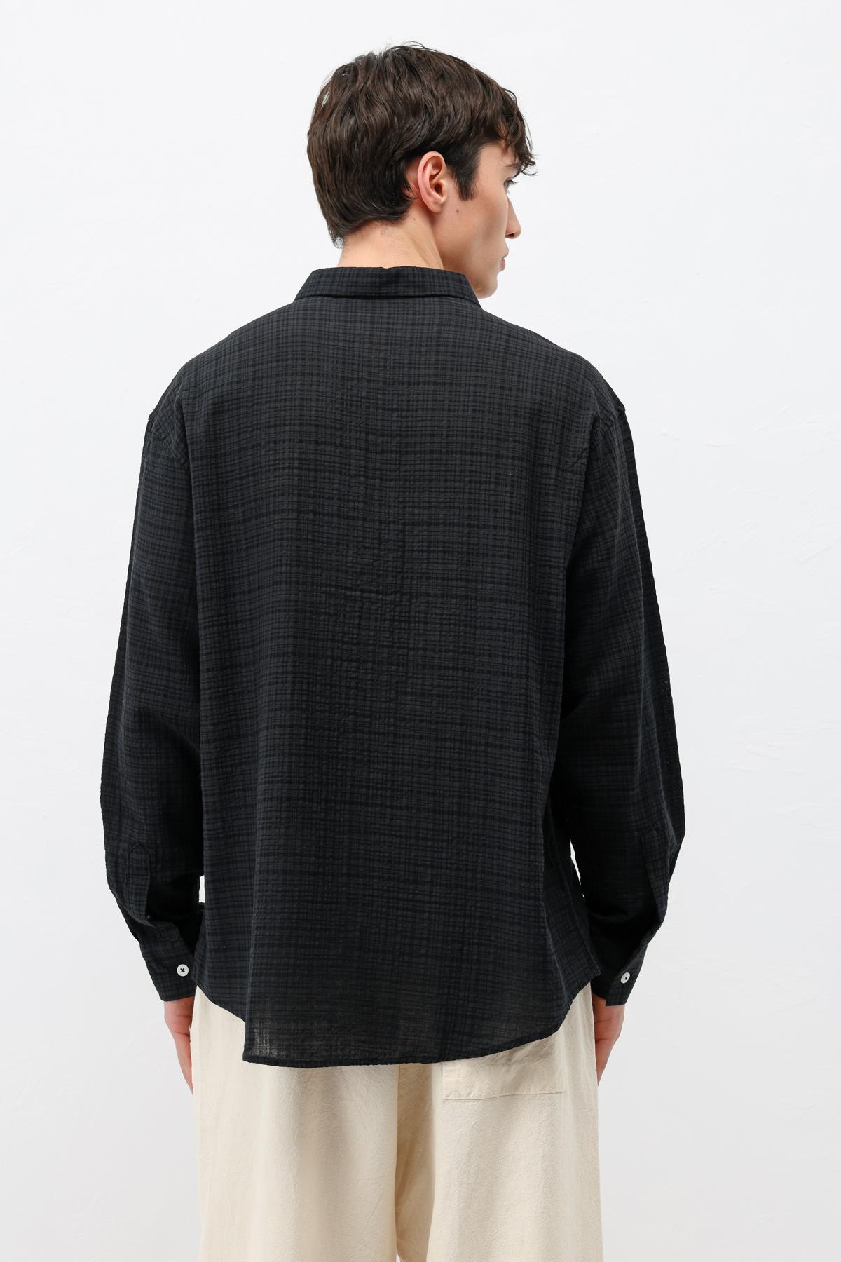 Dokulu Keten Görünümlü Oversize Gömlek Siyah (V40-85)