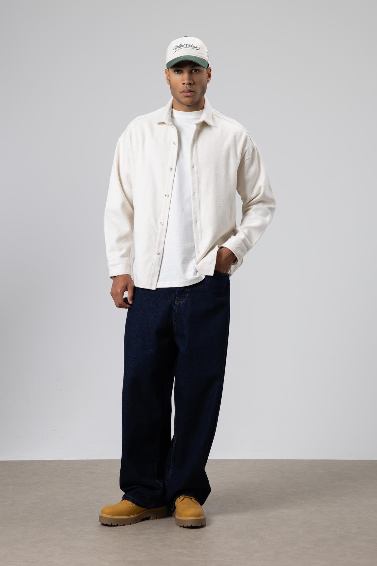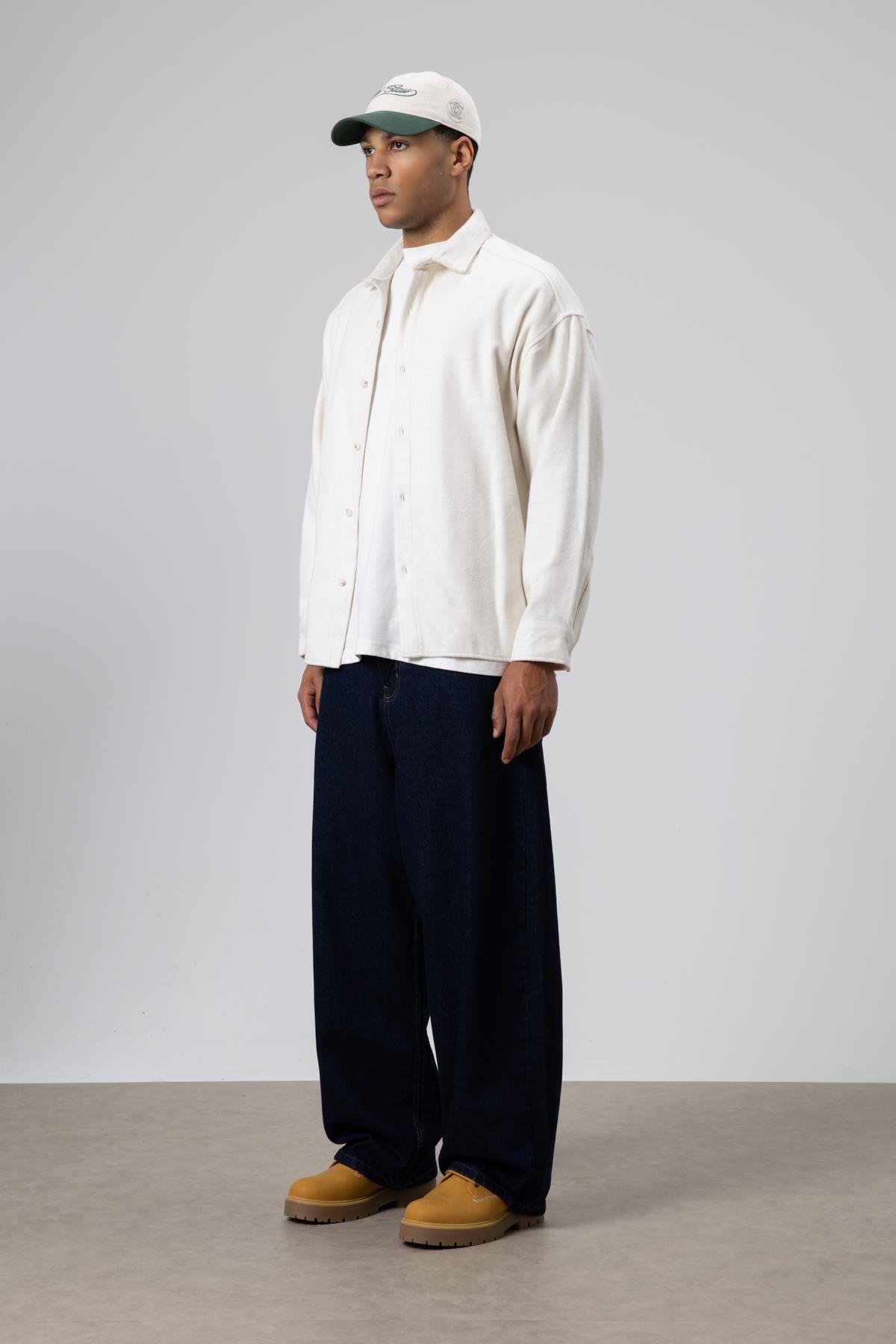 Dokulu Oversize Gömlek Ceket Ekru (V40-77)