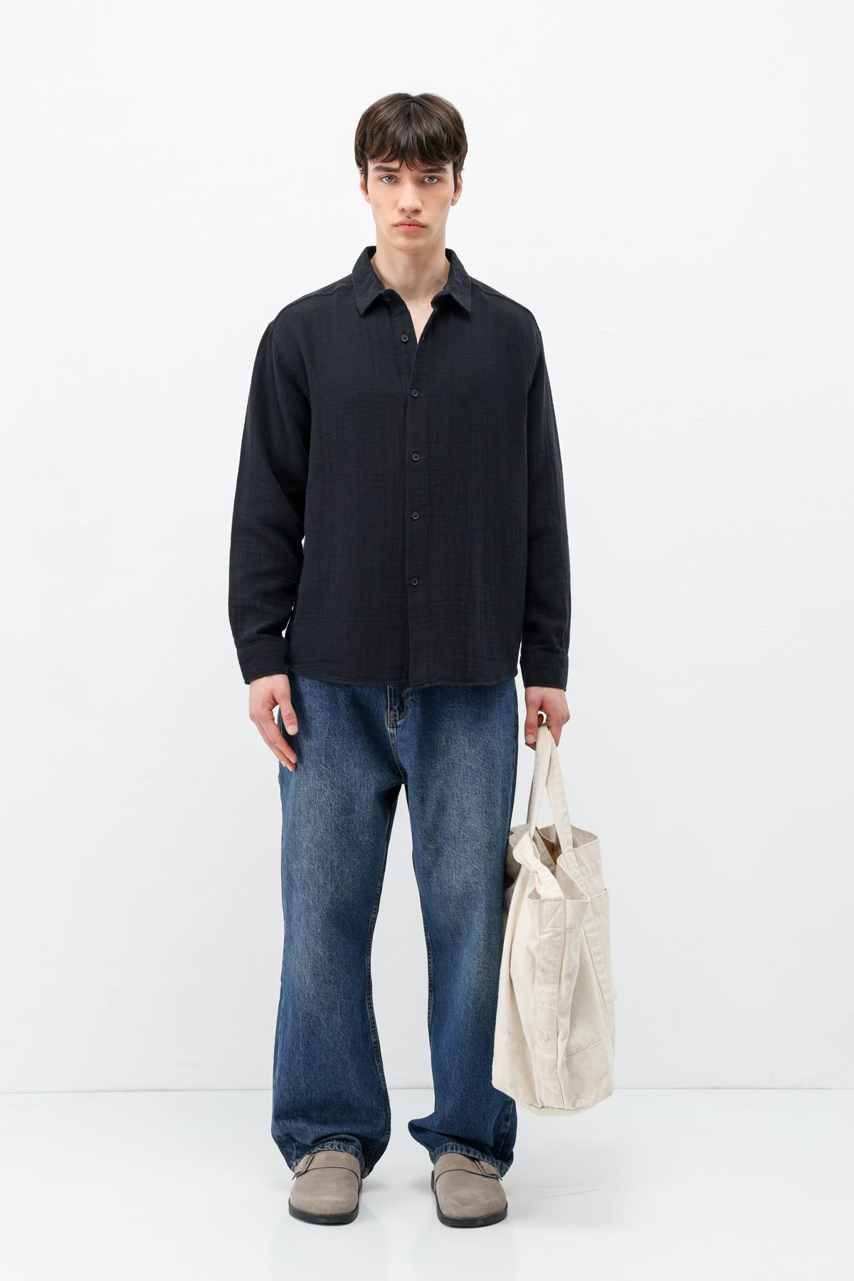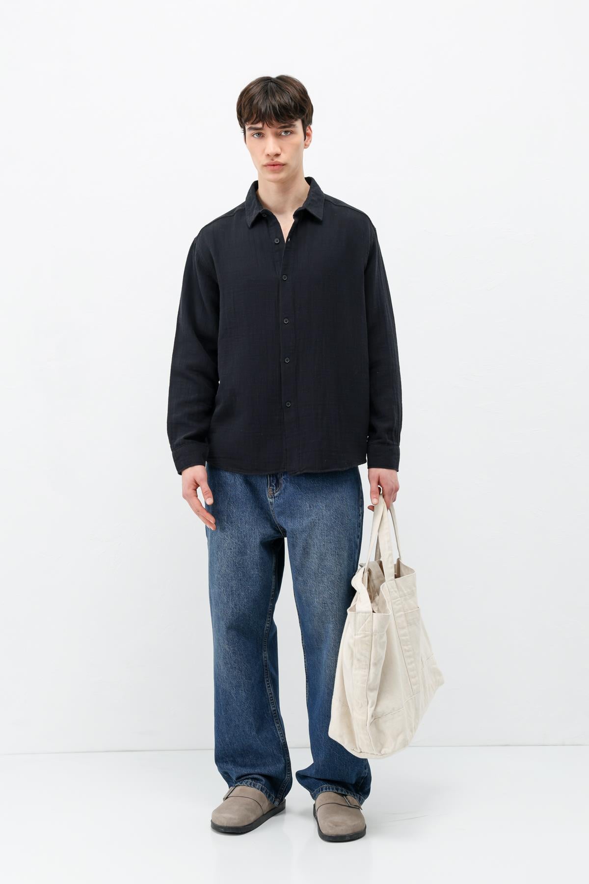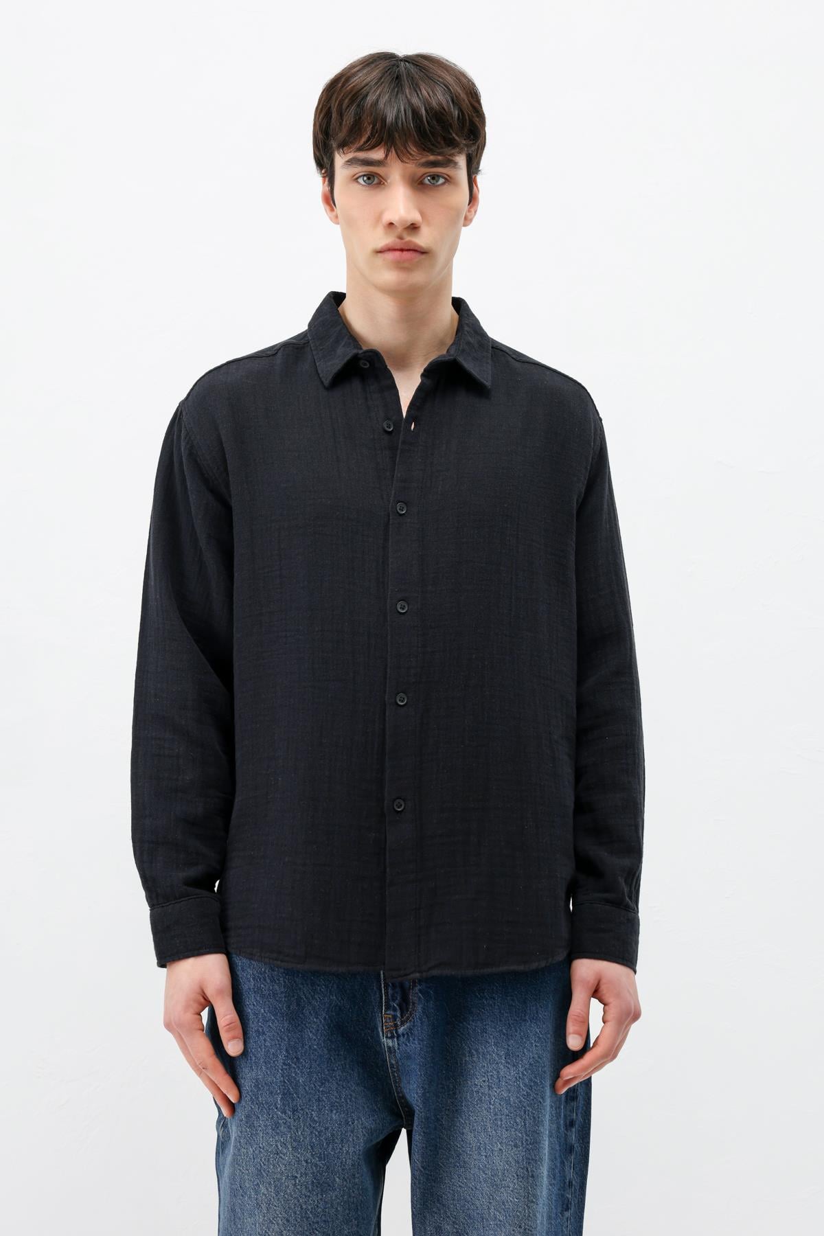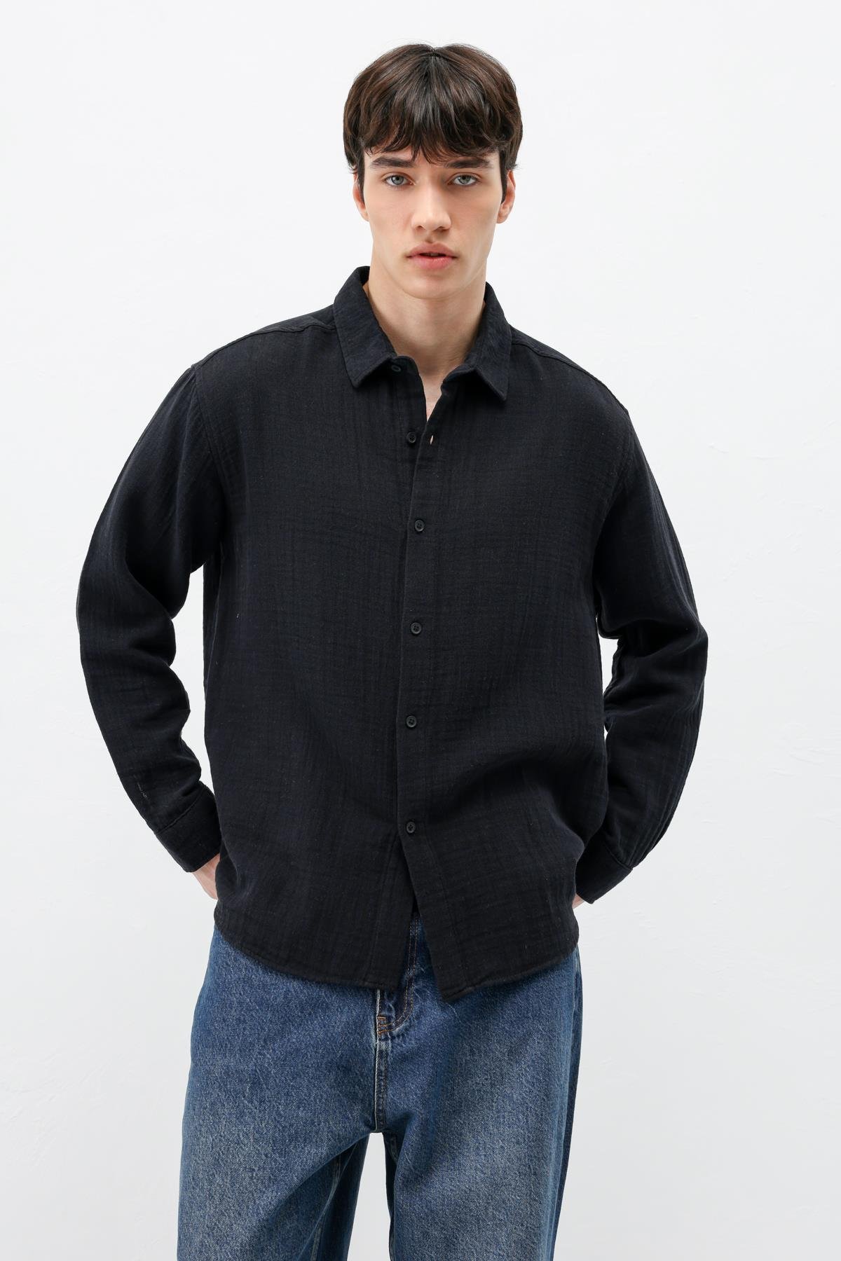 Müslin Kumaş Oversize Gömlek Siyah (V40-93)