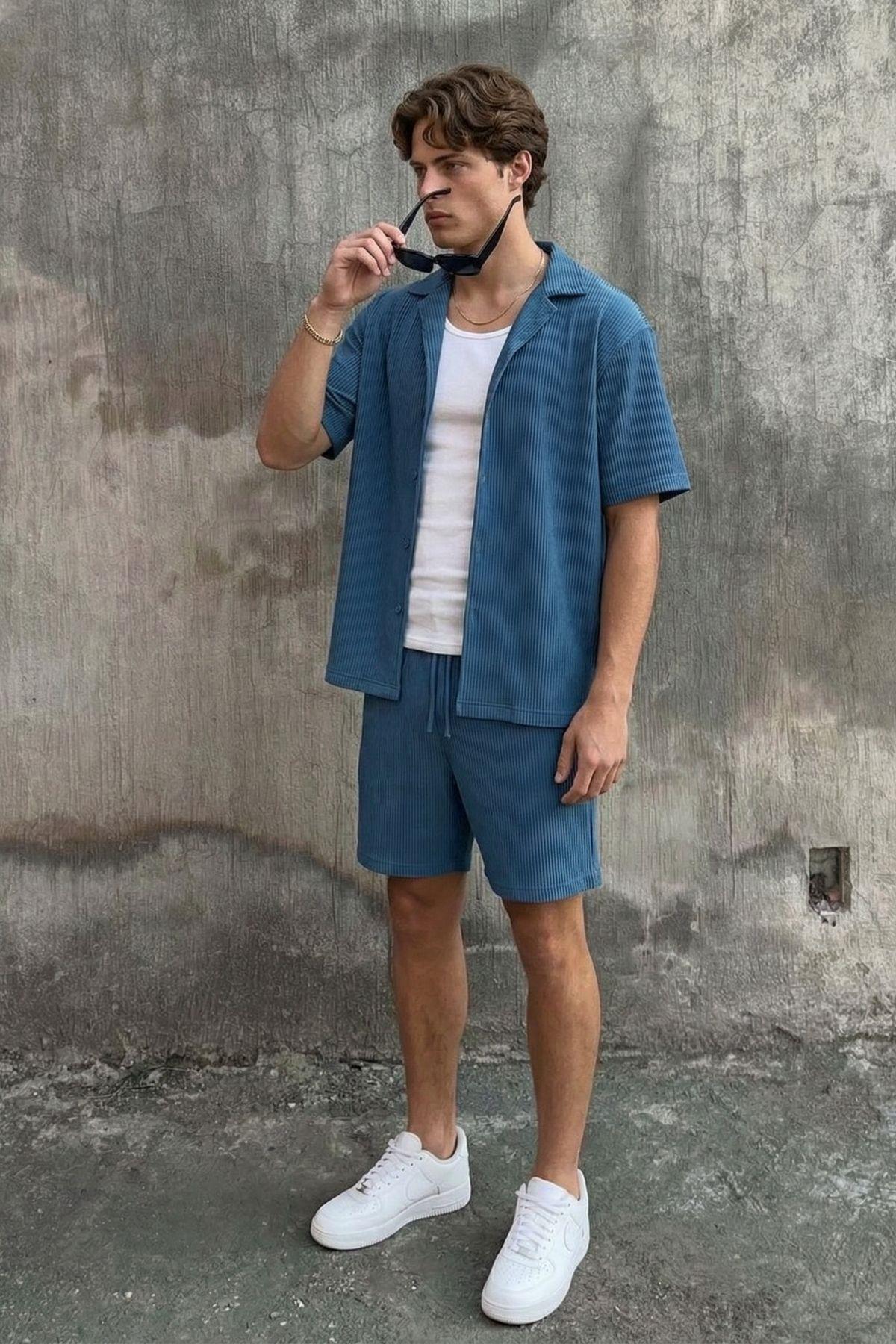 Fitilli Oversize Gömlek İndigo (VS12-042)