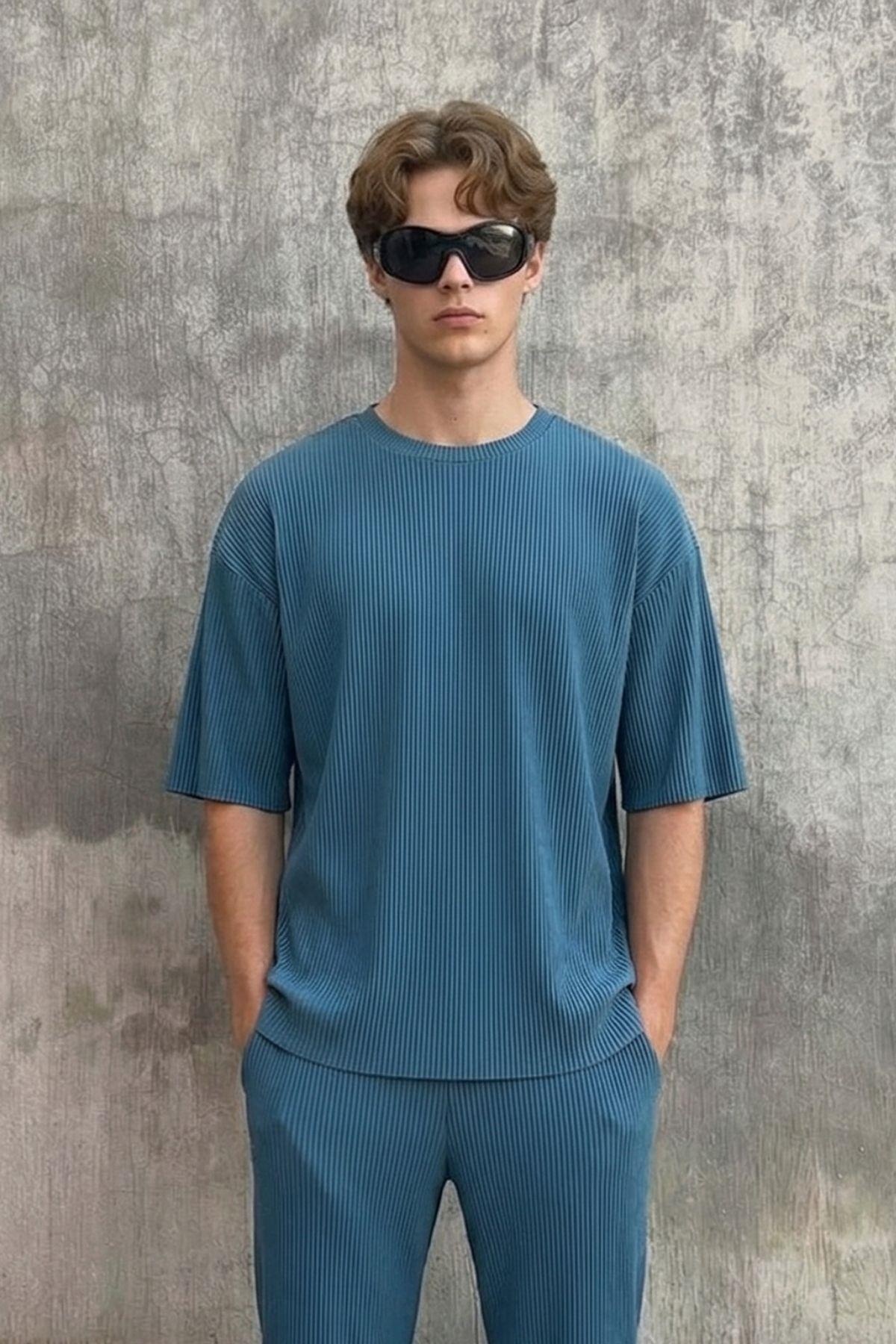 Fitilli Oversize Tişört İndigo (VS12-006)