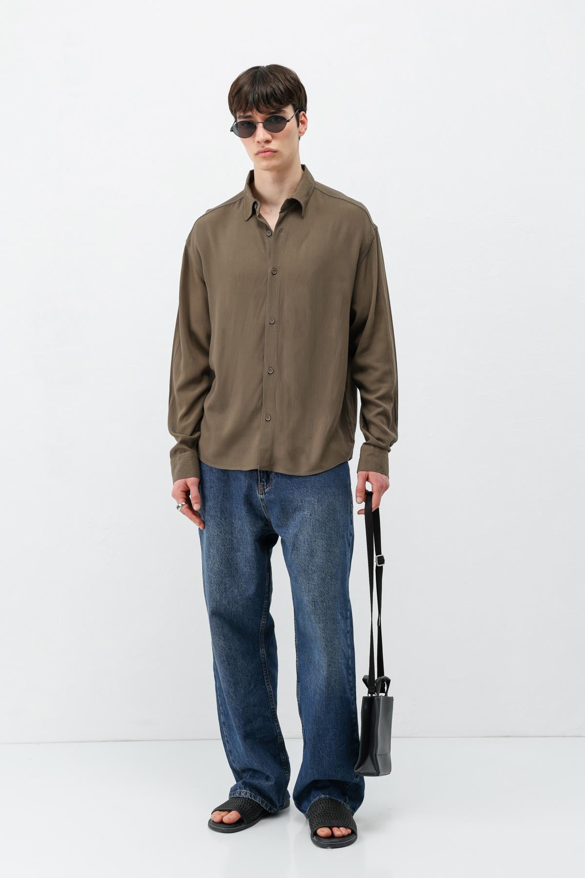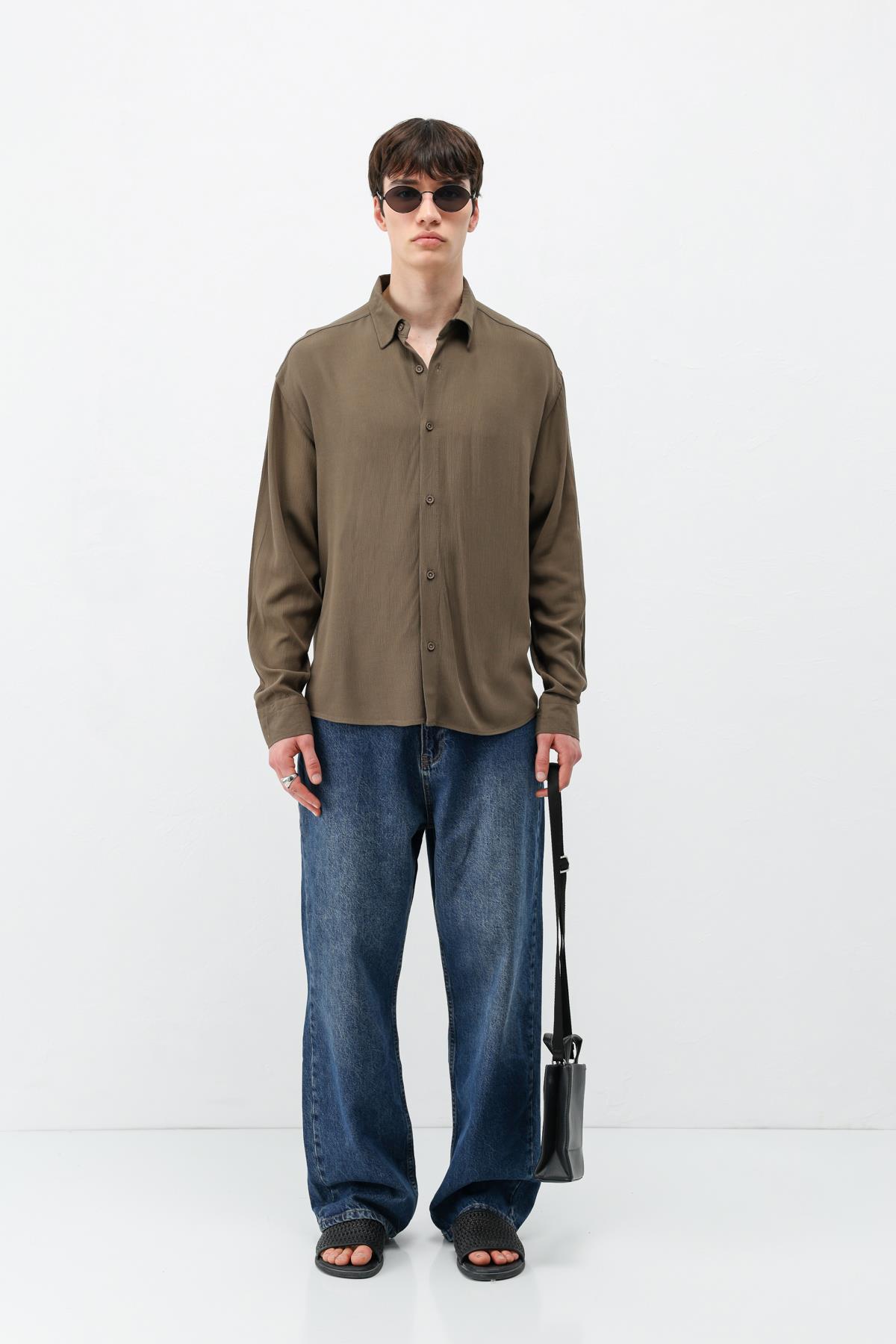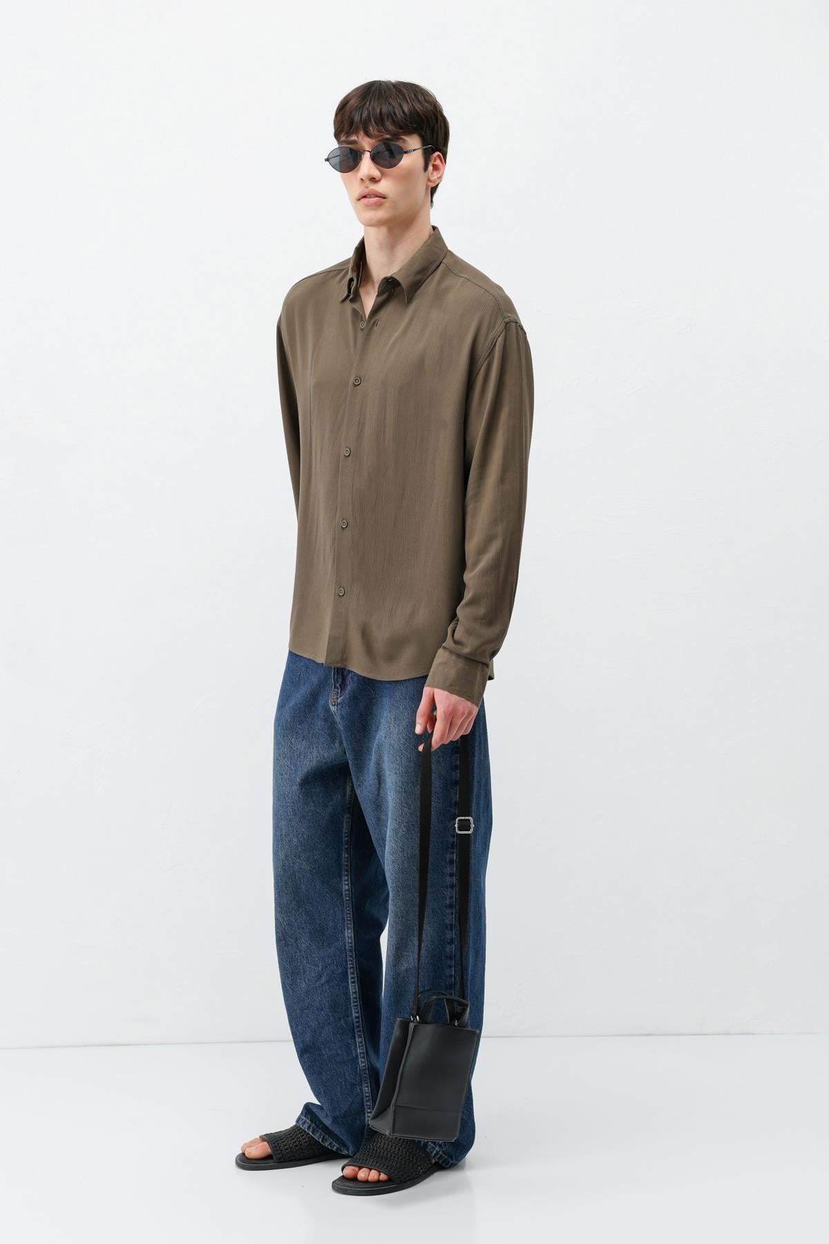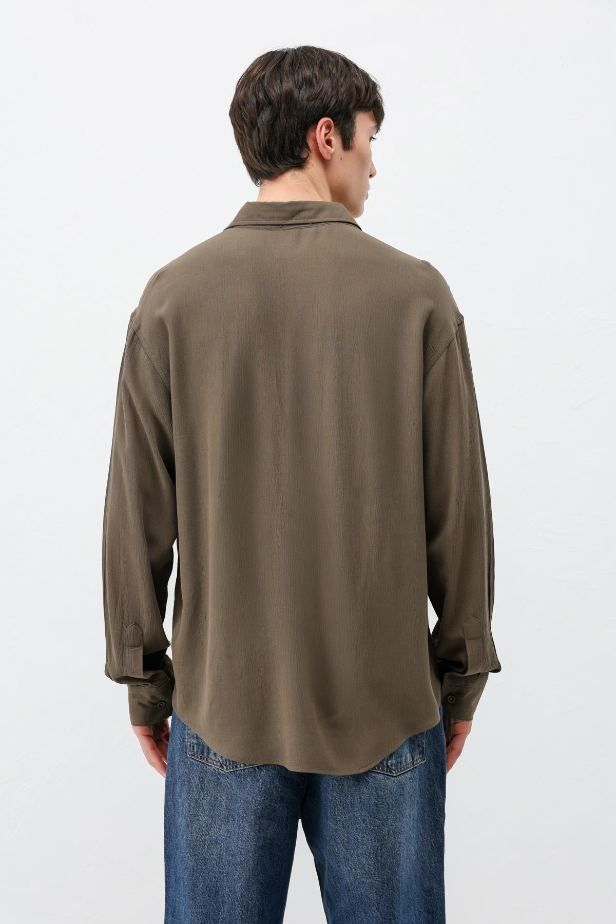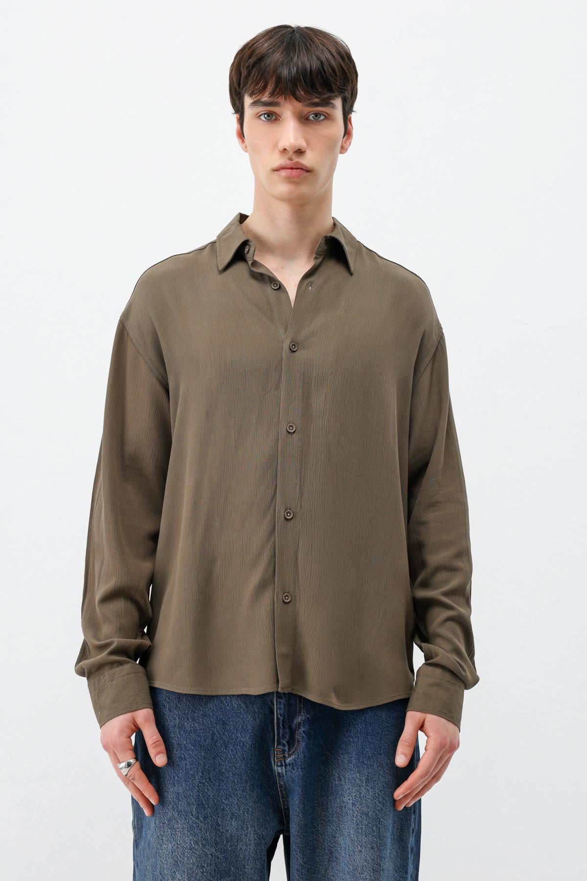 Hafif Dokulu Oversize Gömlek Açık Kahve (V40-91)