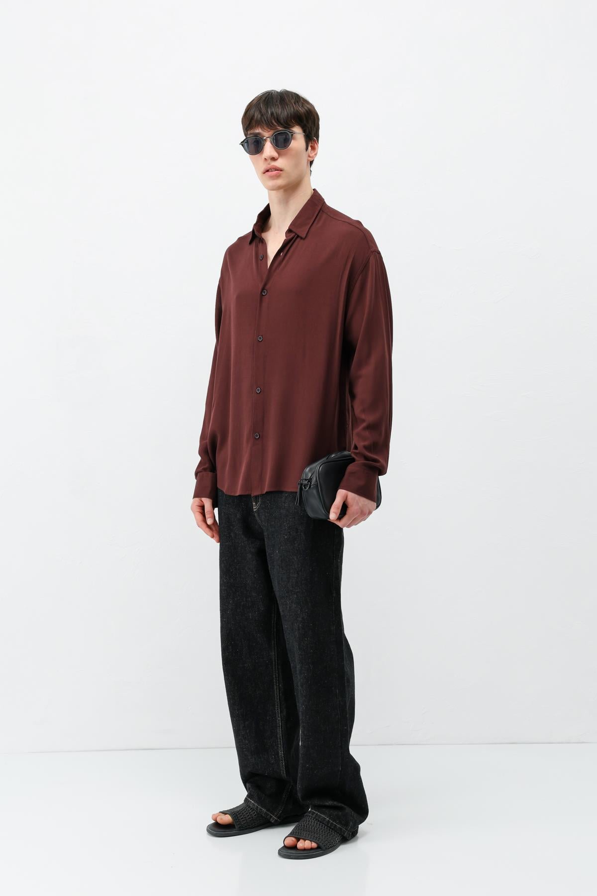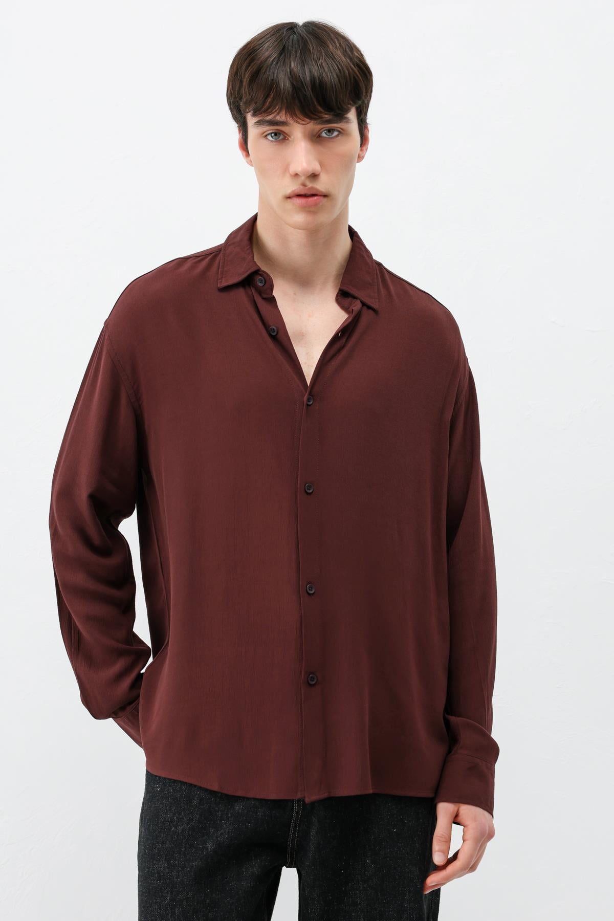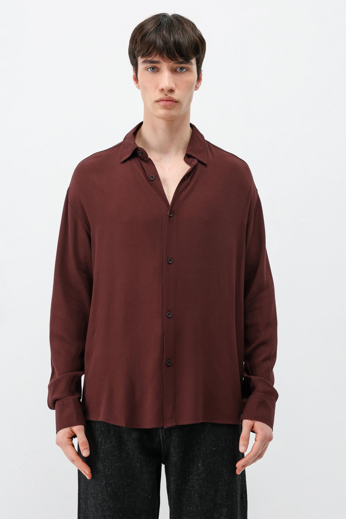 Hafif Dokulu Oversize Gömlek Bordo (V40-91)