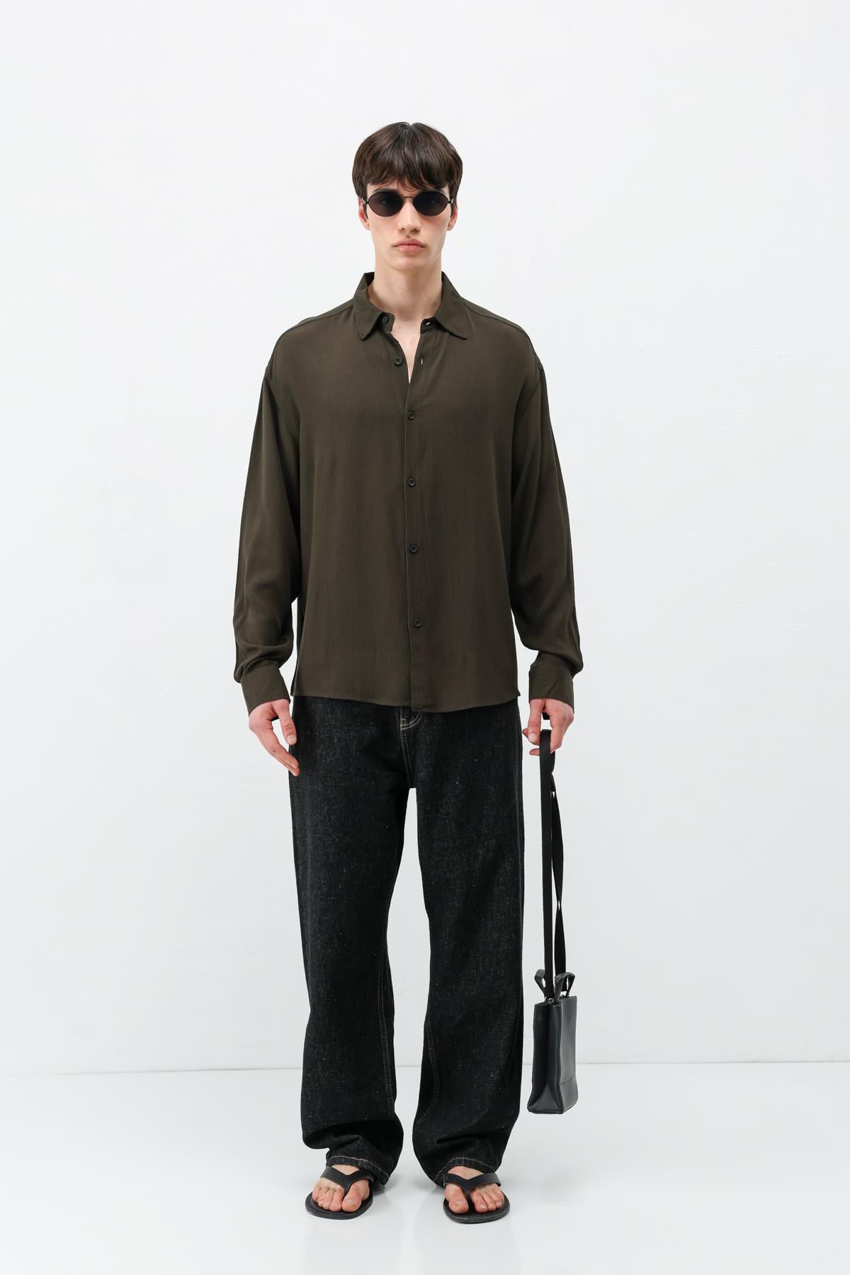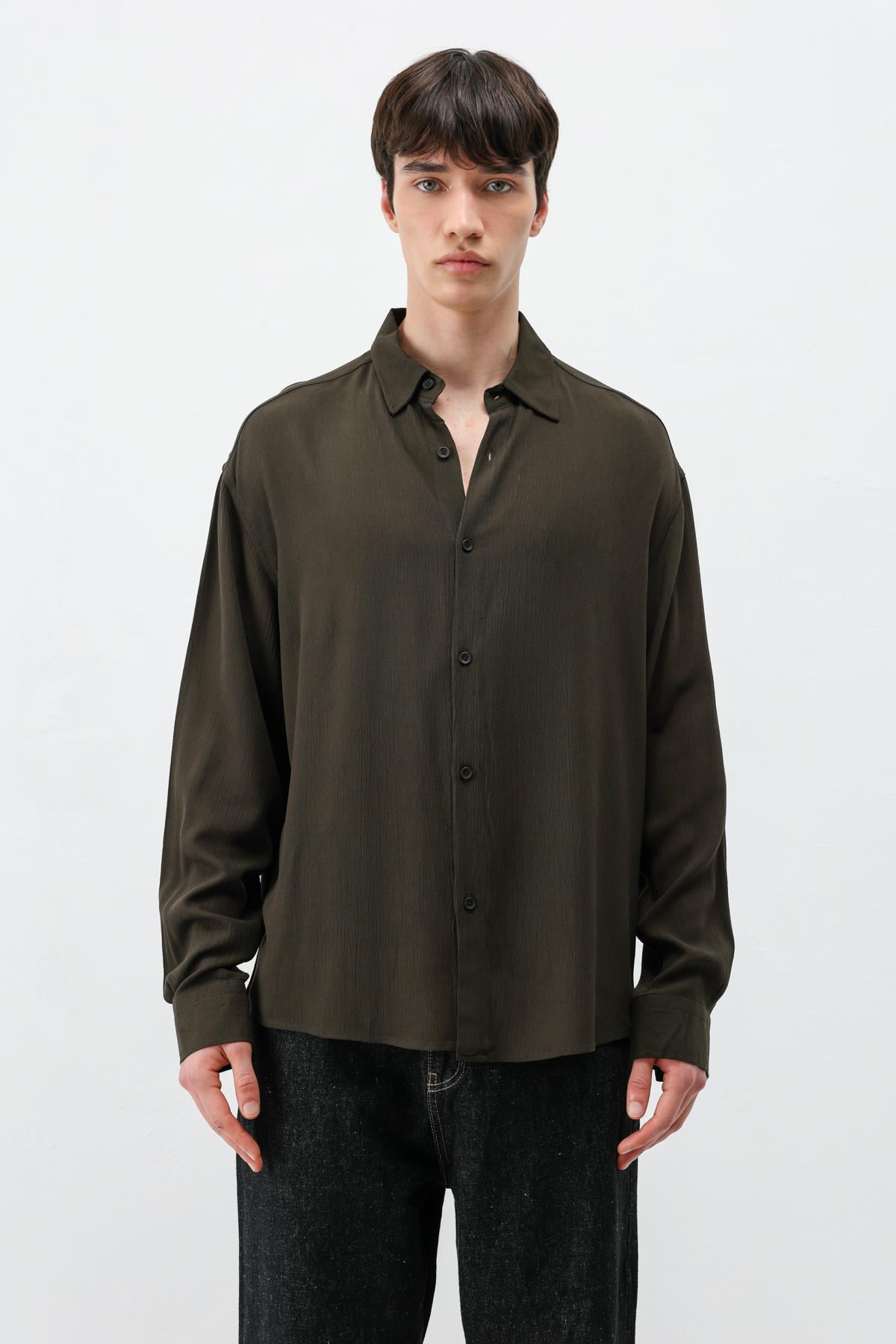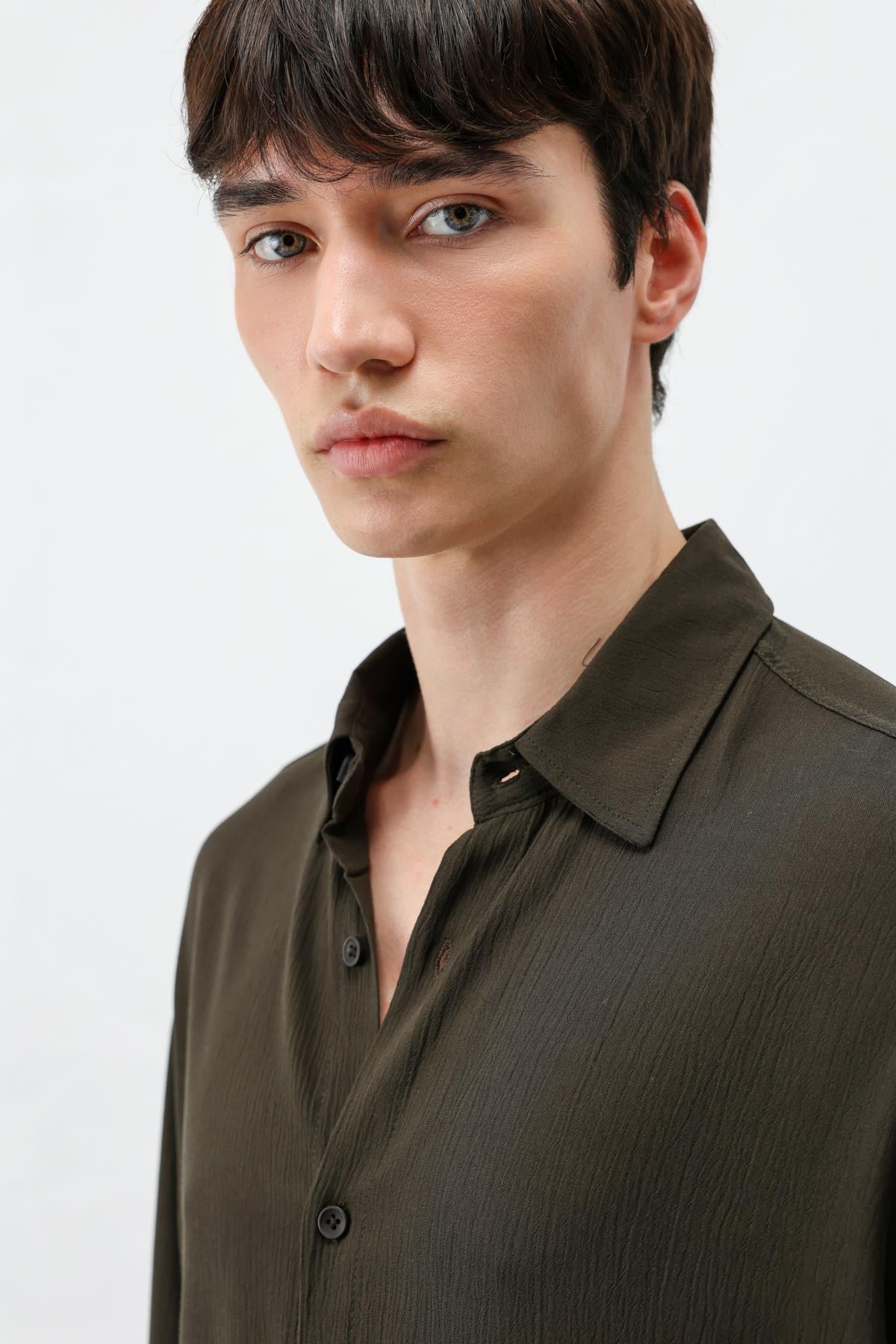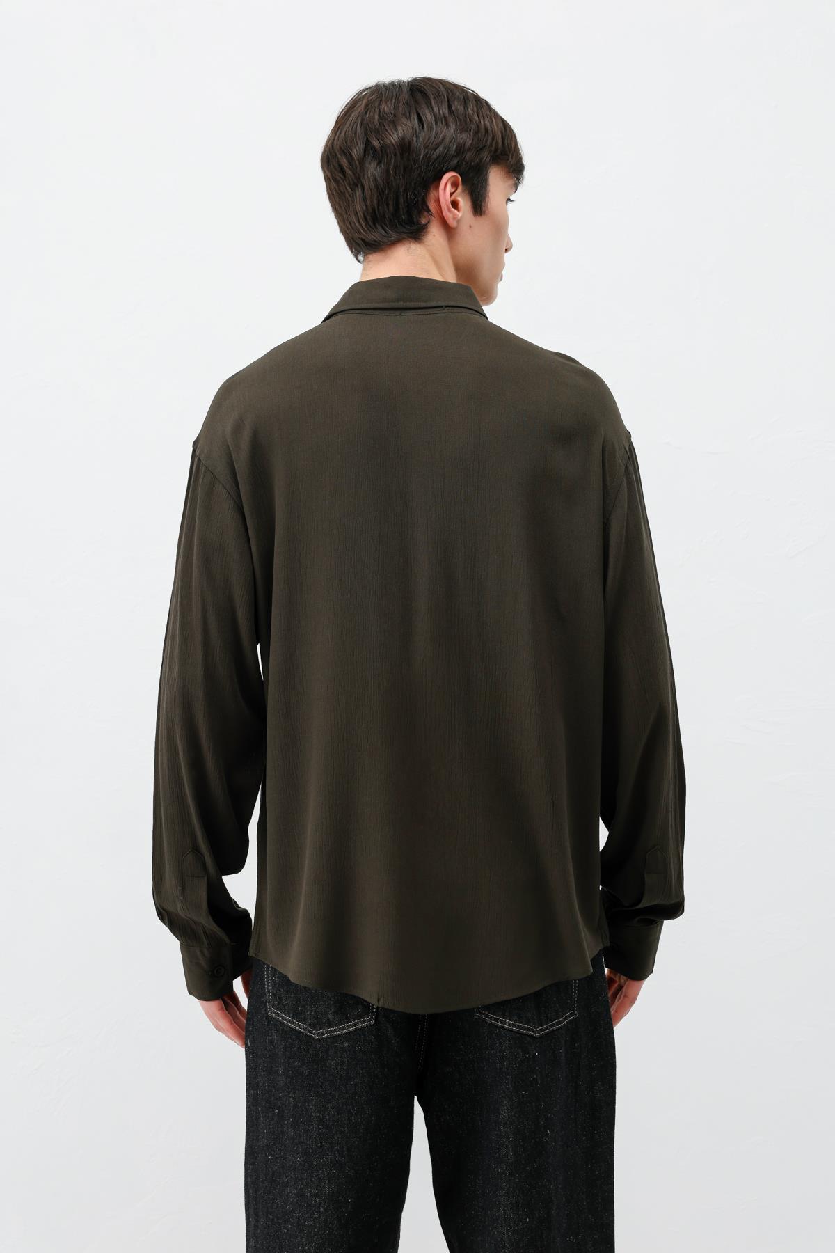 Hafif Dokulu Oversize Gömlek Kahve (V40-91)