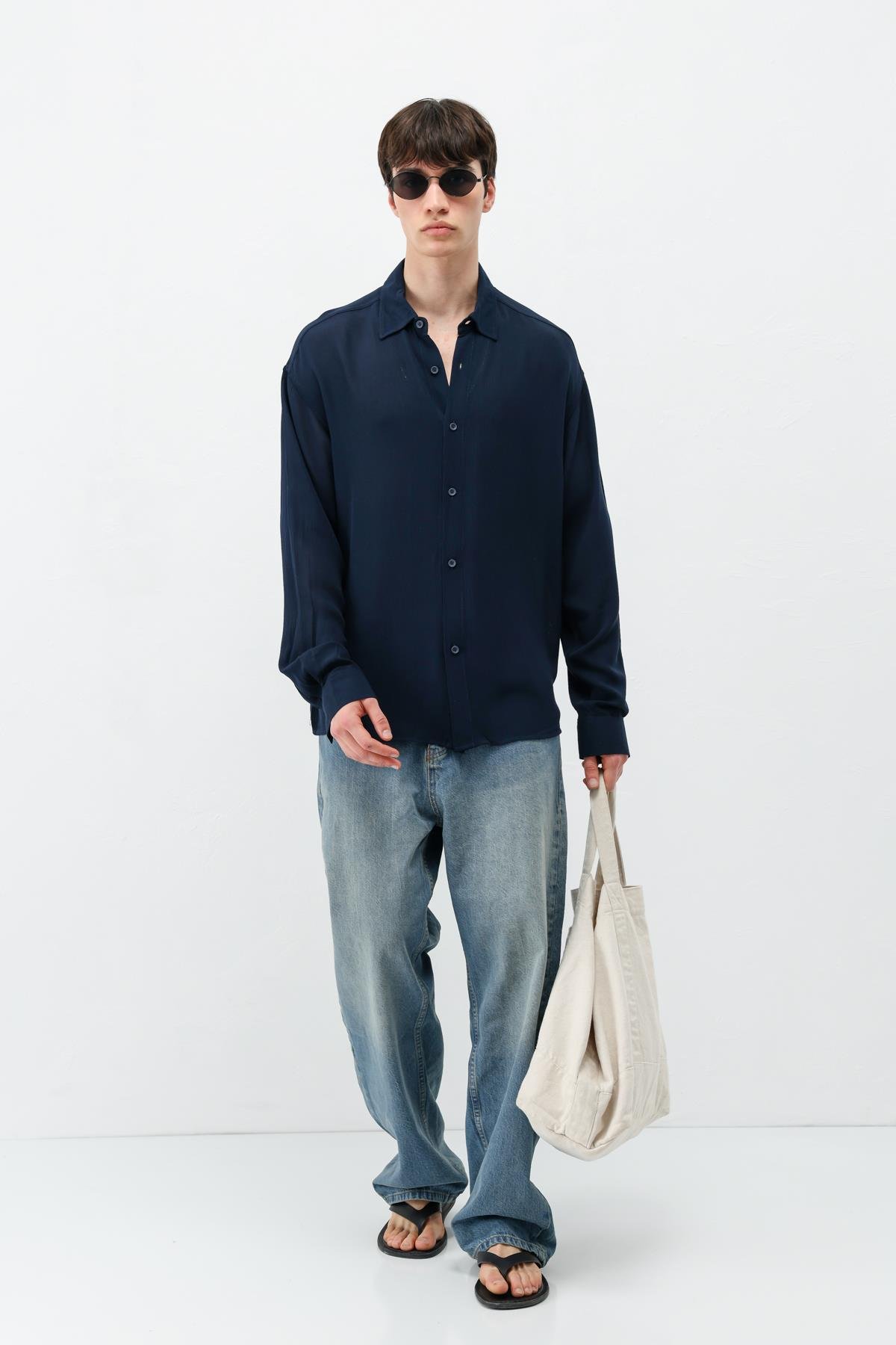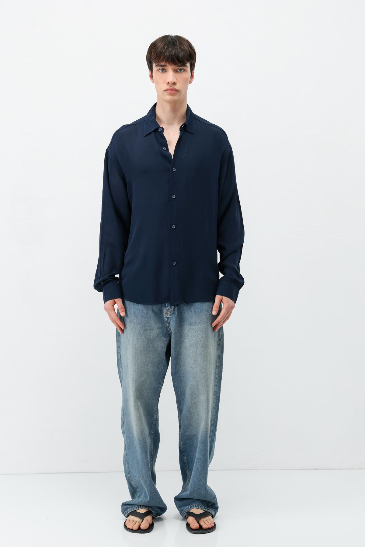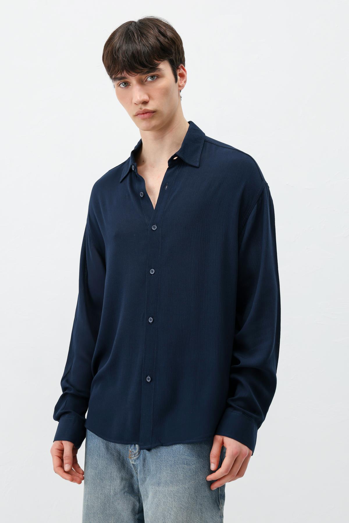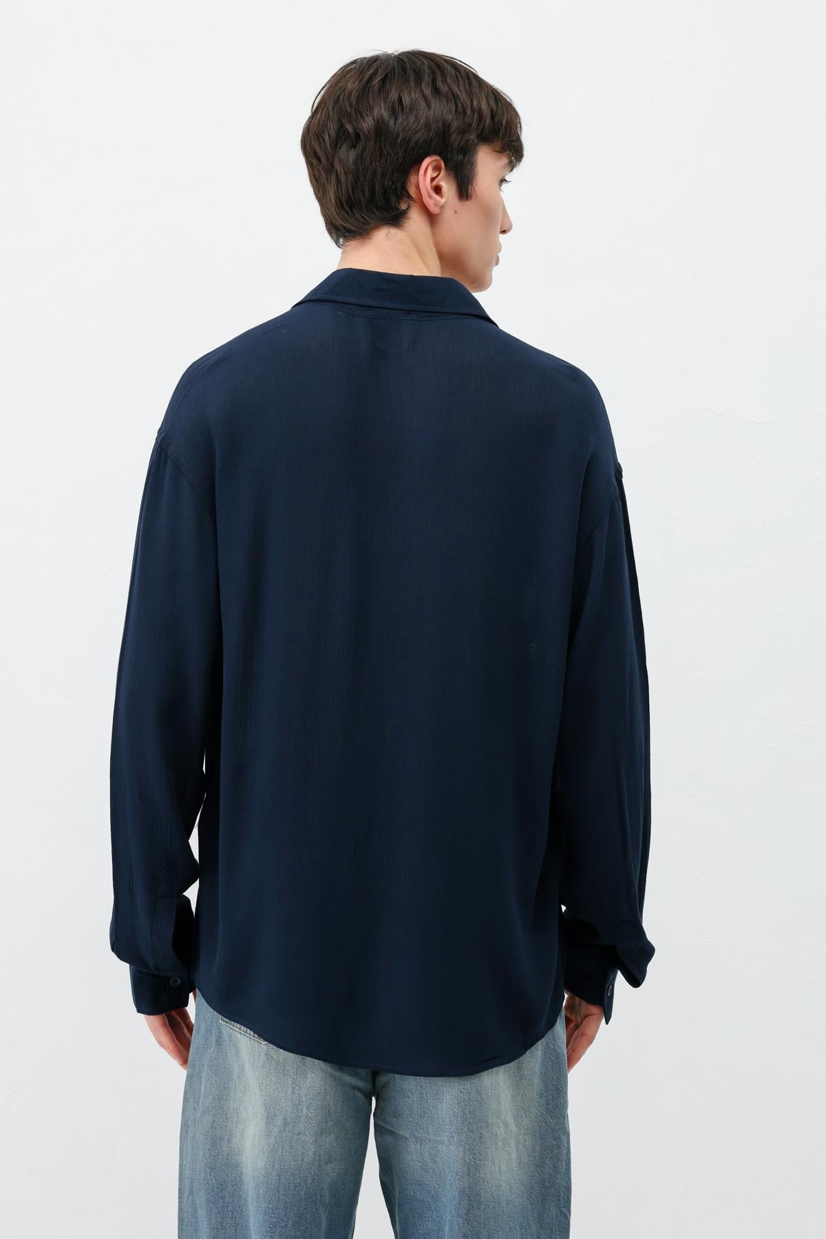 Hafif Dokulu Oversize Gömlek Lacivert (V40-91)