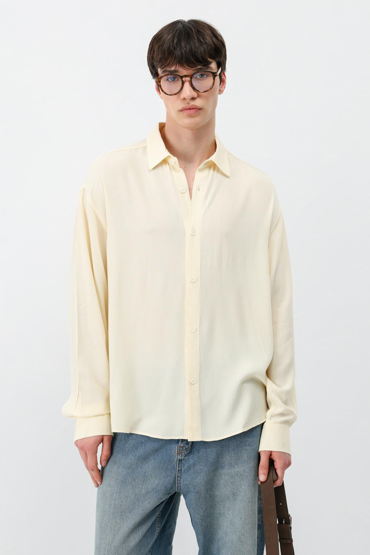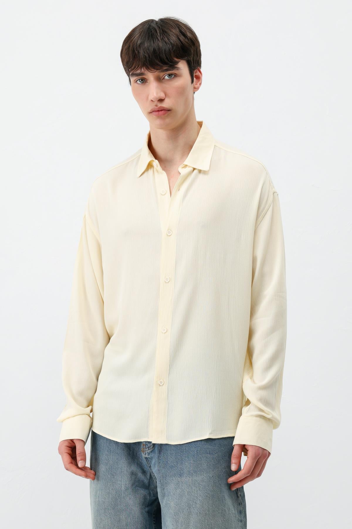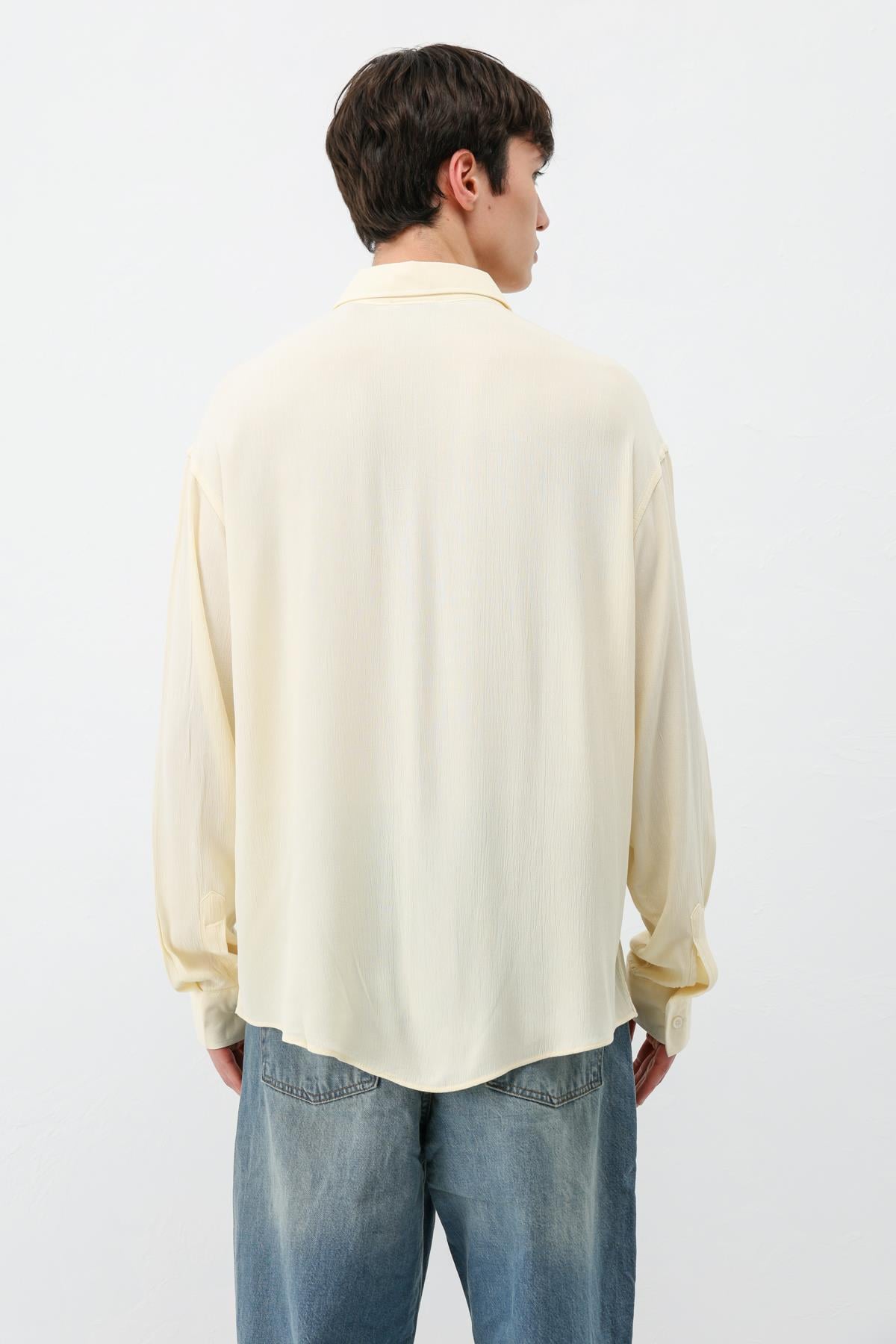 Hafif Dokulu Oversize Gömlek Sarı (V40-91)